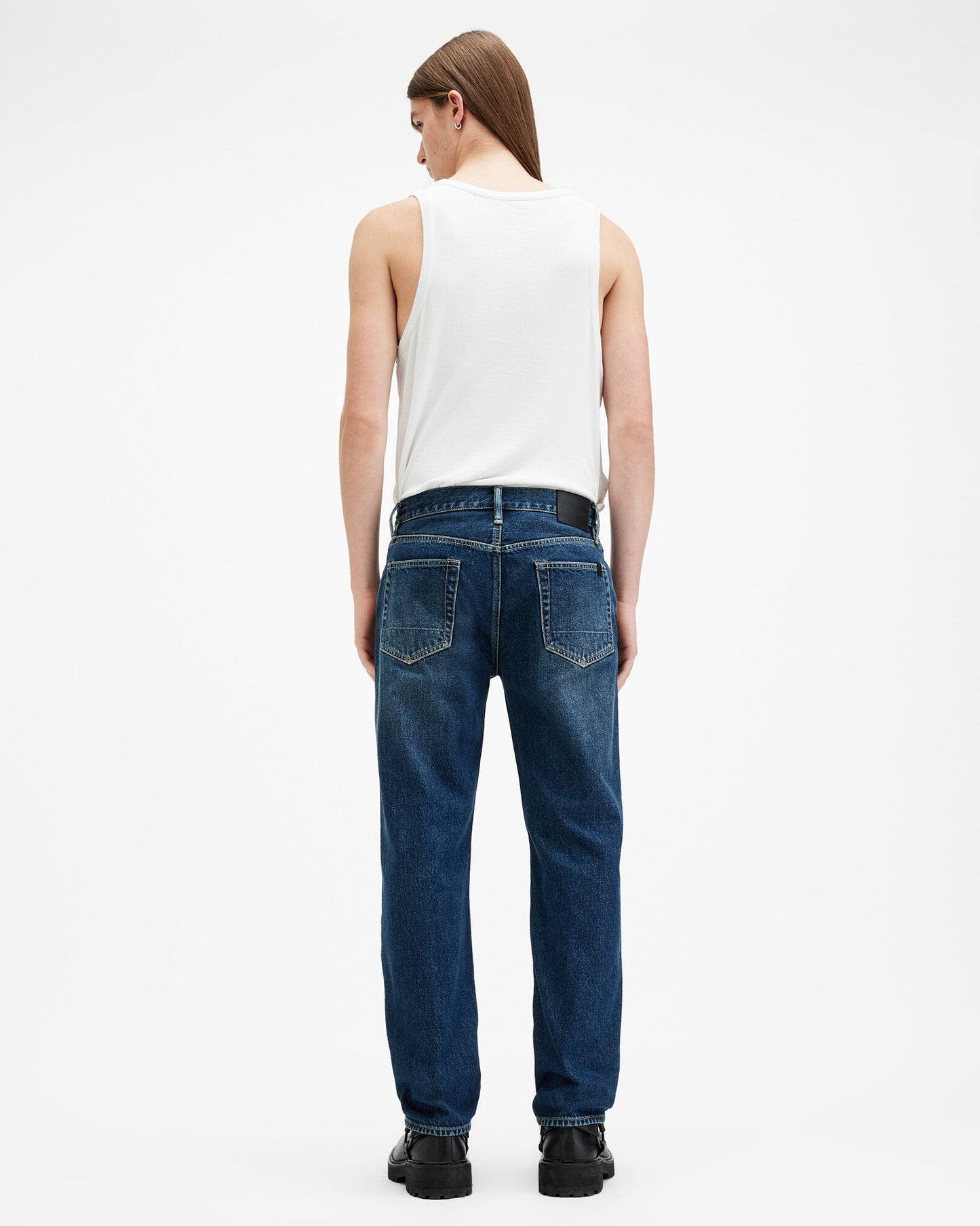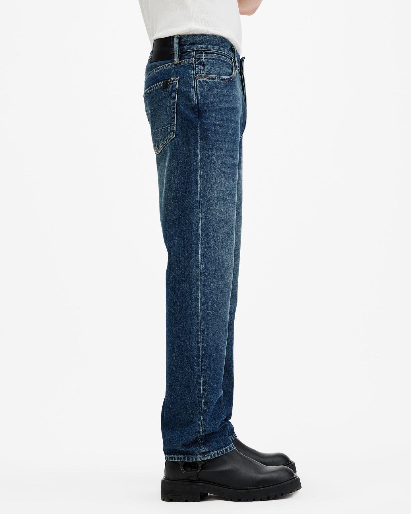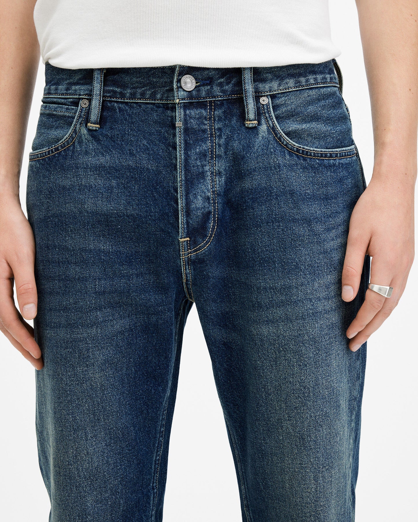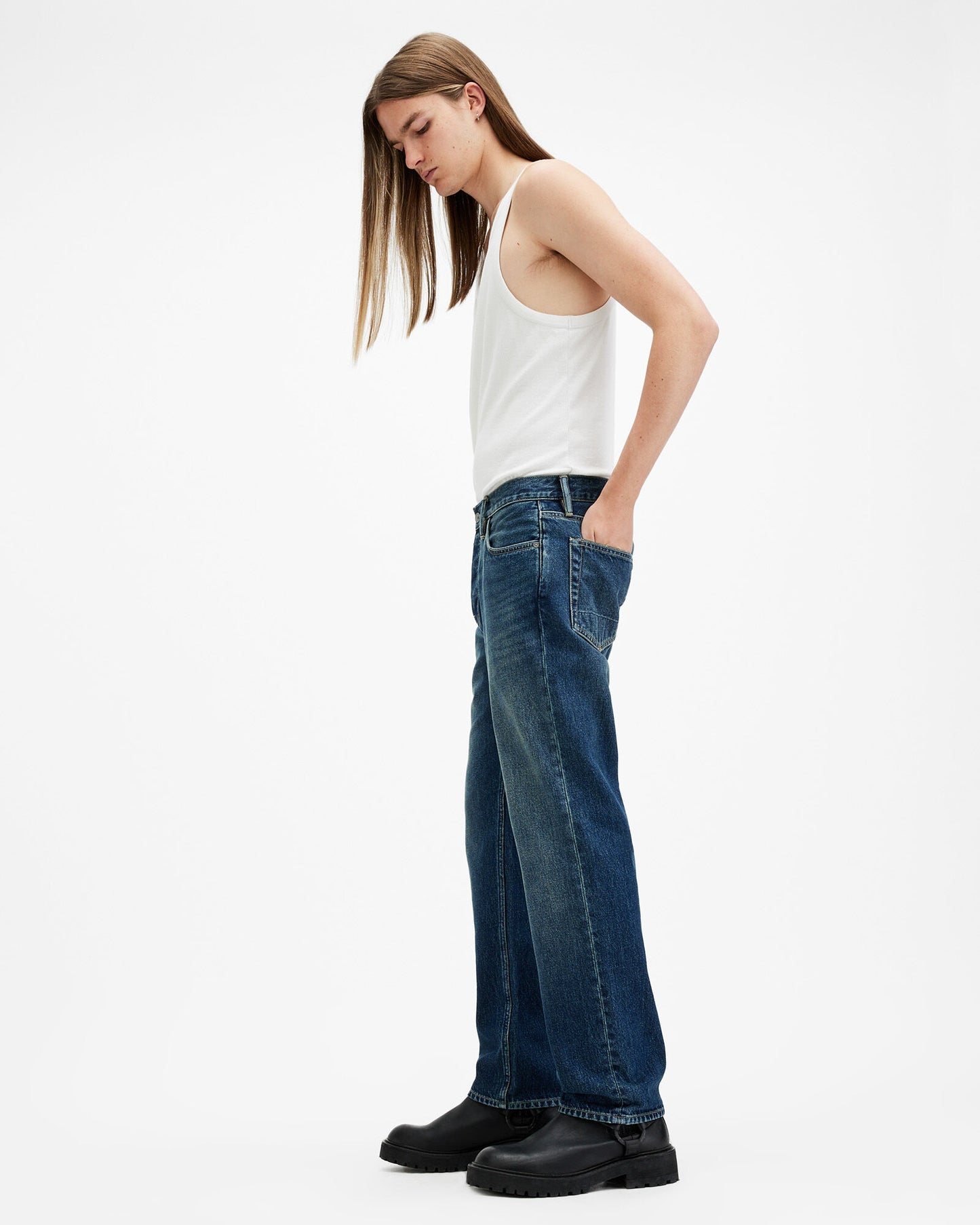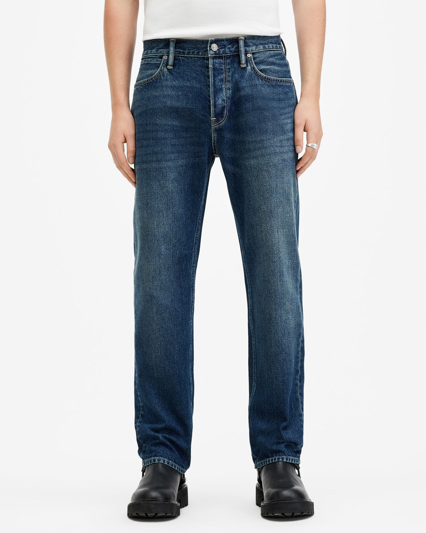 ג'ינס ארוך לגברים מבית המותג אולסיינטס. גזרה ישרה שיושבת מידי על המותן עם סגירת כפתורים, שני כיסים קדמיים ואחוריים.
