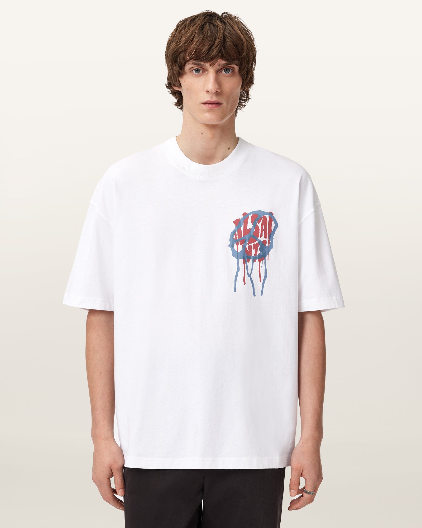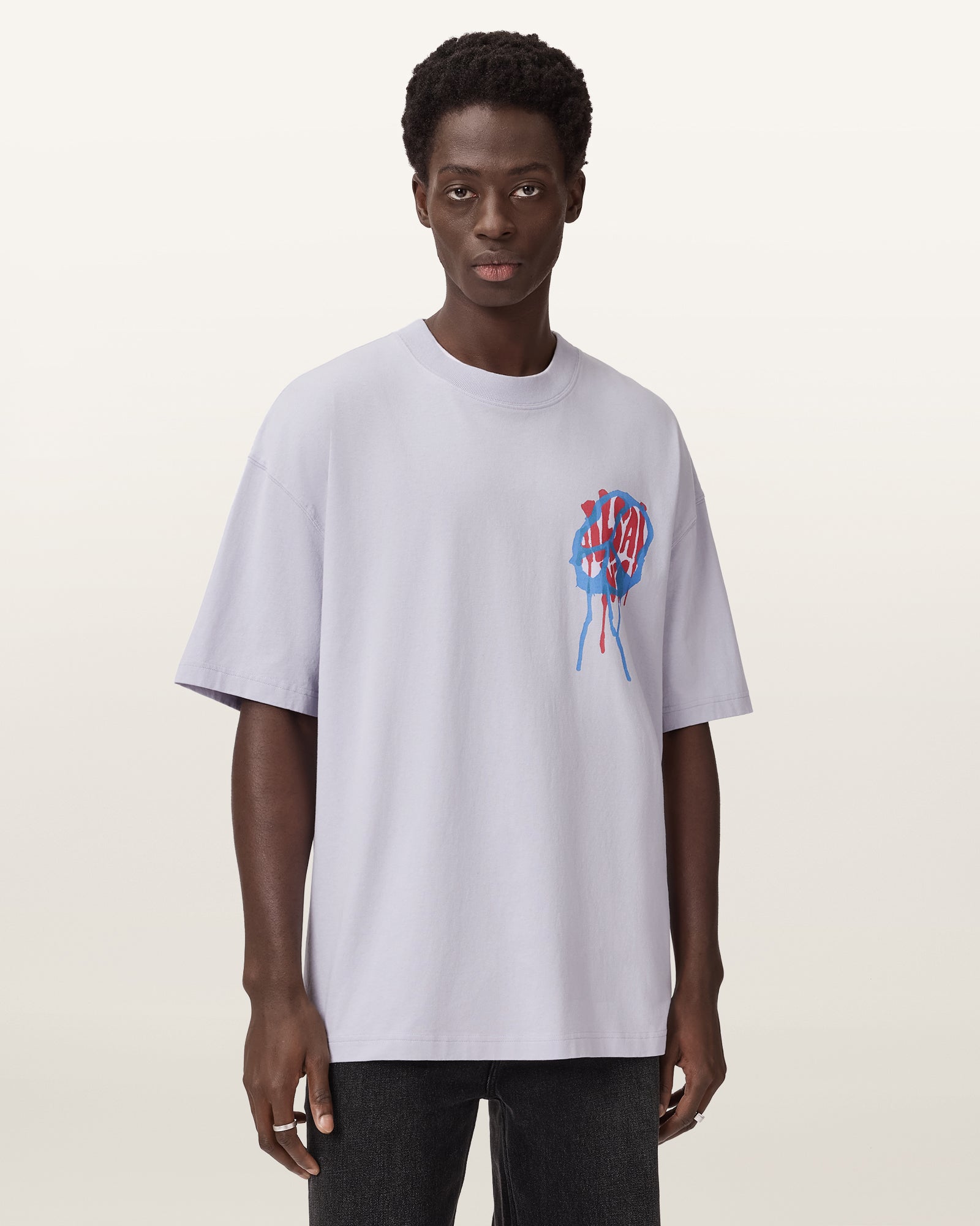 טי-שירט קצרה לגברים מבית מבית המותג אולסיינטס. בעיצוב רחב ונינוח עם הדפס צבעוני בסגנון אמנות רחוב על החזה ובגב, עם מפתח צוואר עגול, שרוולים קצרים ותפר כפול בשוליים למראה מושלם ליום יום.
