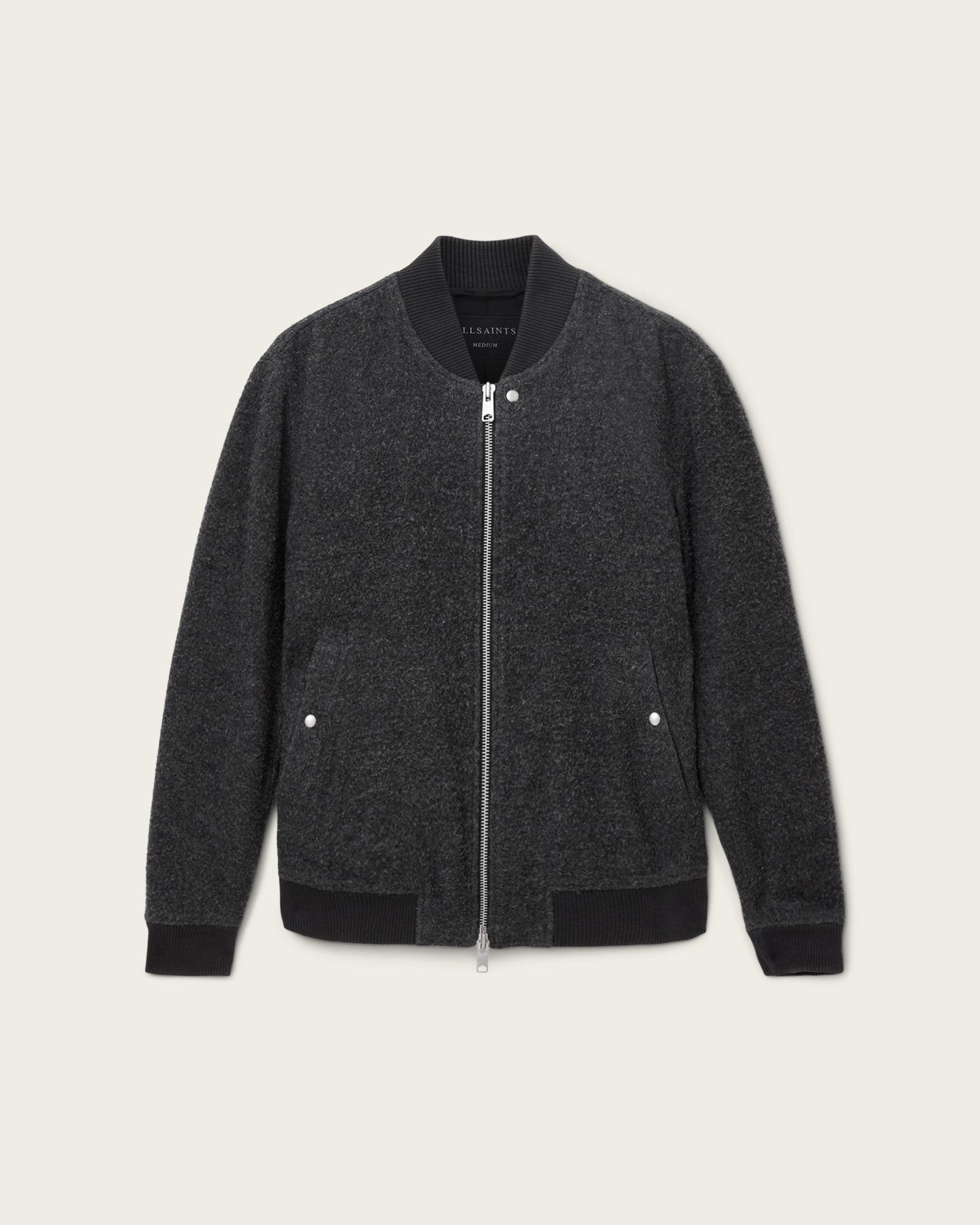 ג׳קט לגברים מבית המותג אולסיינטס. בעיצוב בומבר קלאסי עם טוויסט מודרני ומרקם רך ונעים.
