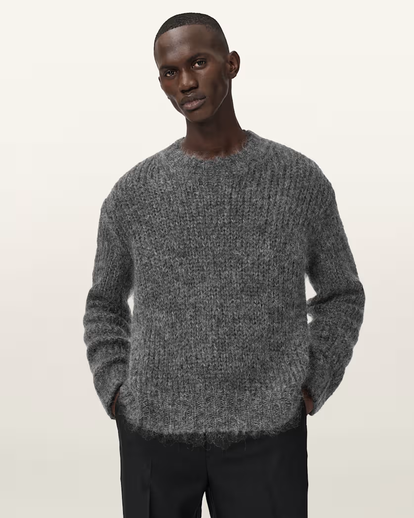 סוודר לגברים מבית המותג אולסיינטס. בגזרת אוברסייז, עם מפתח עגול ושרוולים ארוכים.