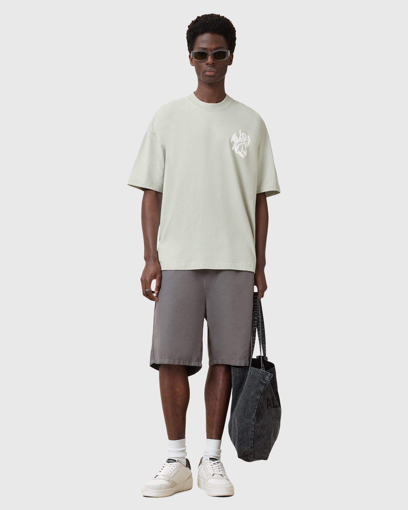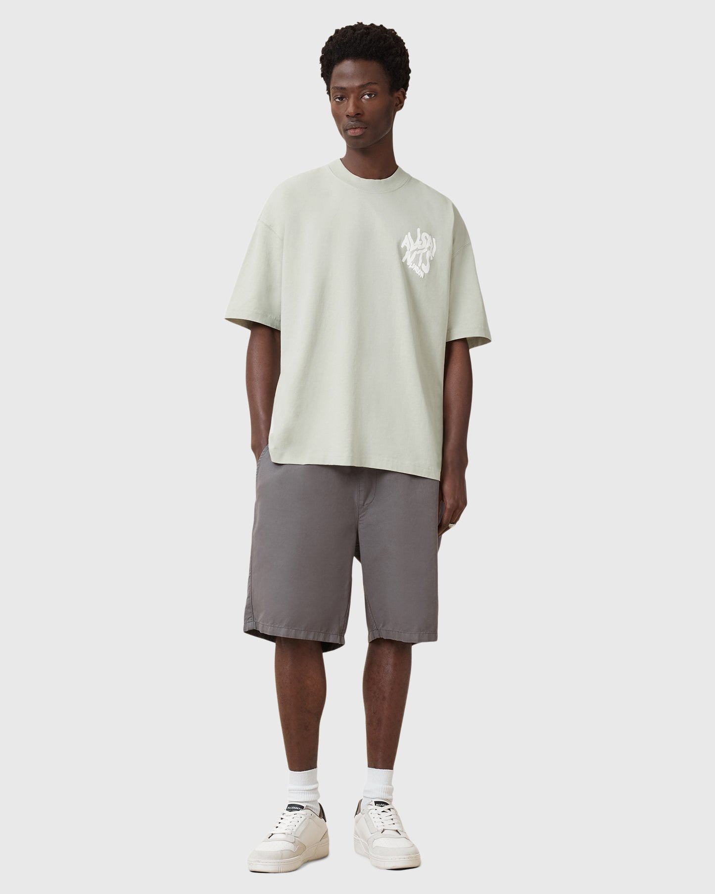 טי שירט קצרה לגברים מבית המותג אולסיינטס. בגזרת אוברסייז עם מפתח עגול ושרוולים קצרים, בשילוב לוגו של המותג בצד החזה ובגב.