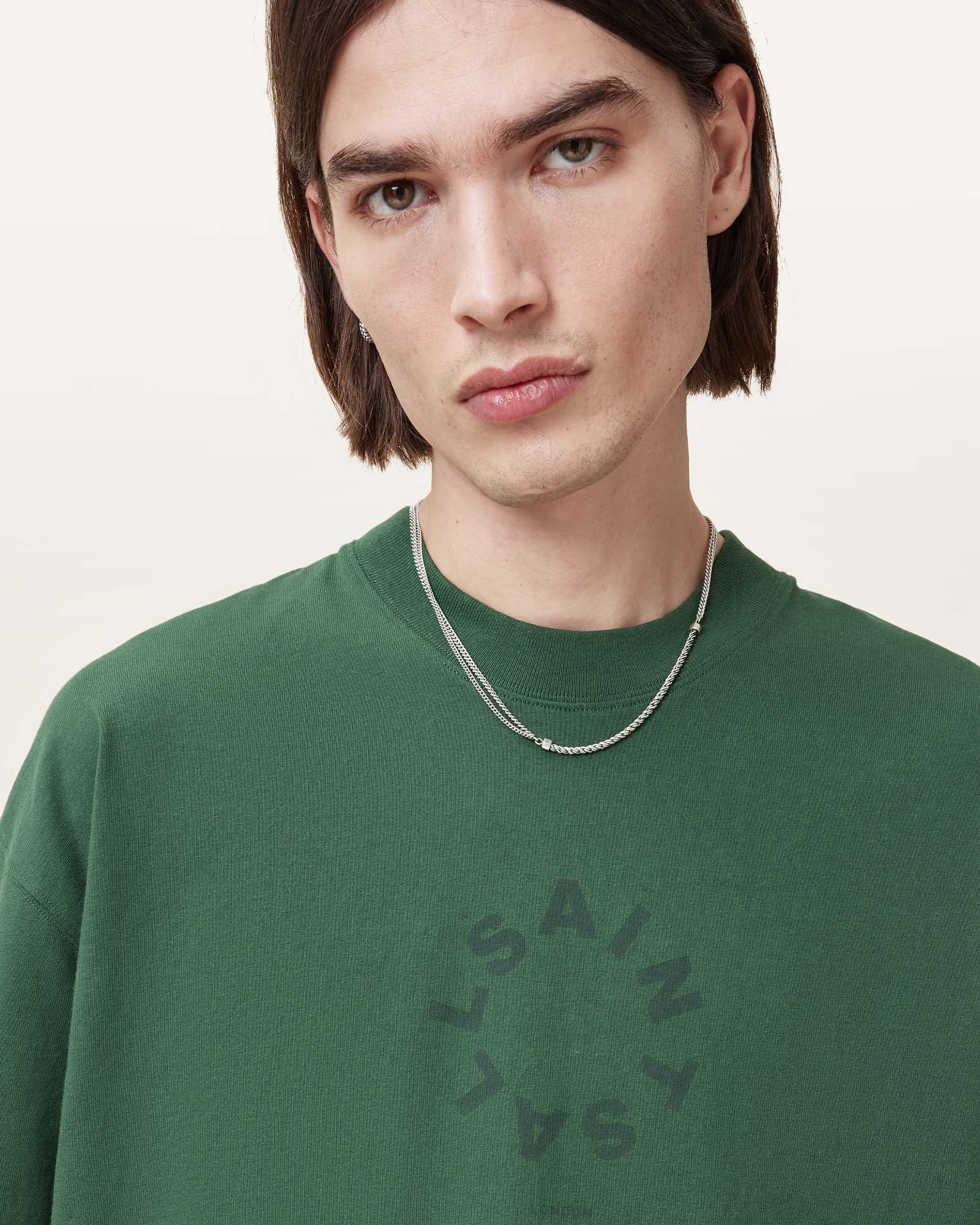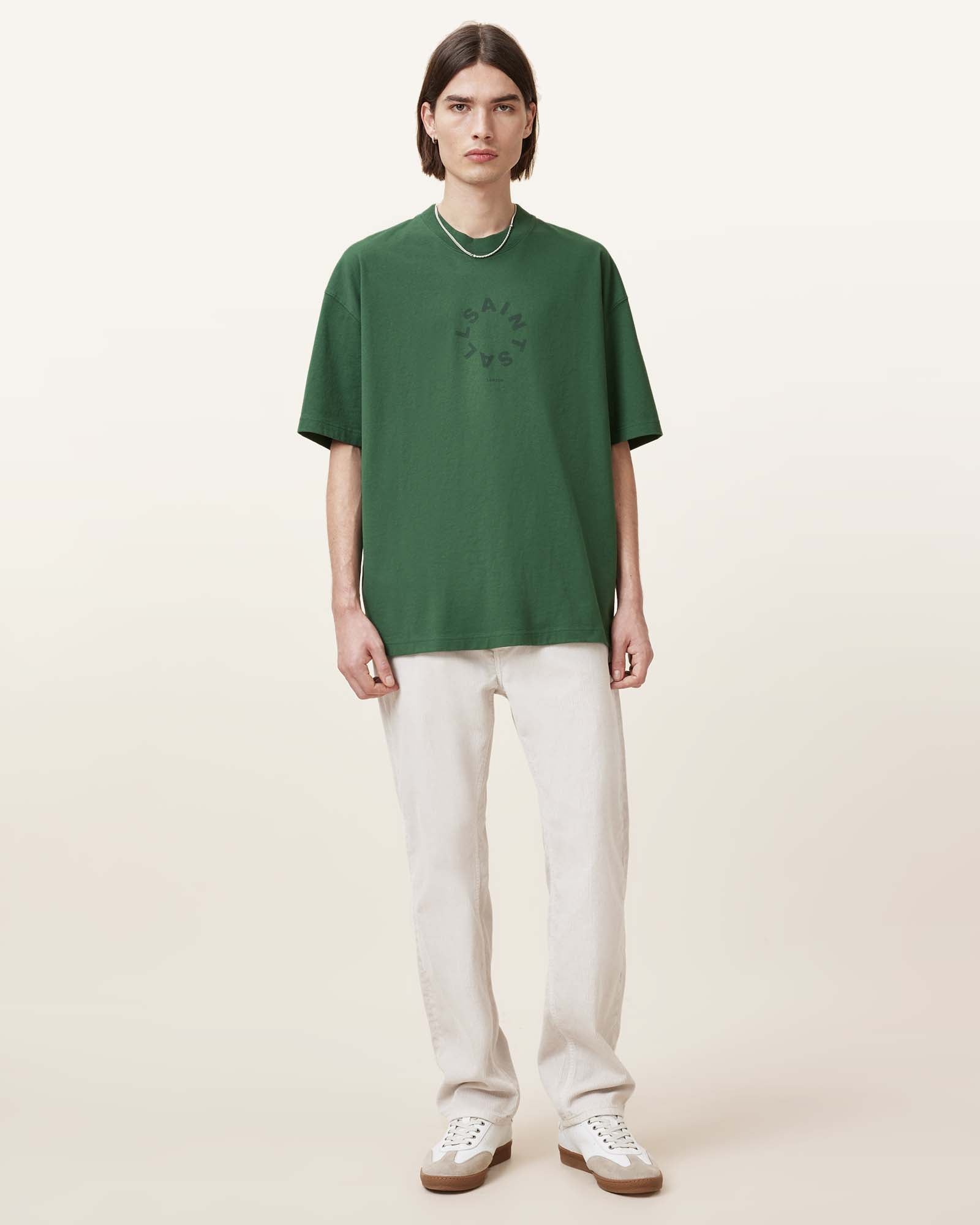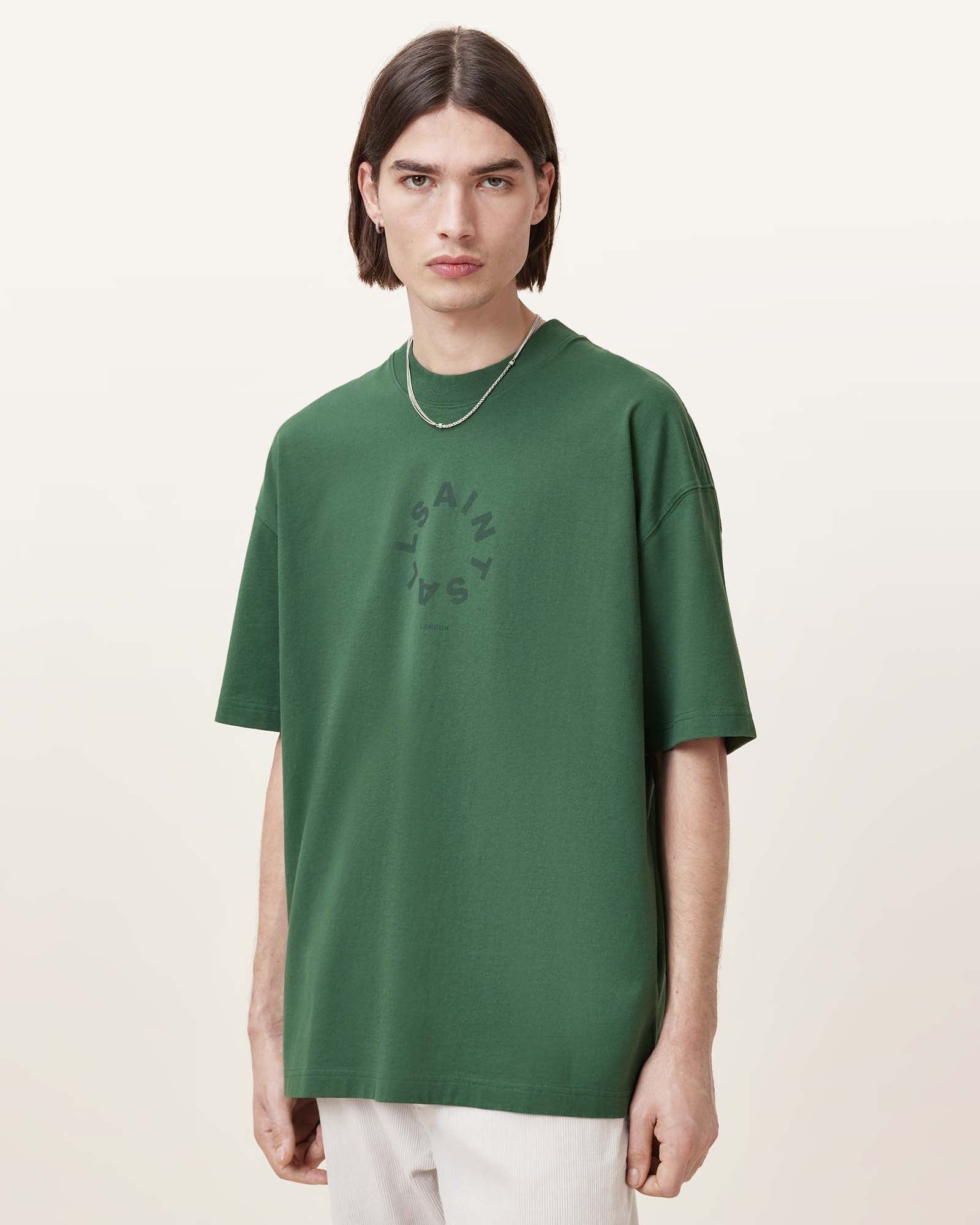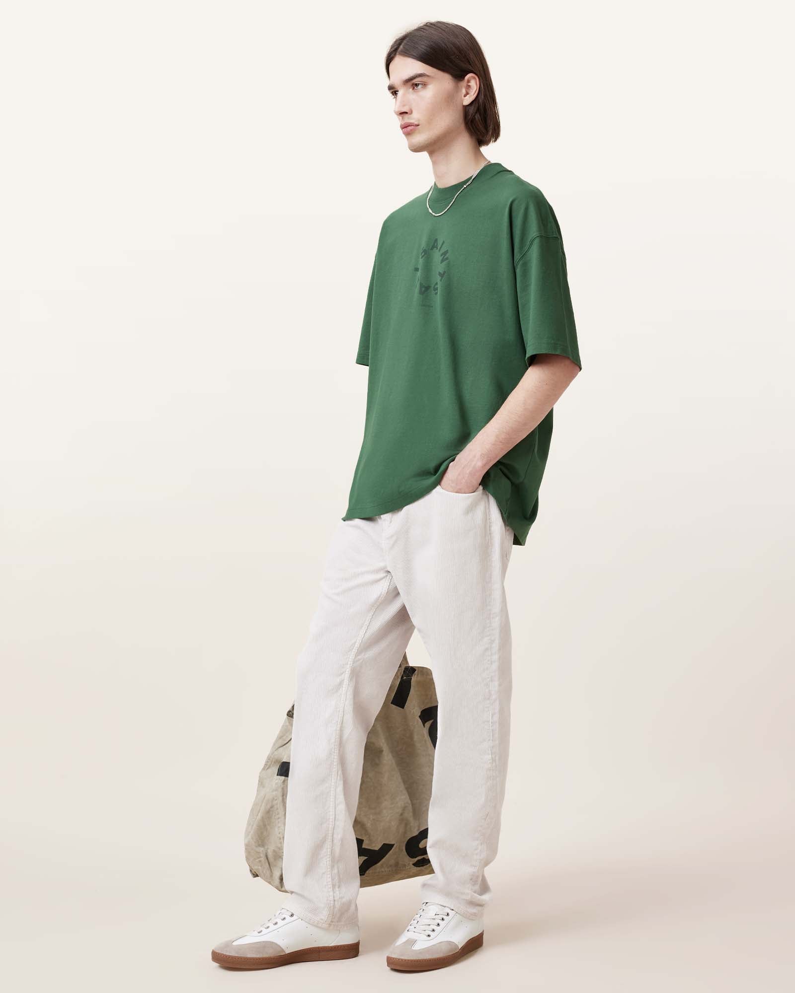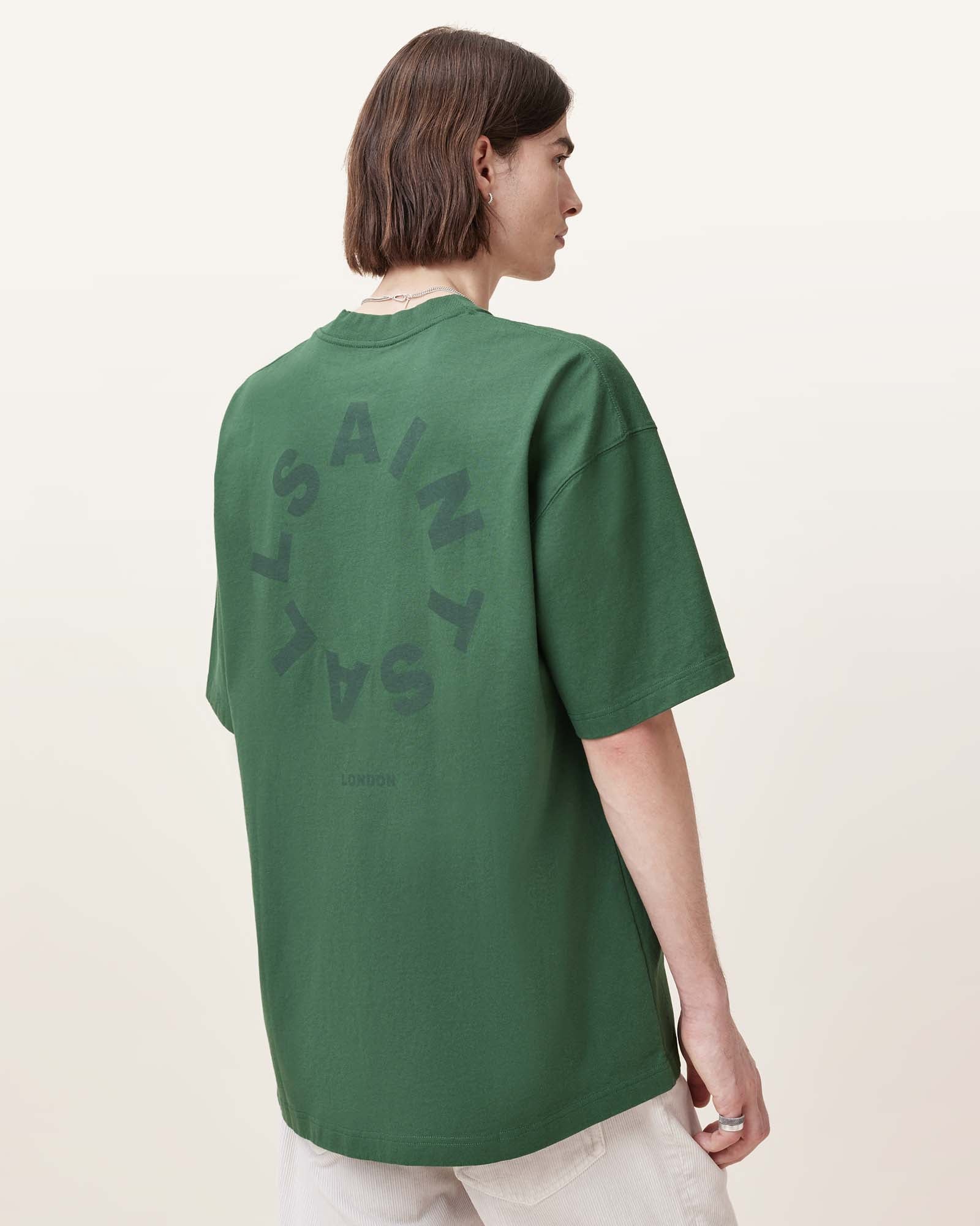 טי שירט קצרה לגברים מבית המותג אולסיינטס. גזרת אוברסייז, עם מפתח עגול, שרוולים קצרים והדפס גדול בחזית ובגב.