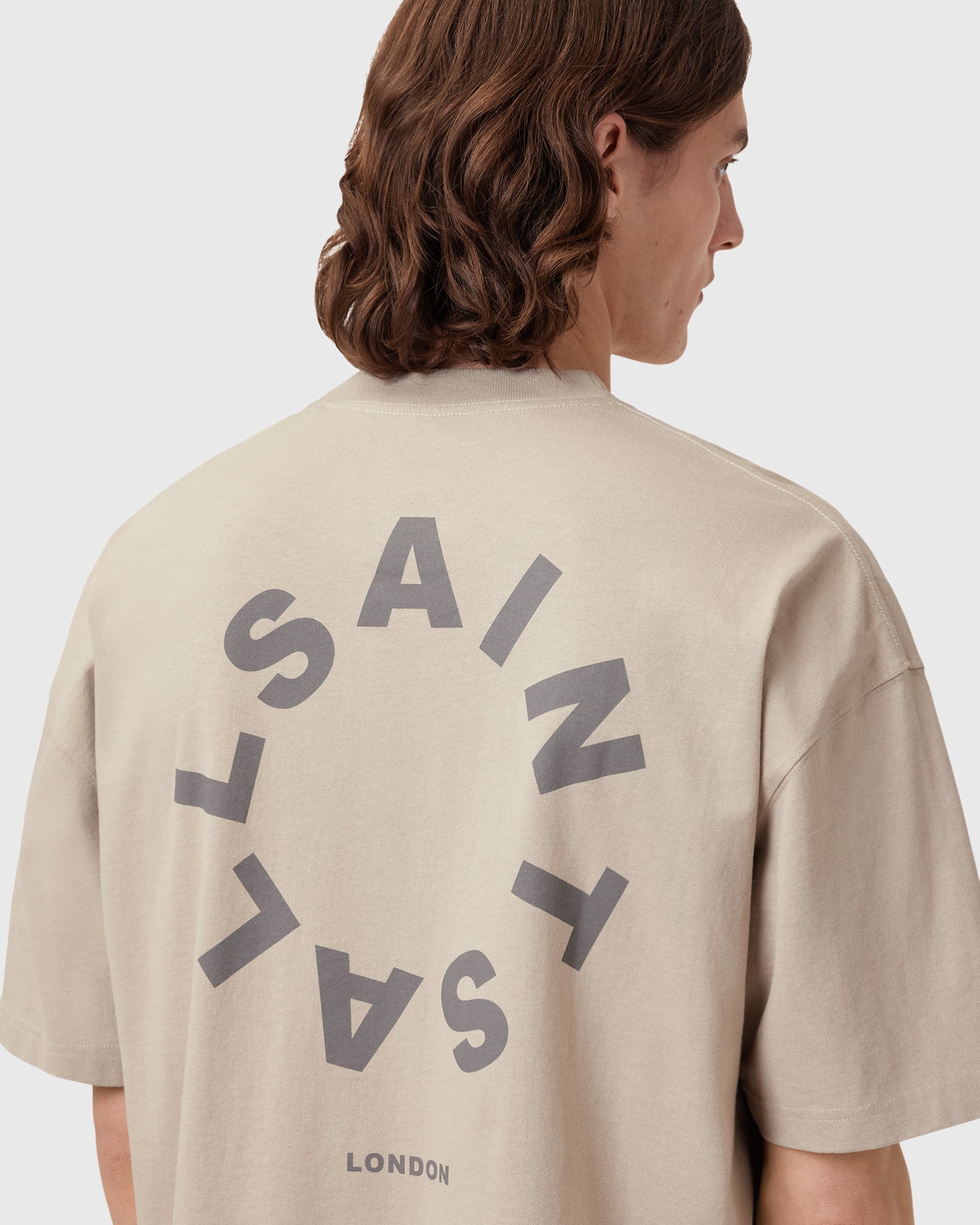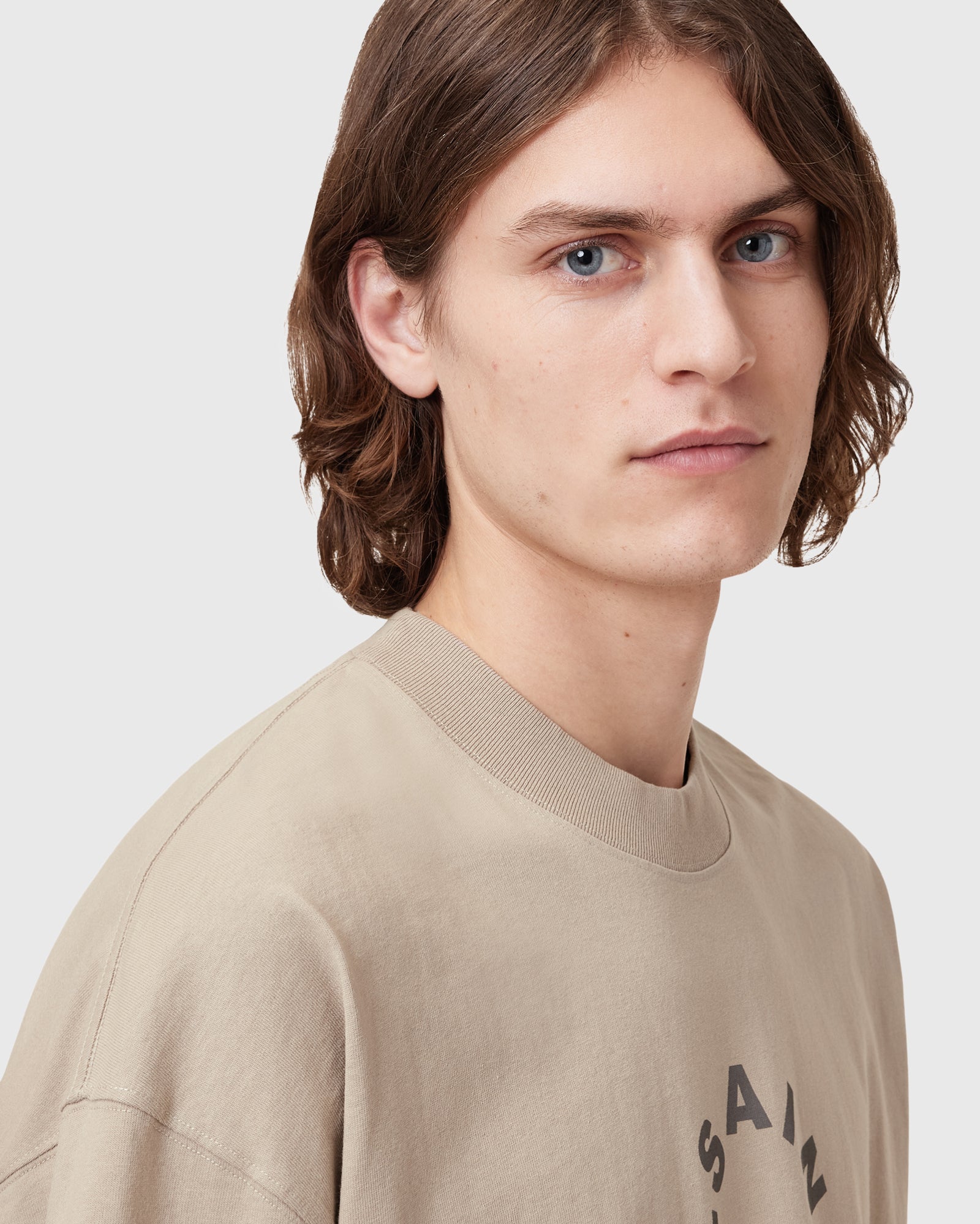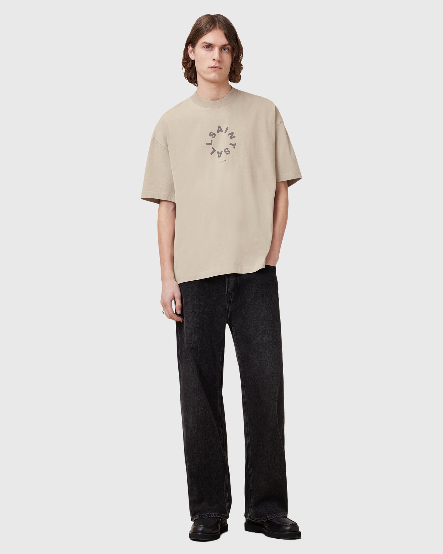 טי שירט קצרה לגברים מבית המותג אולסיינטס. גזרת אוברסייז, עם מפתח עגול, שרוולים קצרים והדפס גדול בחזית ובגב.