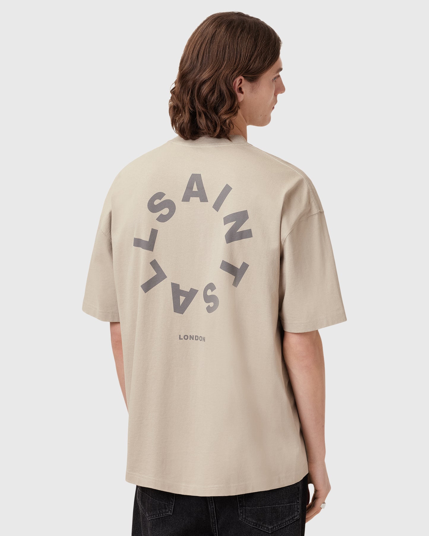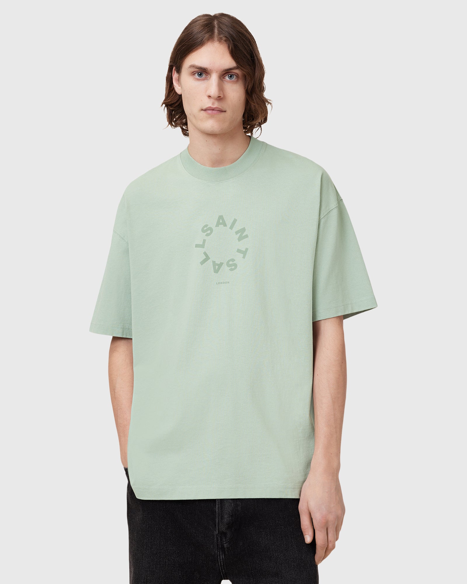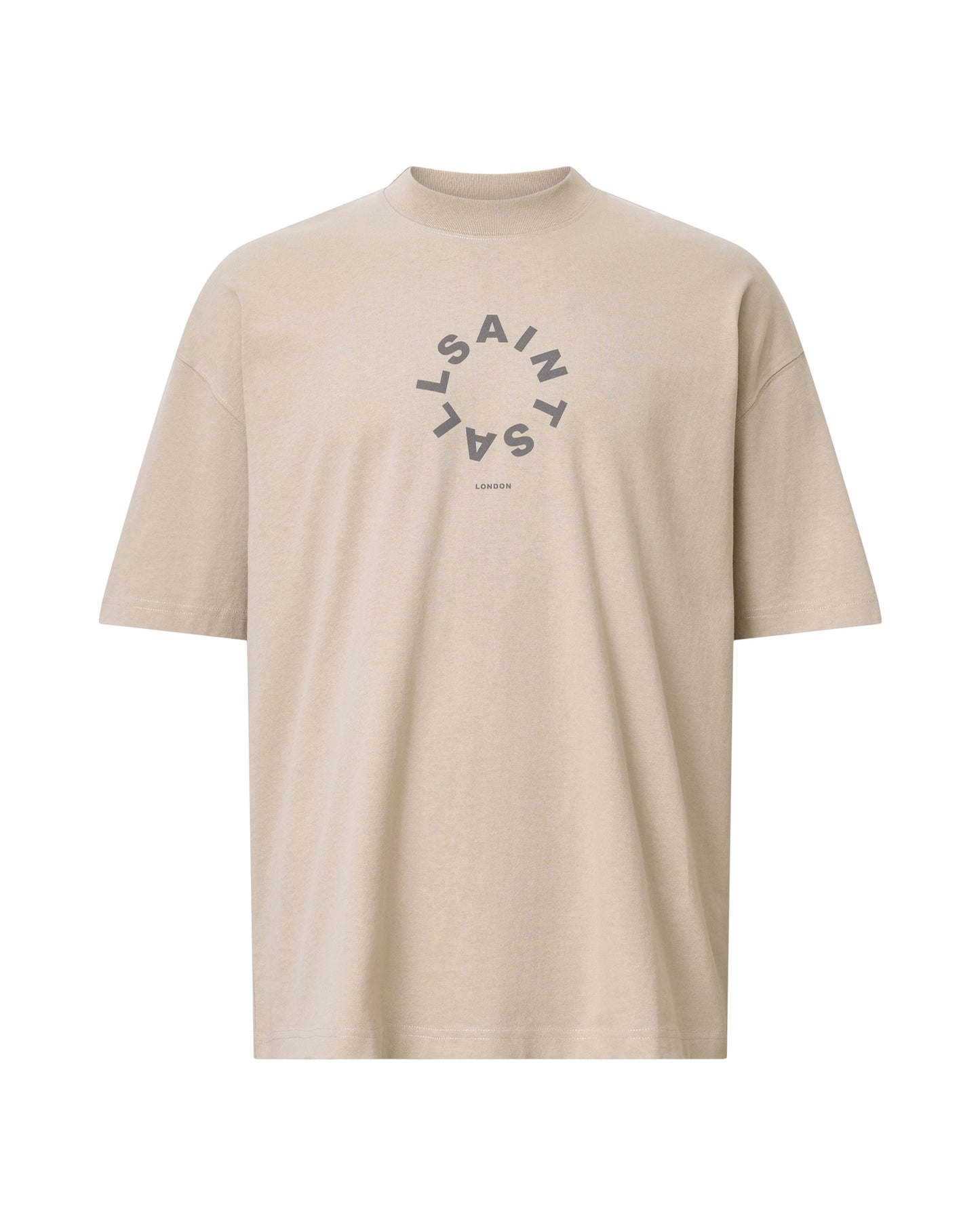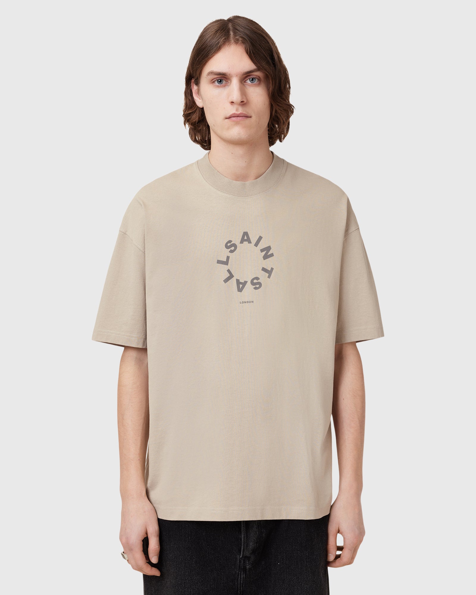 טי שירט קצרה לגברים מבית המותג אולסיינטס. גזרת אוברסייז, עם מפתח עגול, שרוולים קצרים והדפס גדול בחזית ובגב.