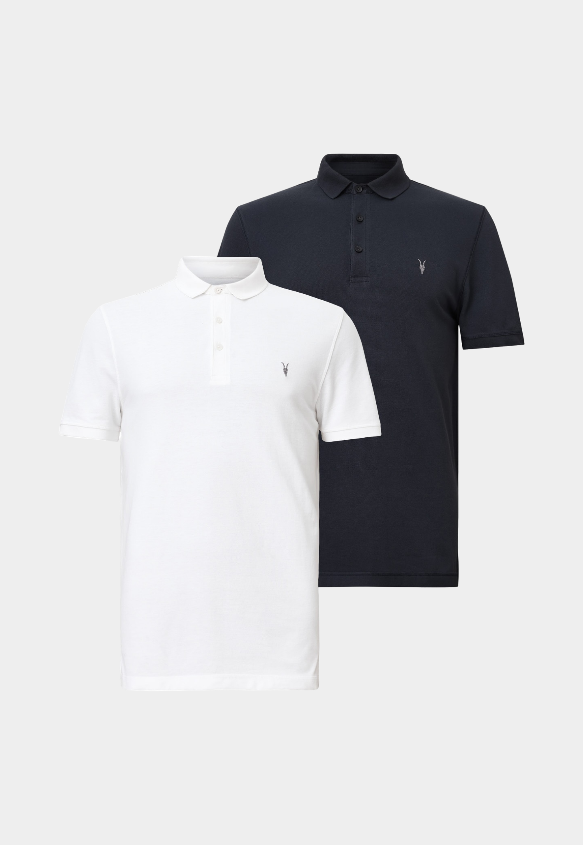 שתי חולצות פולו לגברים מבית המותג אולסיינטס. בגזרת סלים פיט, צווארון פולו קלאסי בשילוב כפתורים, שרוולים