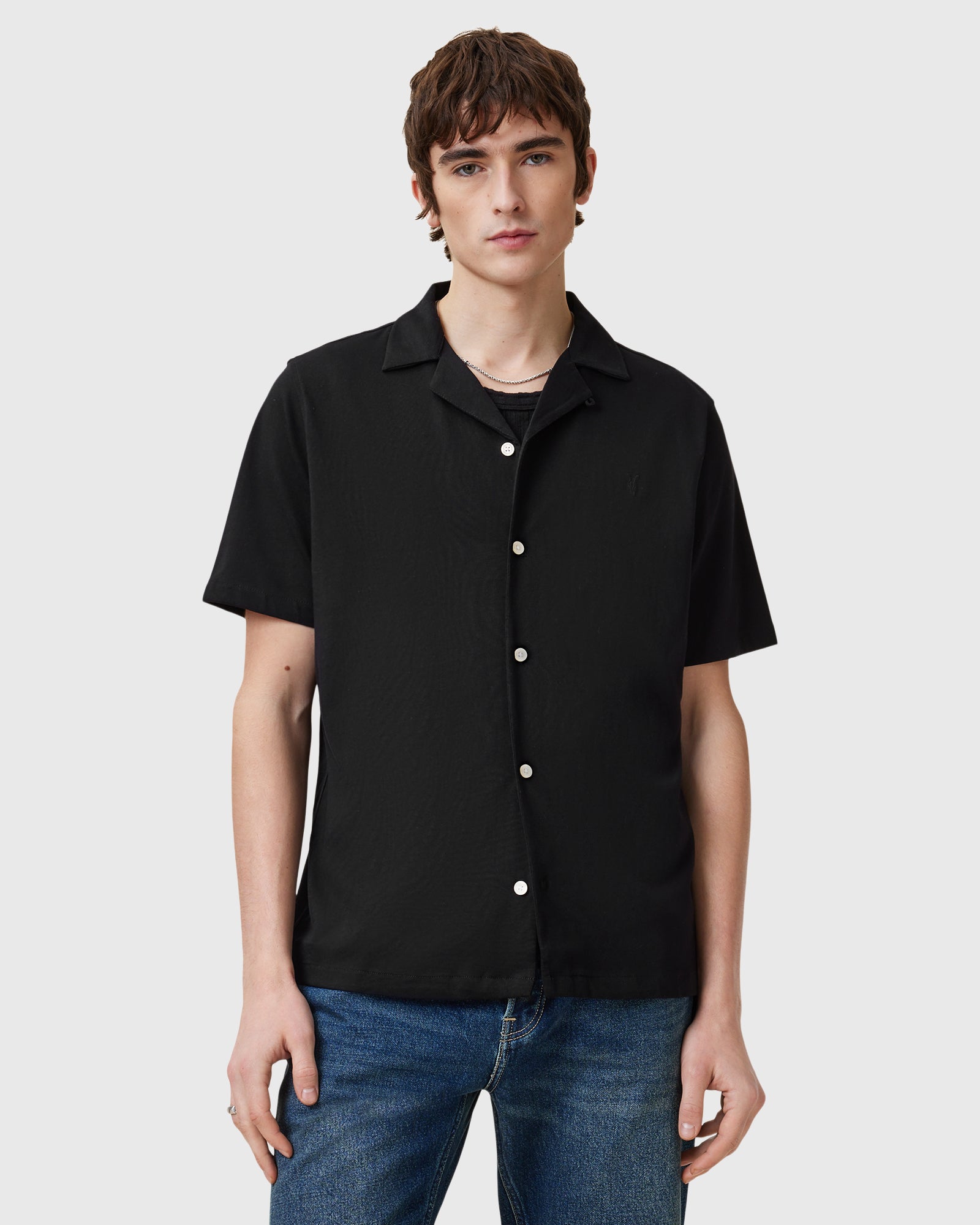 חולצה מכופתרת קצרה לגברים מבית המותג אולסיינטס. בגזרה משוחררת, עם כפתורי סגירה לכל האורך, עם צווארון ושרוולים קצרים.