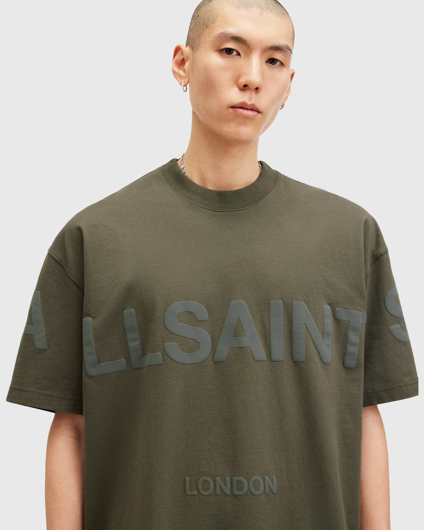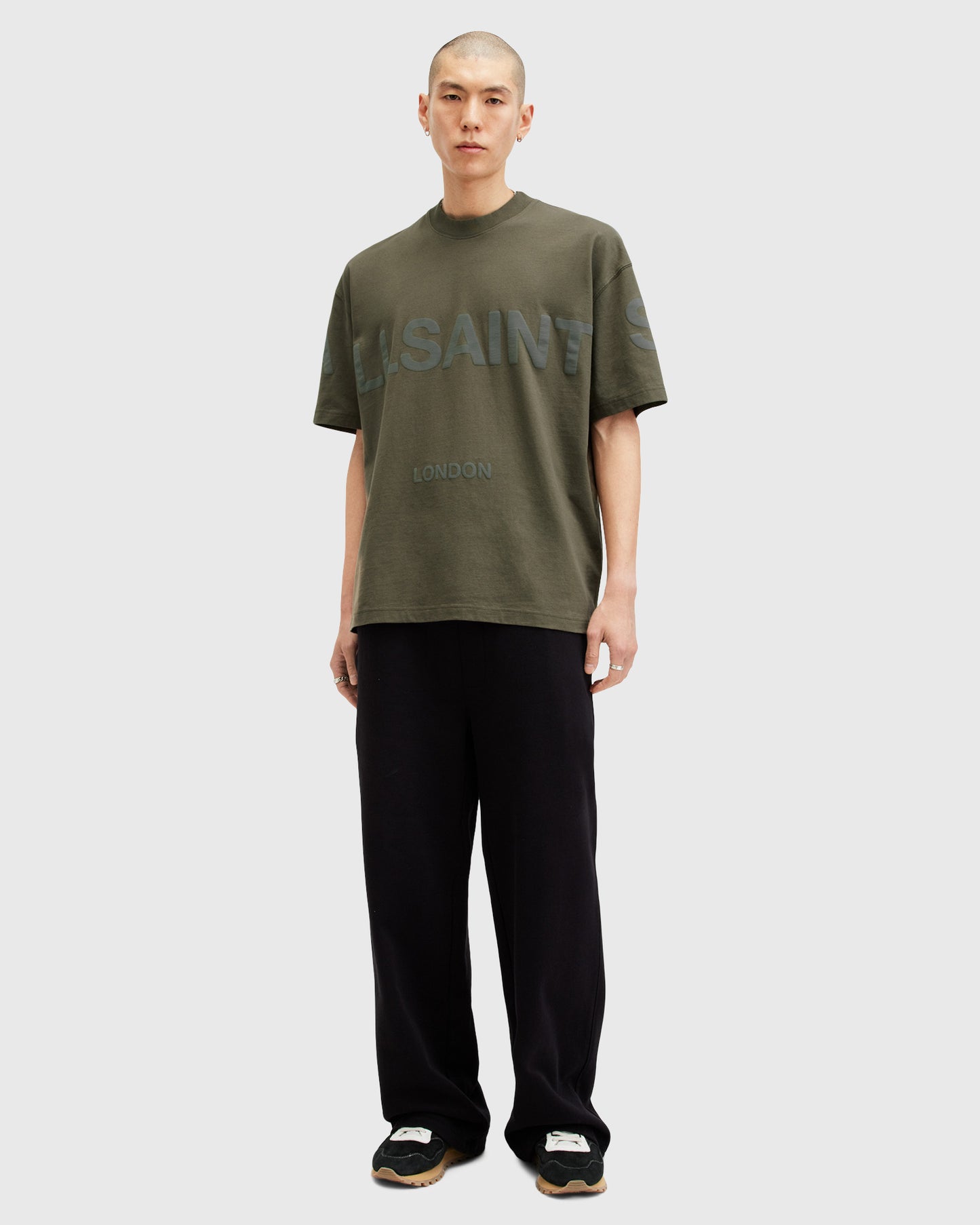 טי שירט קצרה לגברים מבית המותג אולסיינטס. בגזרת אוברסייז עם מפתח עגול ושרוולים ארוכים, בשילוב לוגו גדול של המותג בחזית בצבע החולצה.