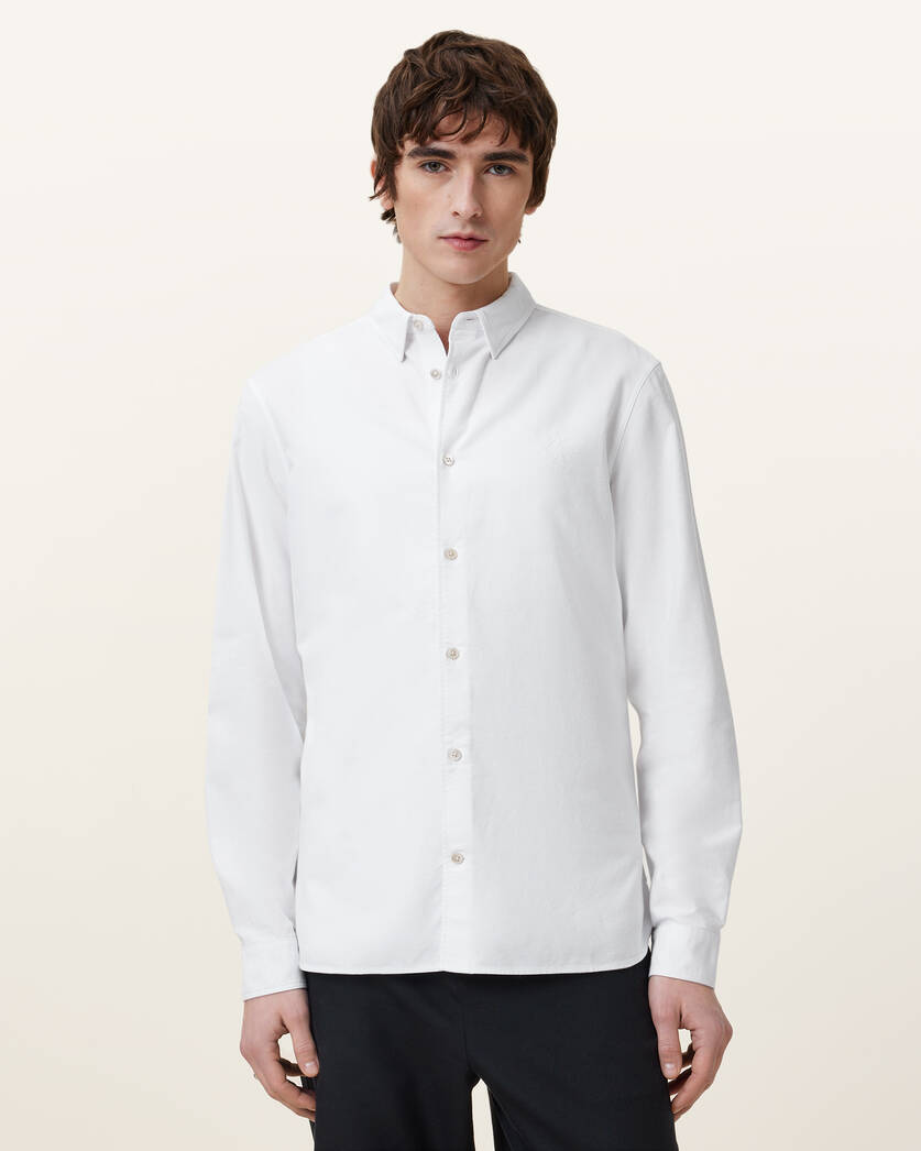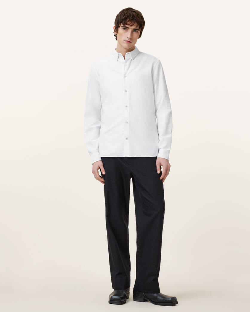 חולצה מכופתרת ארוכה לגברים מבית המותג אולסיינטס. בגזרת סלים פיט, עם כפתורי סגירה לכל האורך, צווארון קלאסי ושרוולים ארוכים.
