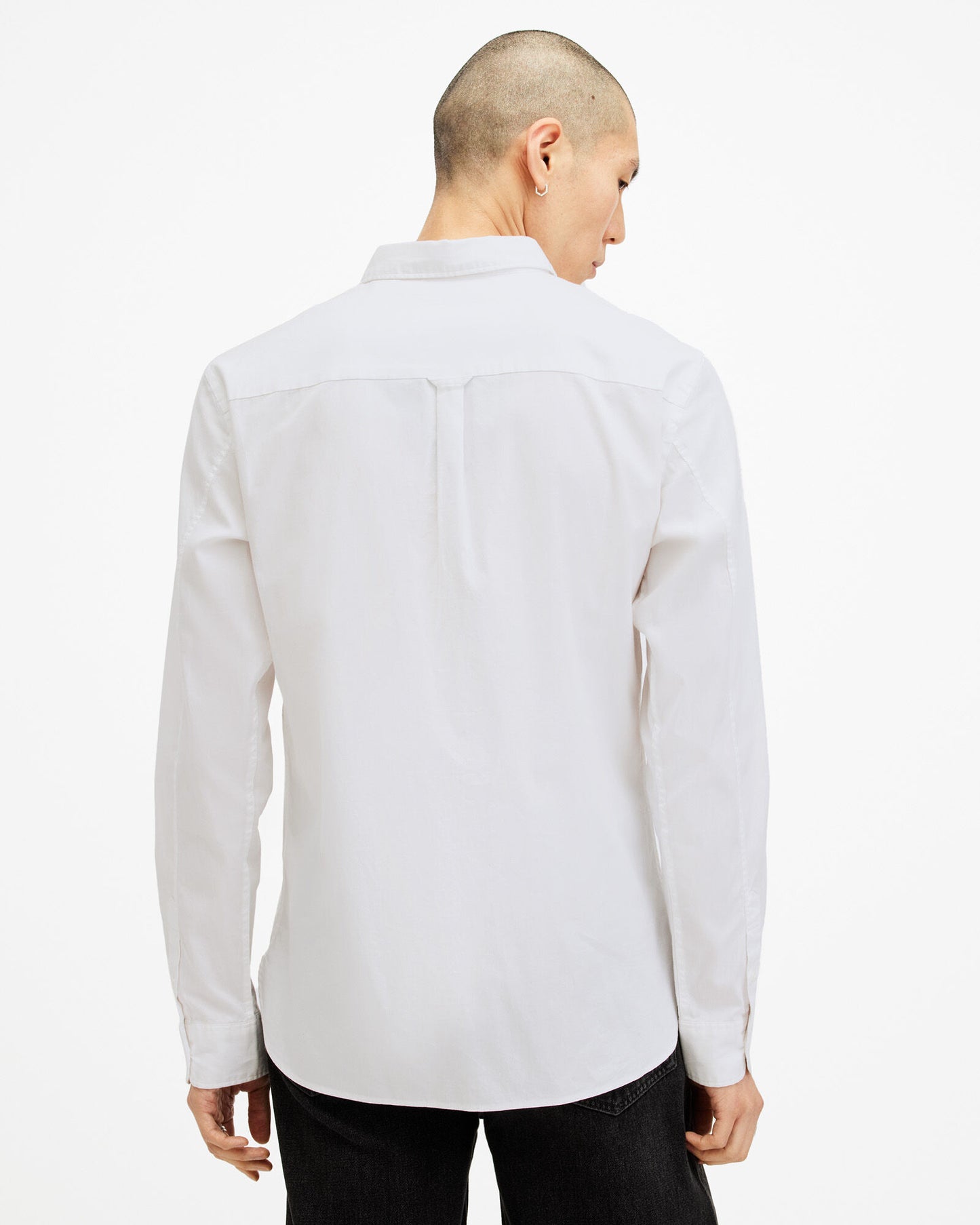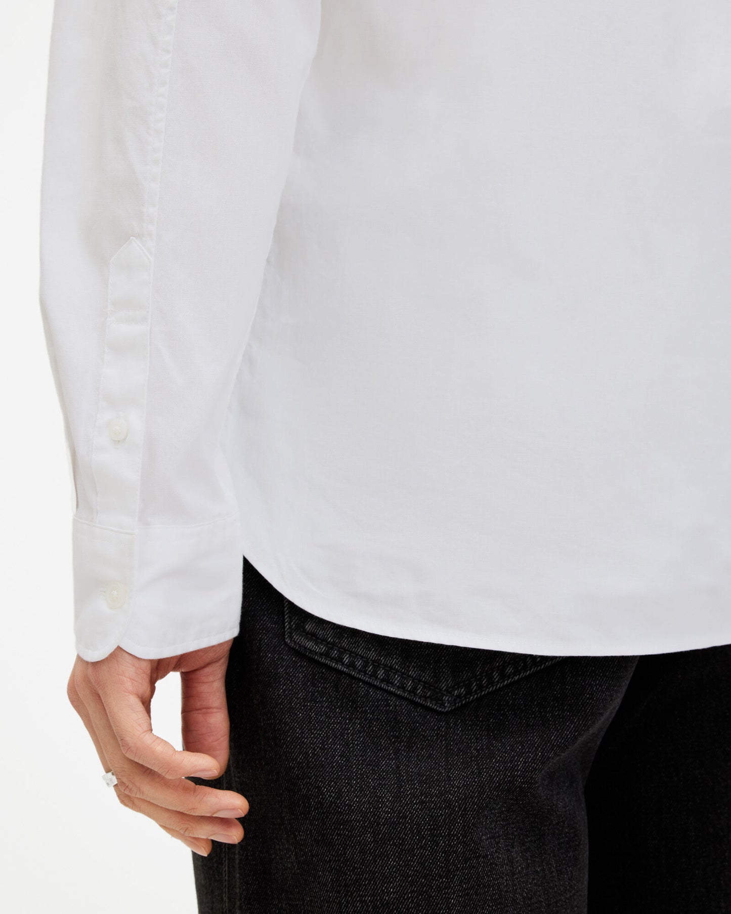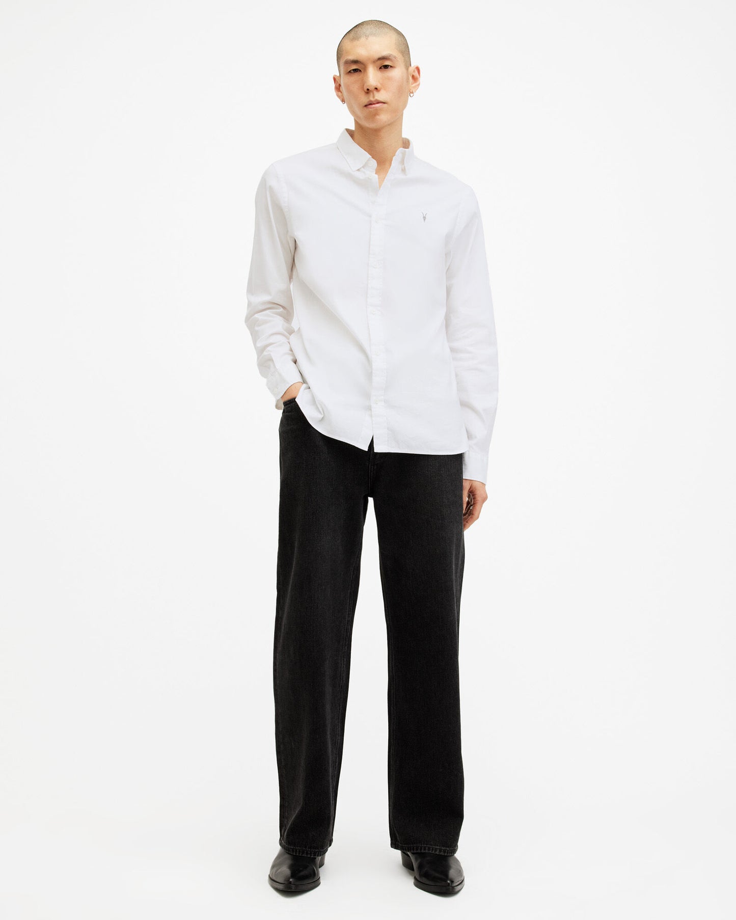 חולצה מכופתרת ארוכה לגברים מבית המותג אולסיינטס. גזרת סלים פיט, עם כפתורי סגירה לכל האורך, שרוולים ארוכים, צווארון קלאסי ולוגו המותג רקום בצד החזה.