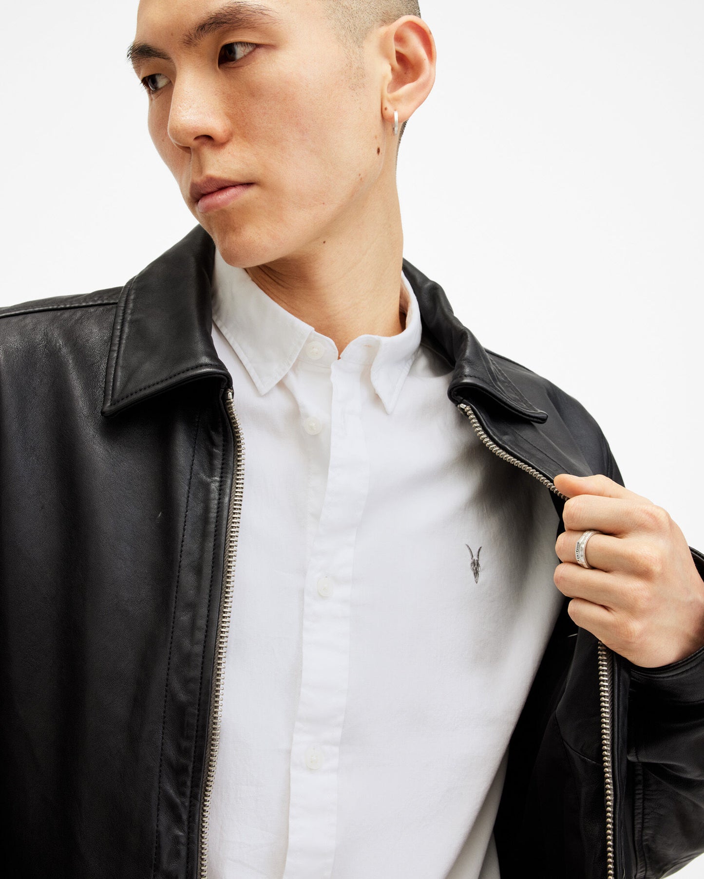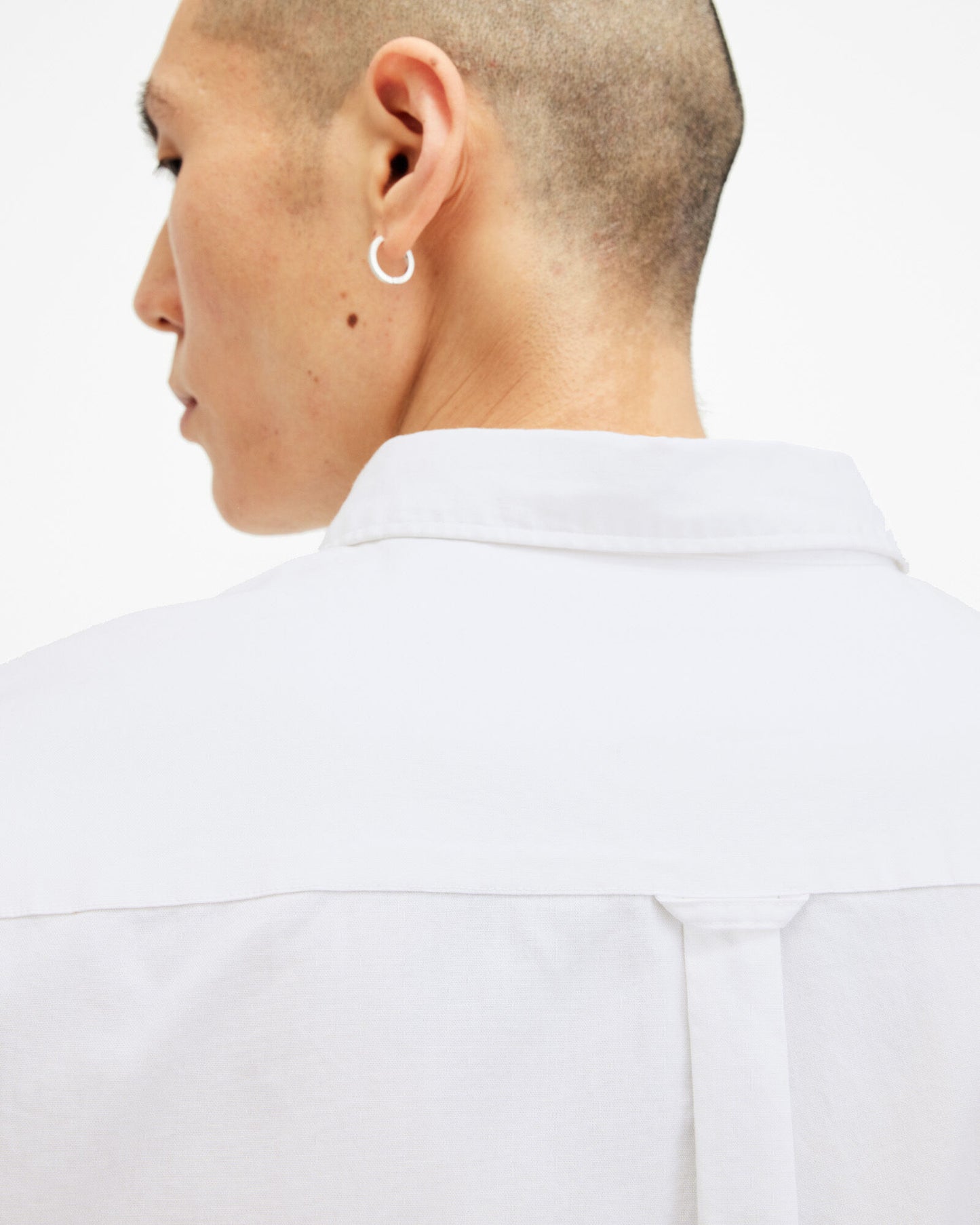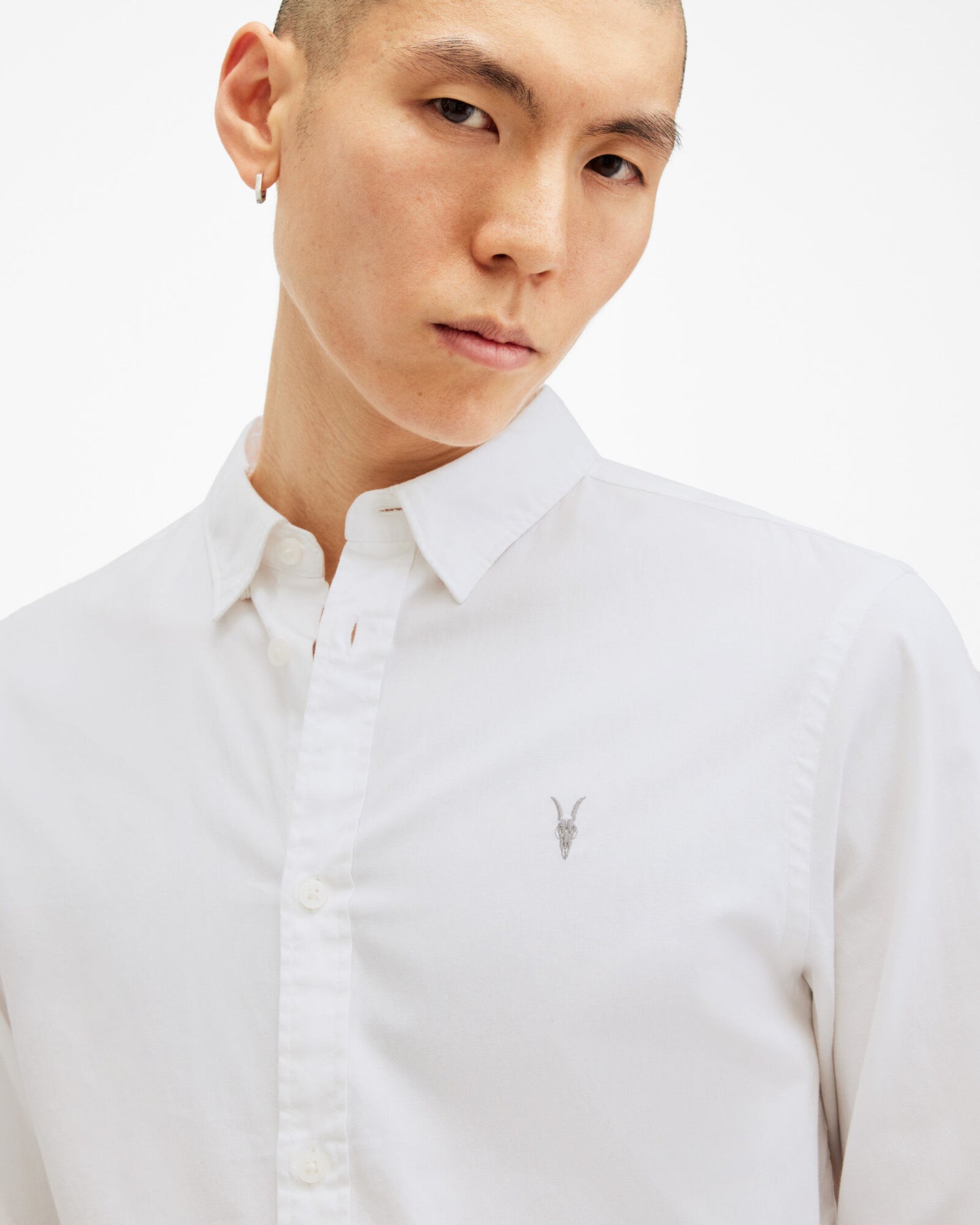 חולצה מכופתרת ארוכה לגברים מבית המותג אולסיינטס. גזרת סלים פיט, עם כפתורי סגירה לכל האורך, שרוולים ארוכים, צווארון קלאסי ולוגו המותג רקום בצד החזה.