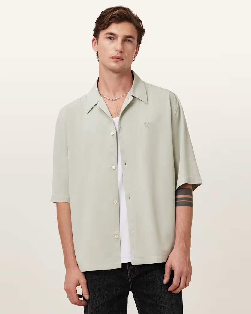 חולצה מכופתרת קצרה לגברים מבית המותג אולסיינטס. בגזרה משוחררת, עם כפתורי סגירה לכל האורך, צווארון שטוח ושרוולים קצרים.