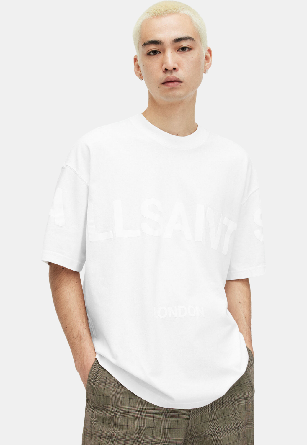 טי שירט קצרה לגברים מבית המותג אולסיינטס. בגזרת אוברסייז עם מפתח עגול ושרוולים ארוכים, בשילוב לוגו גדול של המותג בחזית בצבע החולצה.