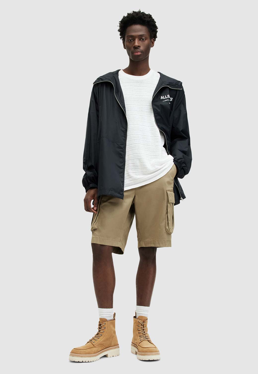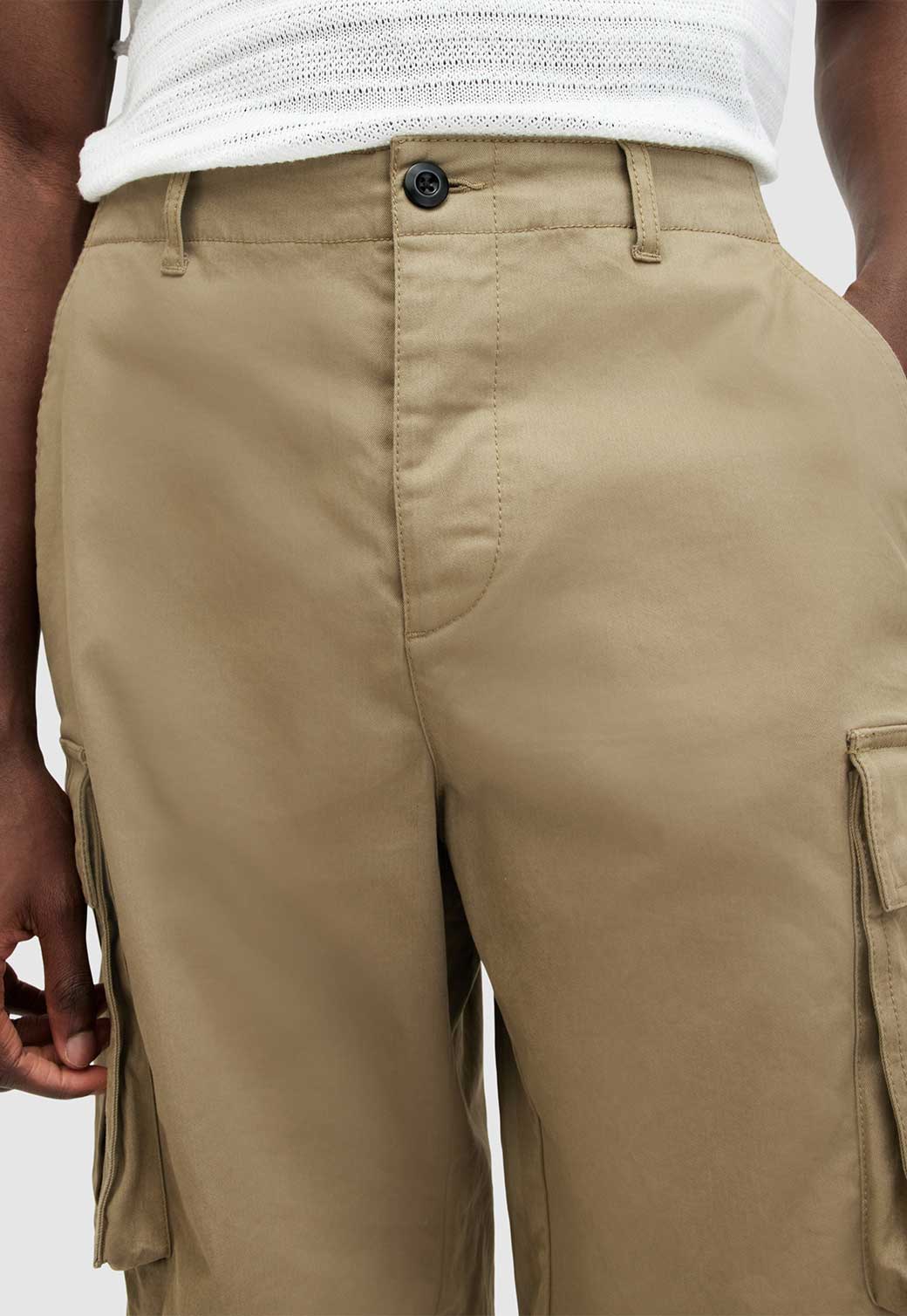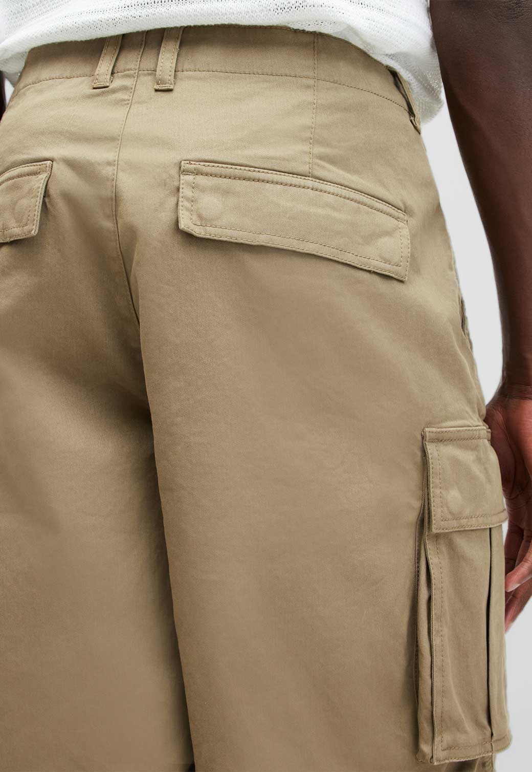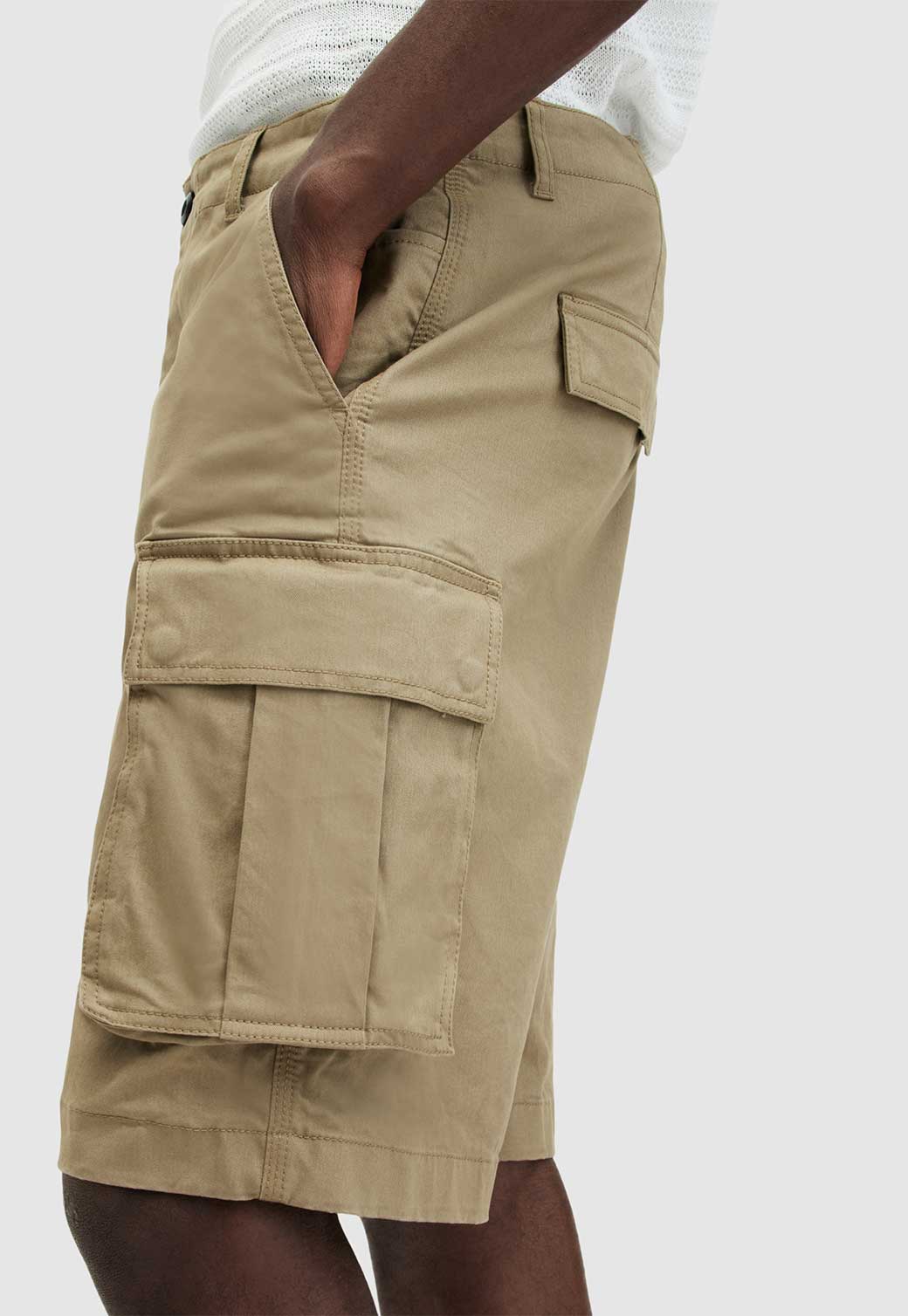 מכנסיים קצרים לגברים מבית המותג אולסיינטס. בגזרת קרגו באורך הברכיים, בסגירת כפתור ובשילוב לולאות לחגורה. למכנסיים 6 כיסים.