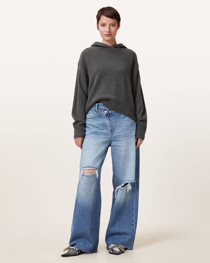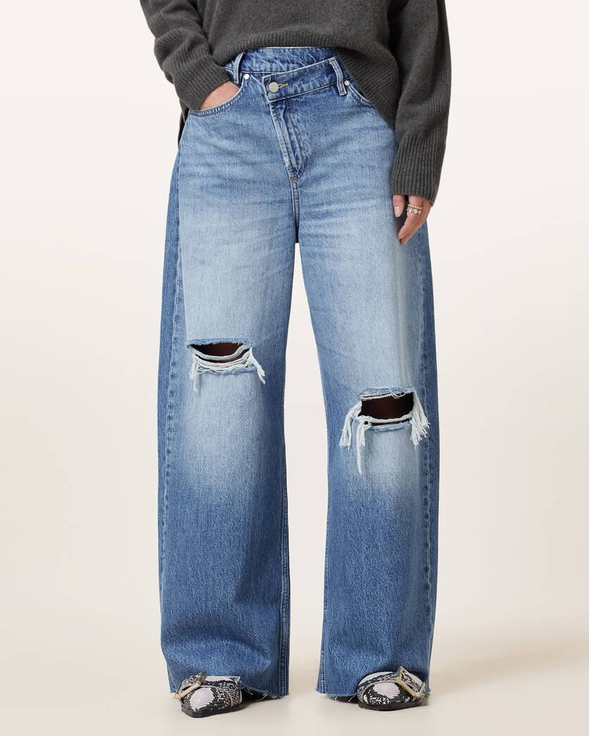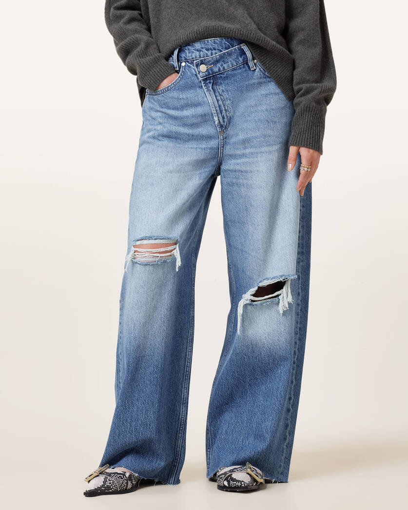 ג'ינס ארוך לנשים מבית המותג אולסיינטס. בגזרת רחבה (Wide Leg) עם מותן גבוהה.