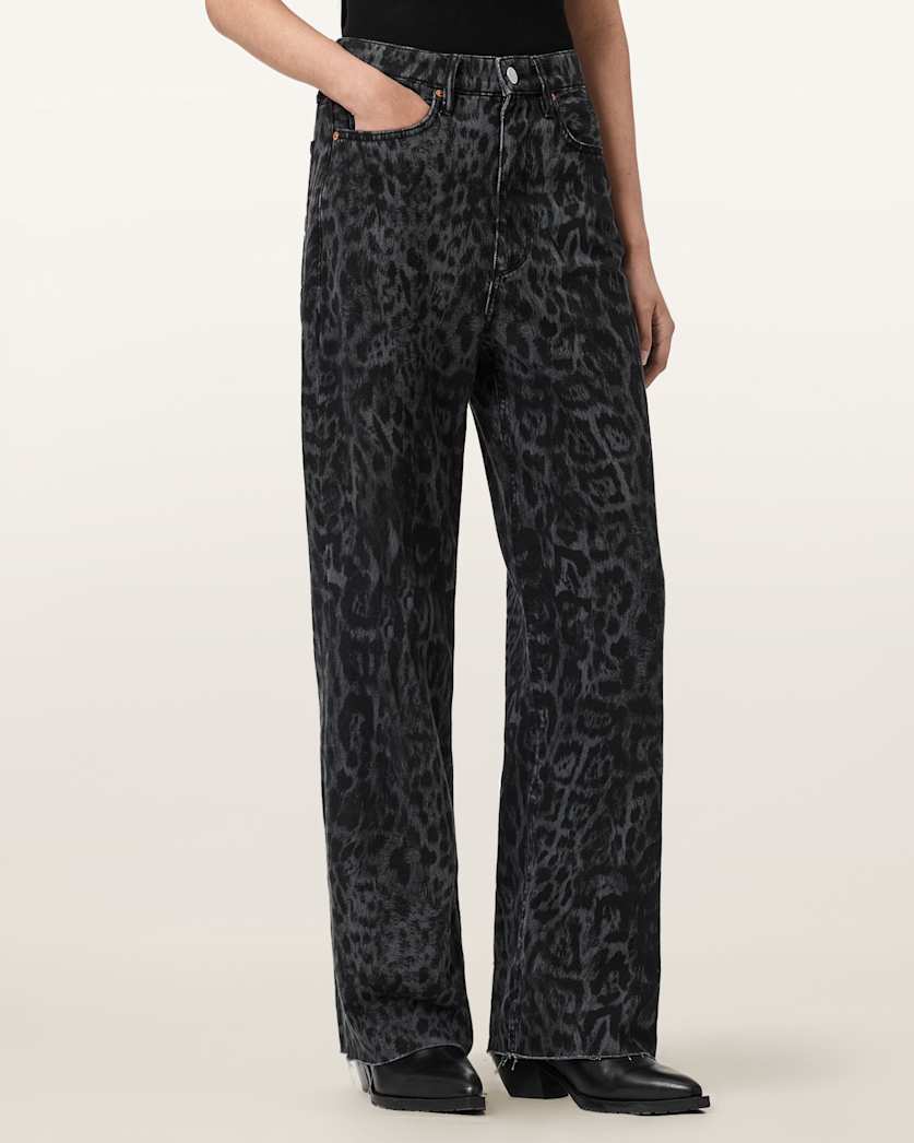 ג׳ינס לנשים מבית המותג אולסיינטס, בעיצוב נועז ומלא נוכחות עם הדפס מנומר ייחודי.