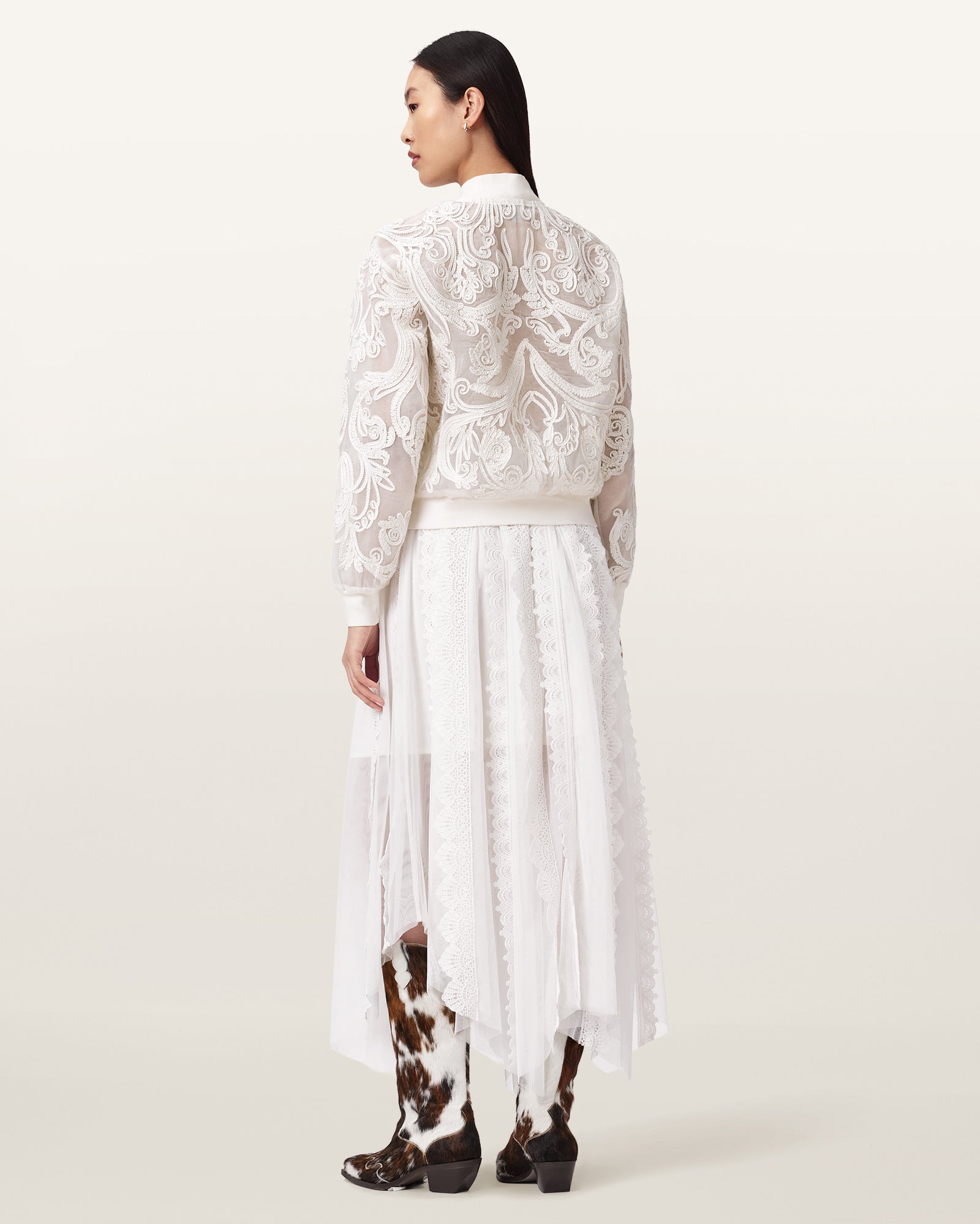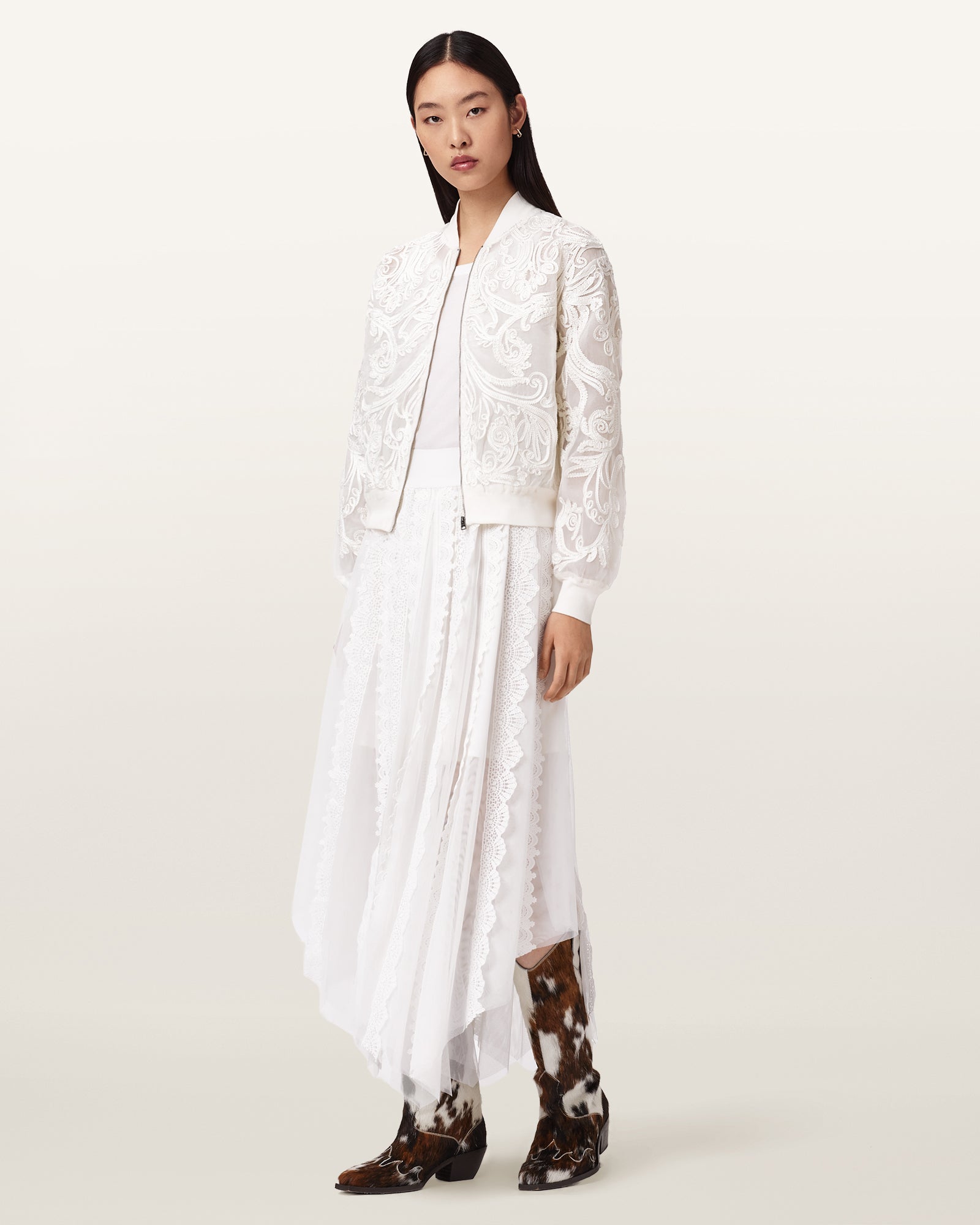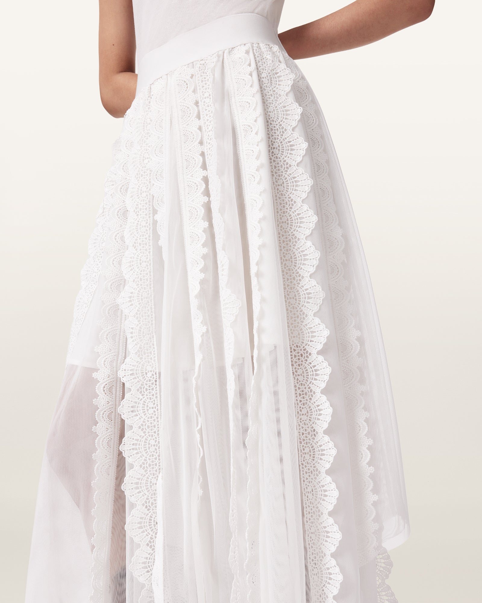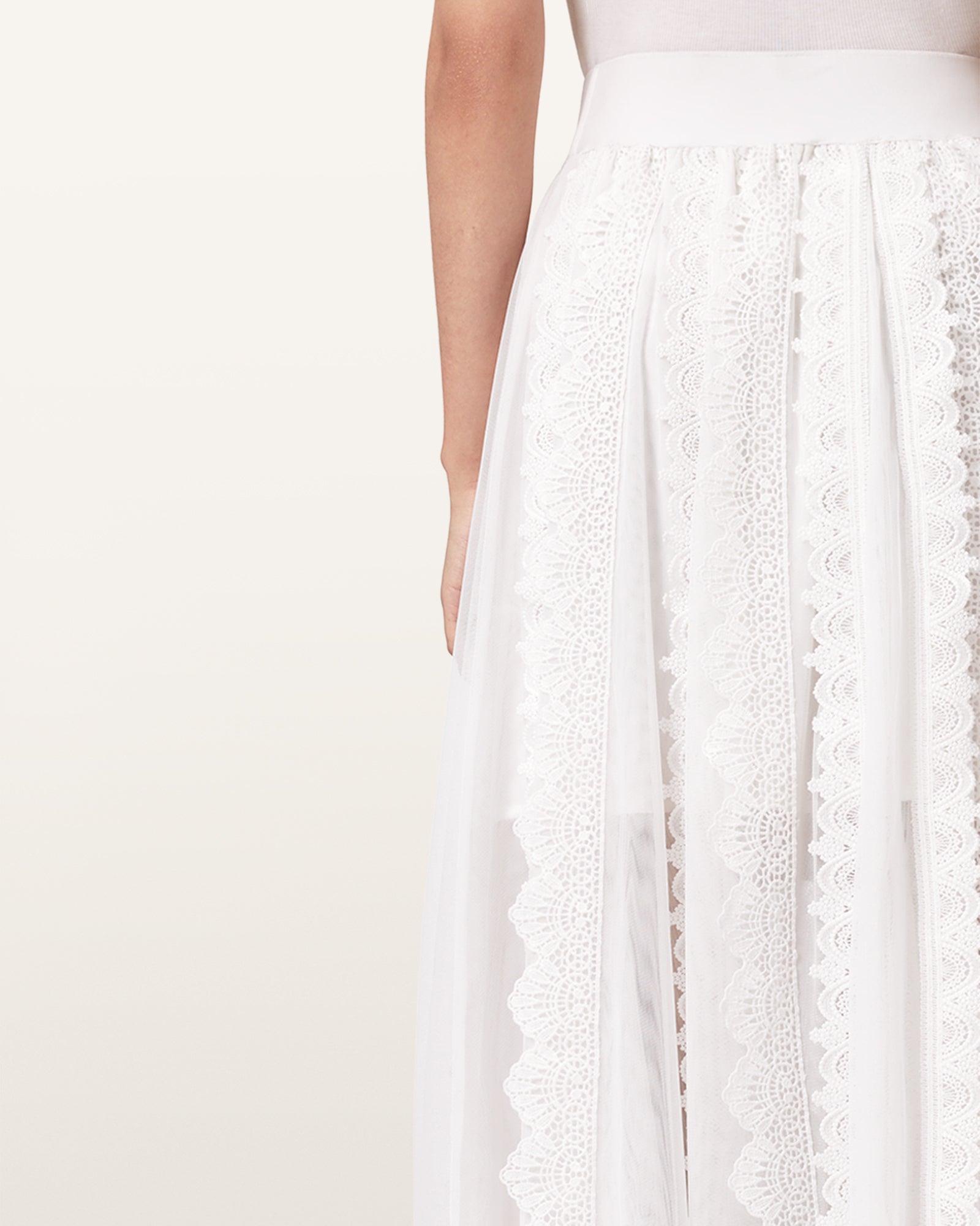 חצאית מידי לנשים מבית המותג אולסיינטס, בעיצוב נשי עם איזון בין רכות לנוכחות. דגם Vashtie Skirt משלב בגוון לבן קו אופנתי לא מתאמץ שמתאים למלתחה עכשווית.