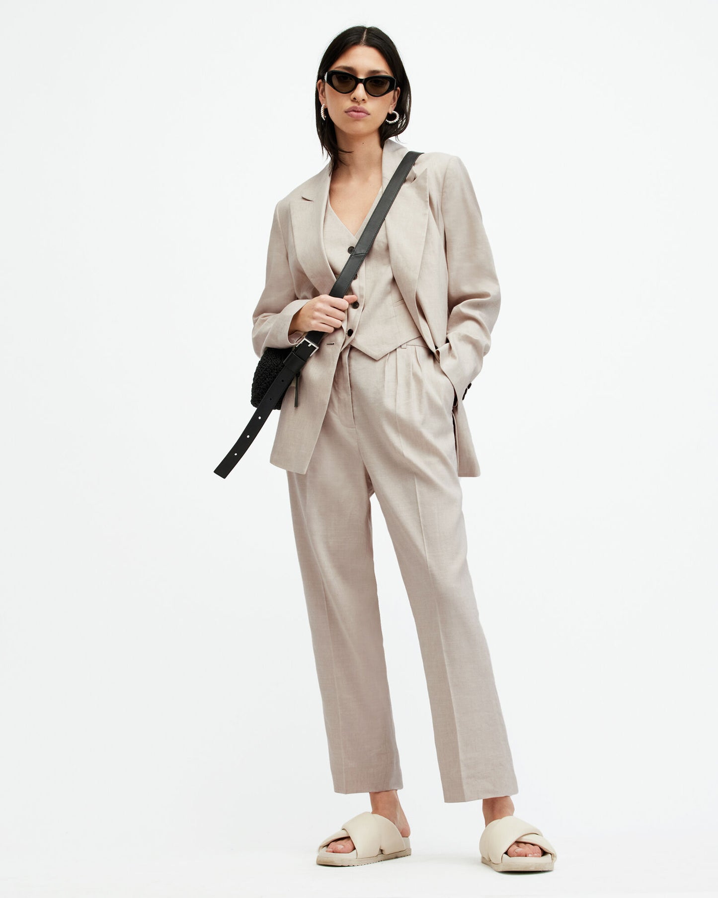 ווסט לנשים מבית המותג אולסיינטס. בגזרה מחויטת עם מפתח וי וללא שרוולים. בסגירת כפתורים בחזית. עשוי בד בשילוב פשתן, קליל ומושלם לקיץ ולעונת המעבר.