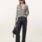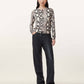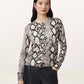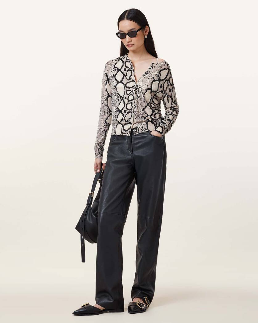 קרדיגן צמר לנשים מבית המותג אולסיינטס. בגזרה צמודה, הדפס מנוחש, מפתח עגול, כפתורי סגירה לכל האורך ושרוולים ארוכים.