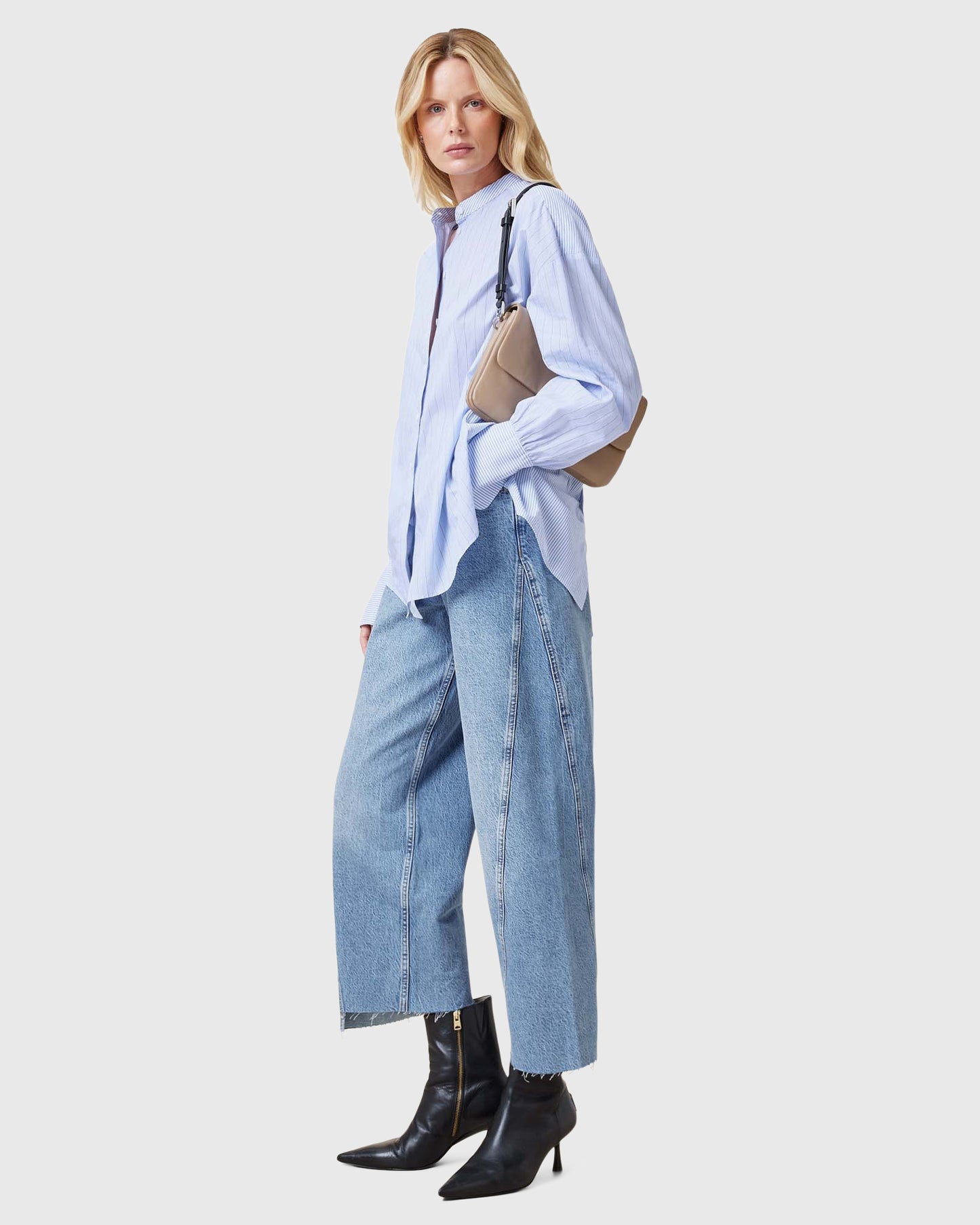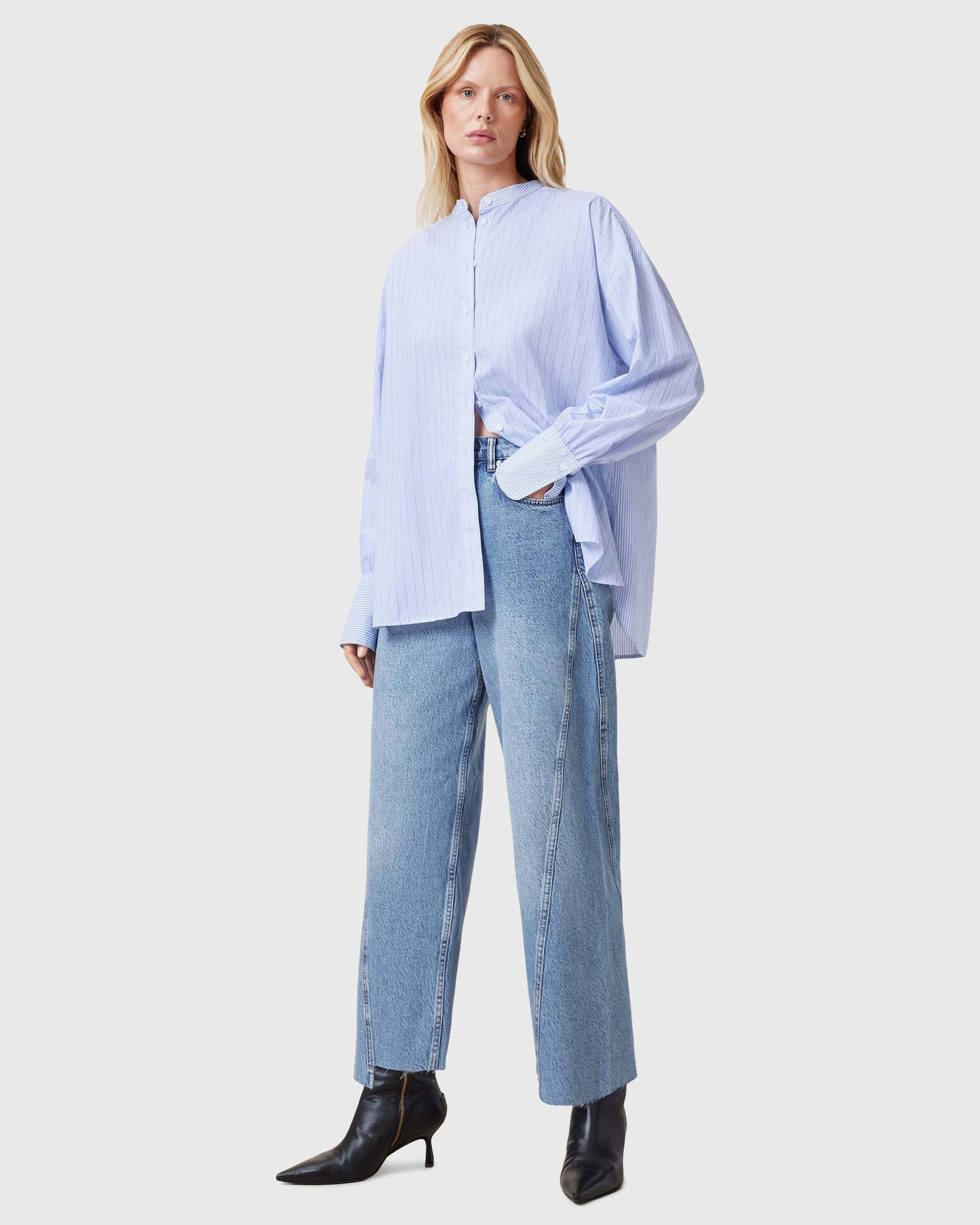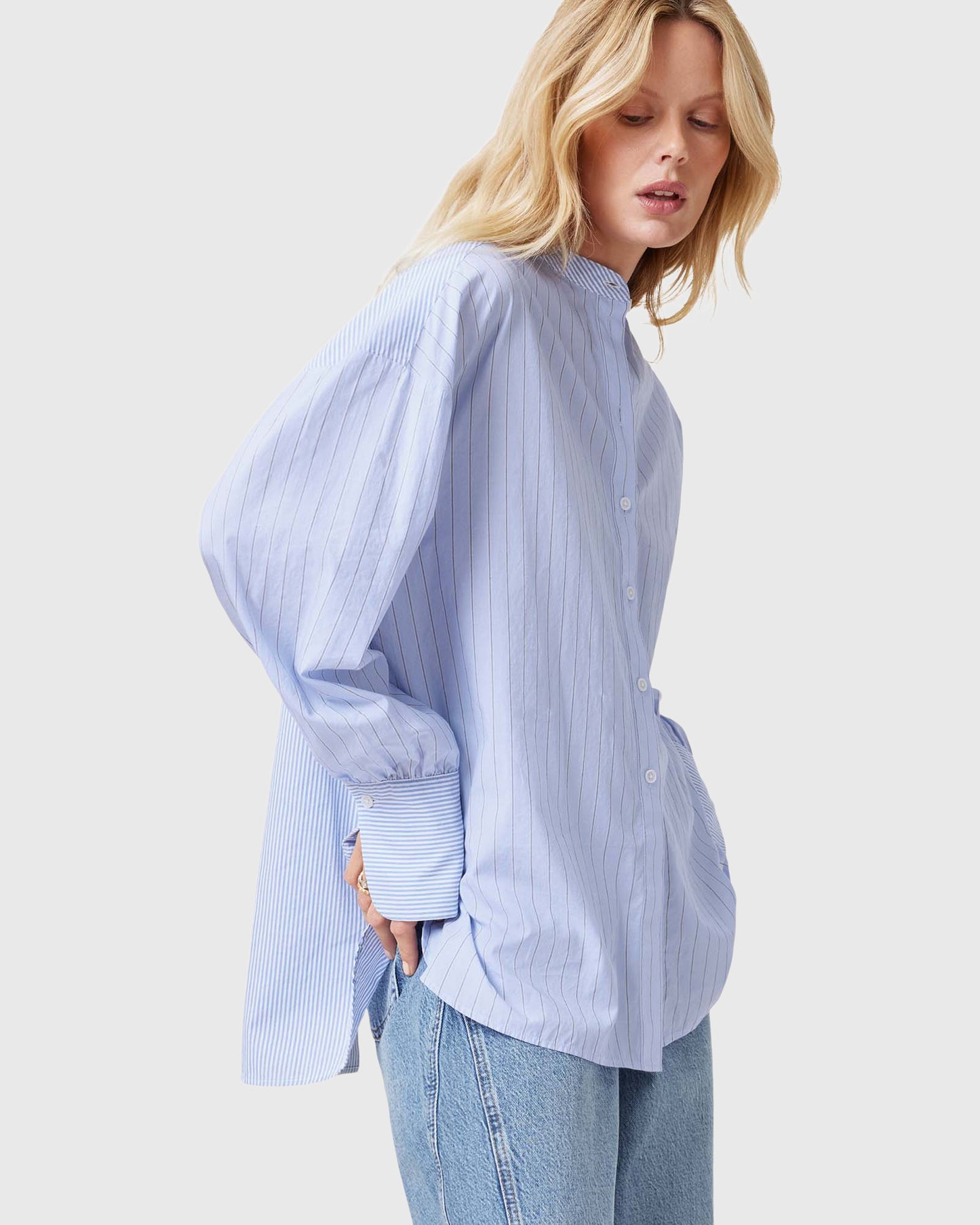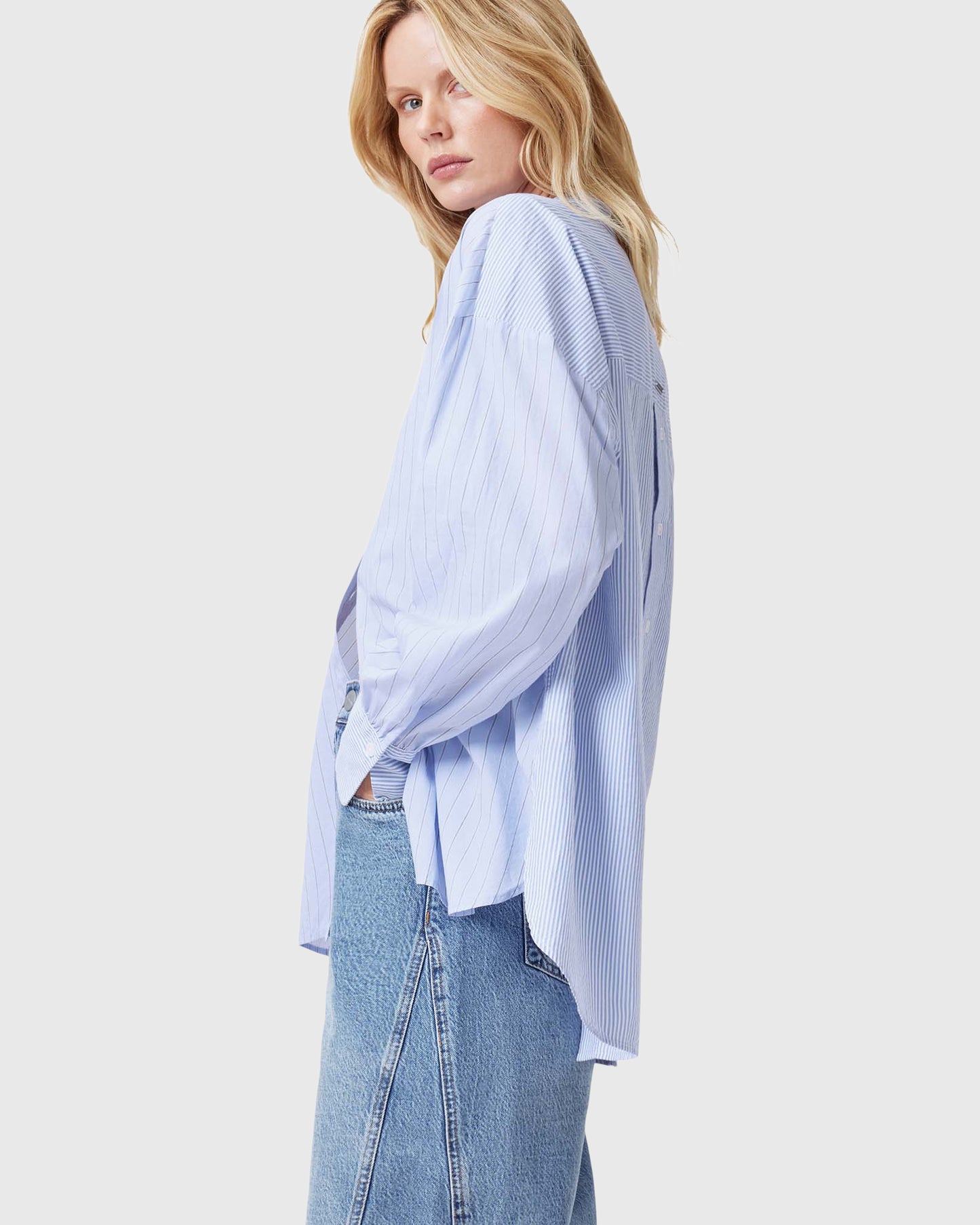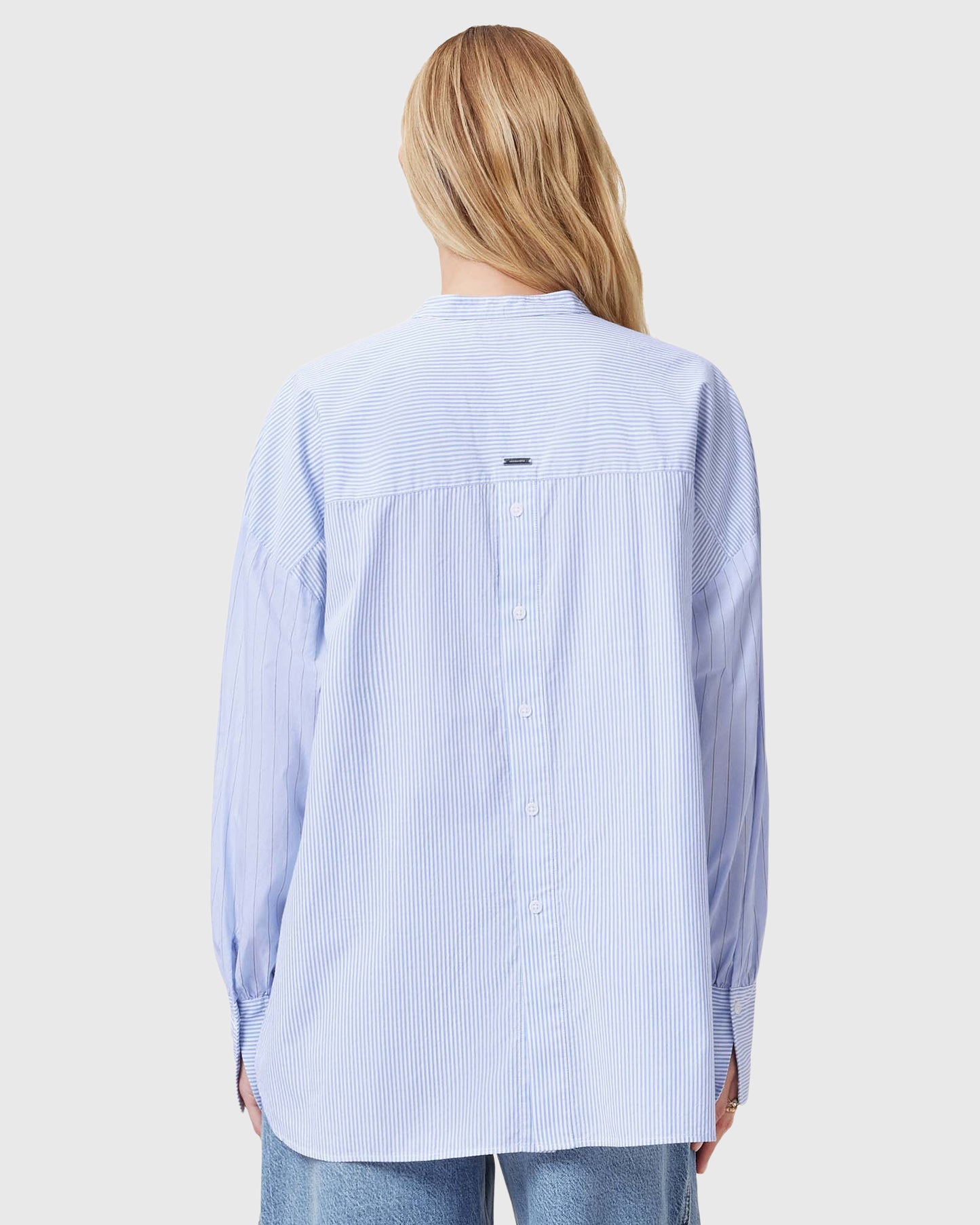 חולצה מכופתרת ארוכה לנשים מבית המותג אולסיינטס. בגזרת אוברסייז, עם כפתורי סגירה לכל האורך ושרוולים ארוכים