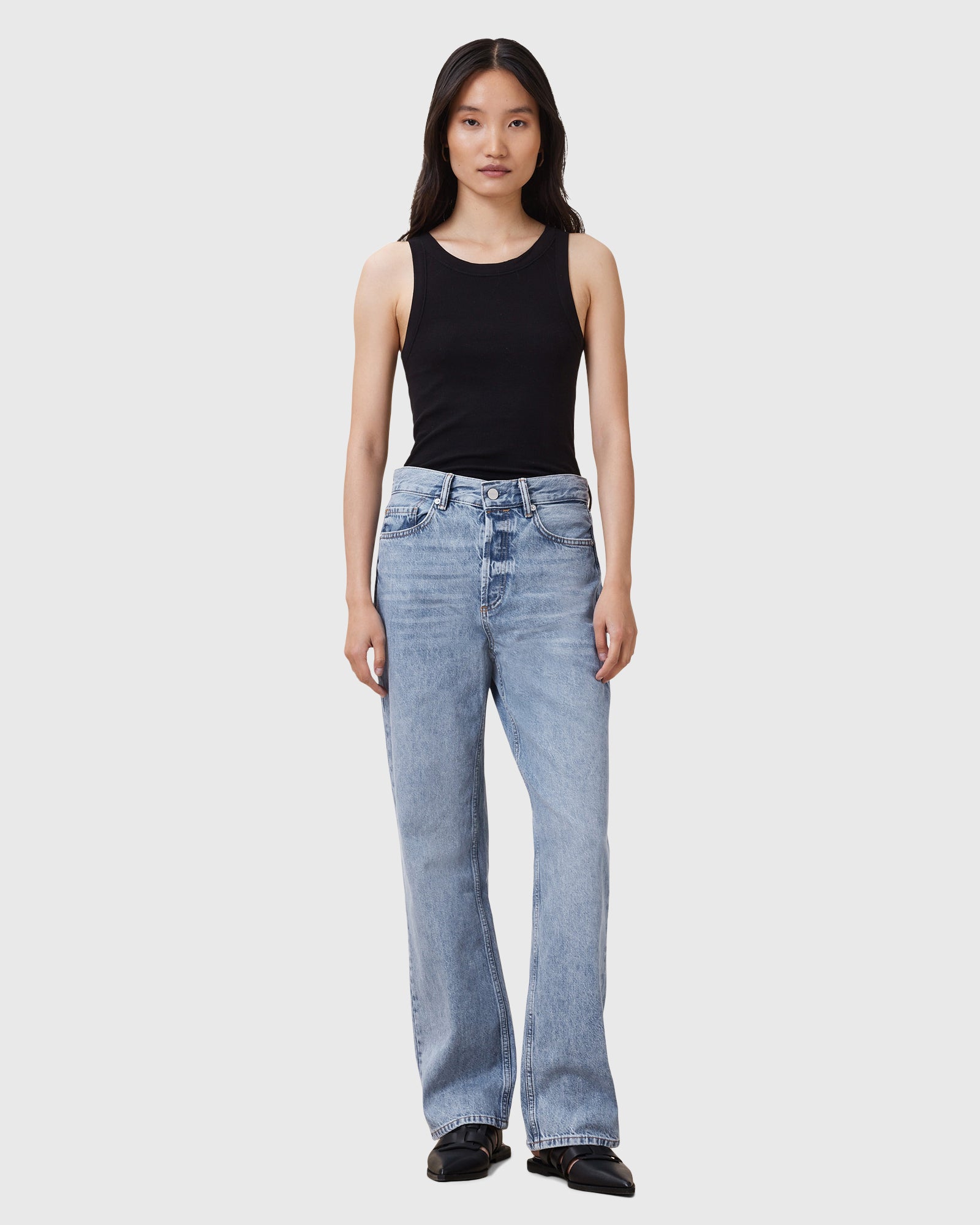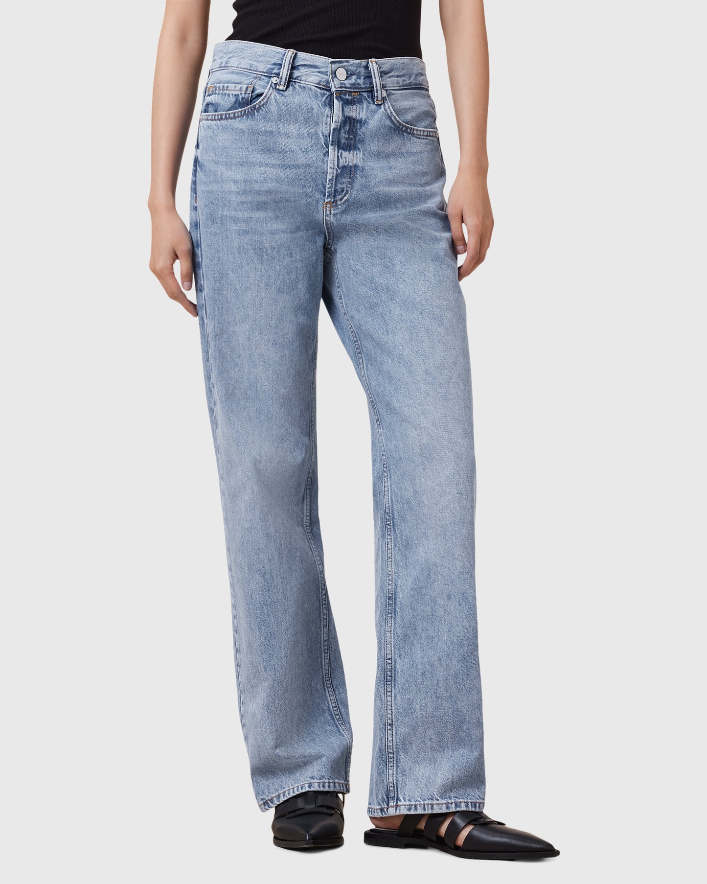 ג'ינס ארוך לנשים מבית המותג אולסיינטס. בגזרה ישרה, יושב מידי על המותן, עם רוכסן סגירה וכפתור. עם שני כיסים קדמיים ואחוריים.