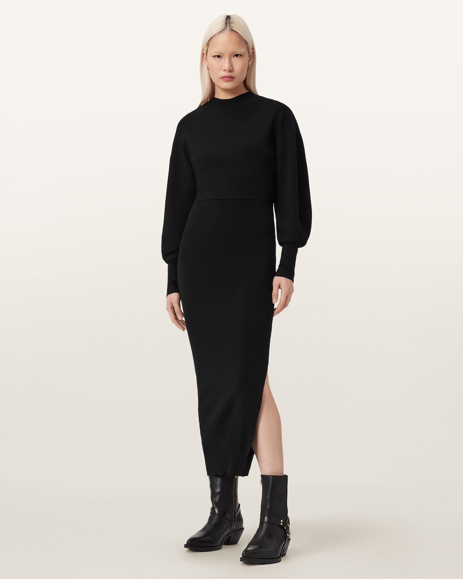 שמלה לנשים מבית המותג אולסיינטס, בעיצוב מינימליסטי ונקי עם נוכחות אלגנטית ומודרנית.