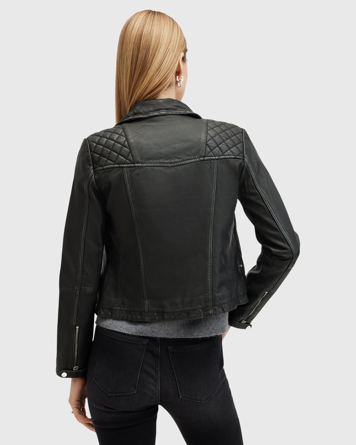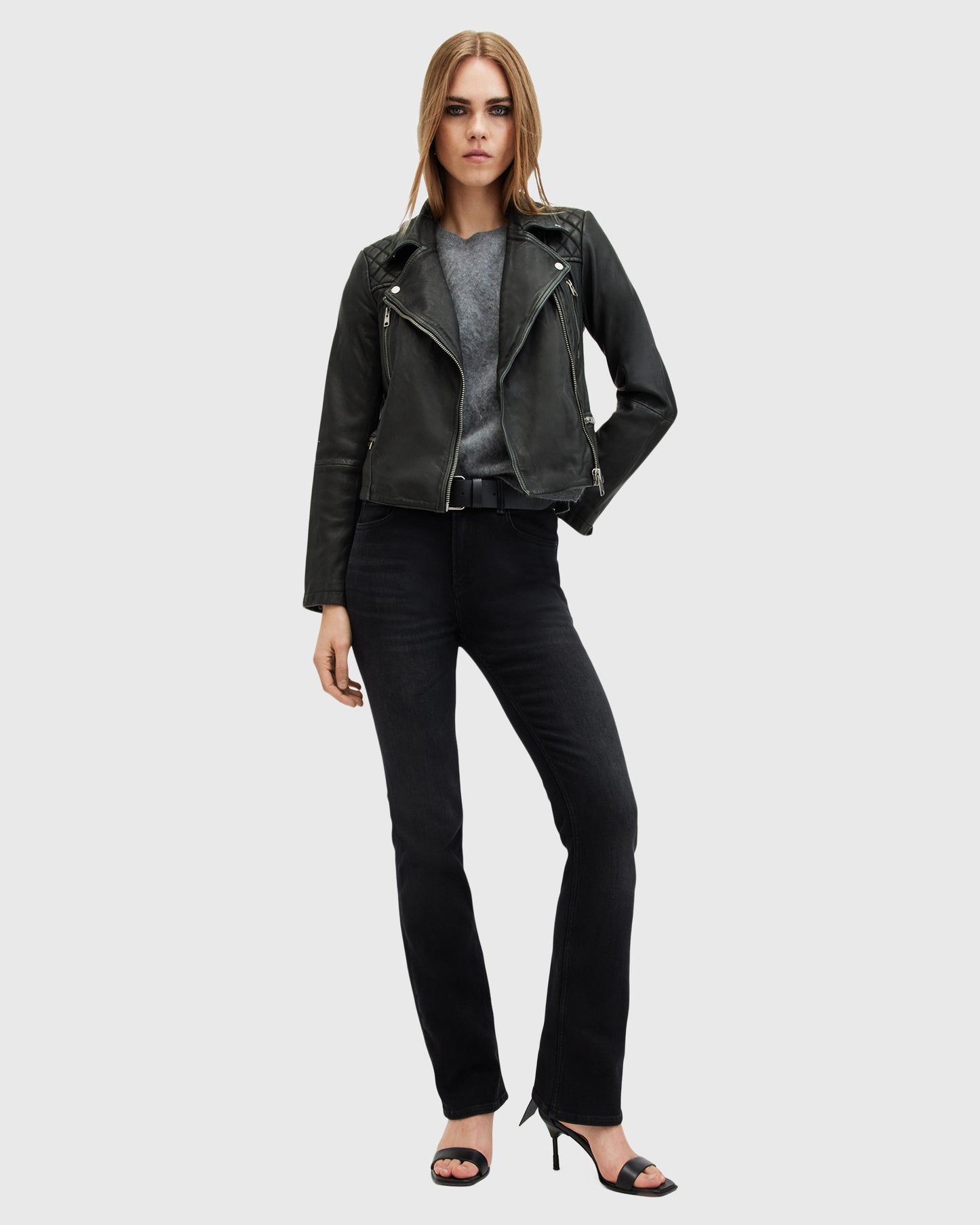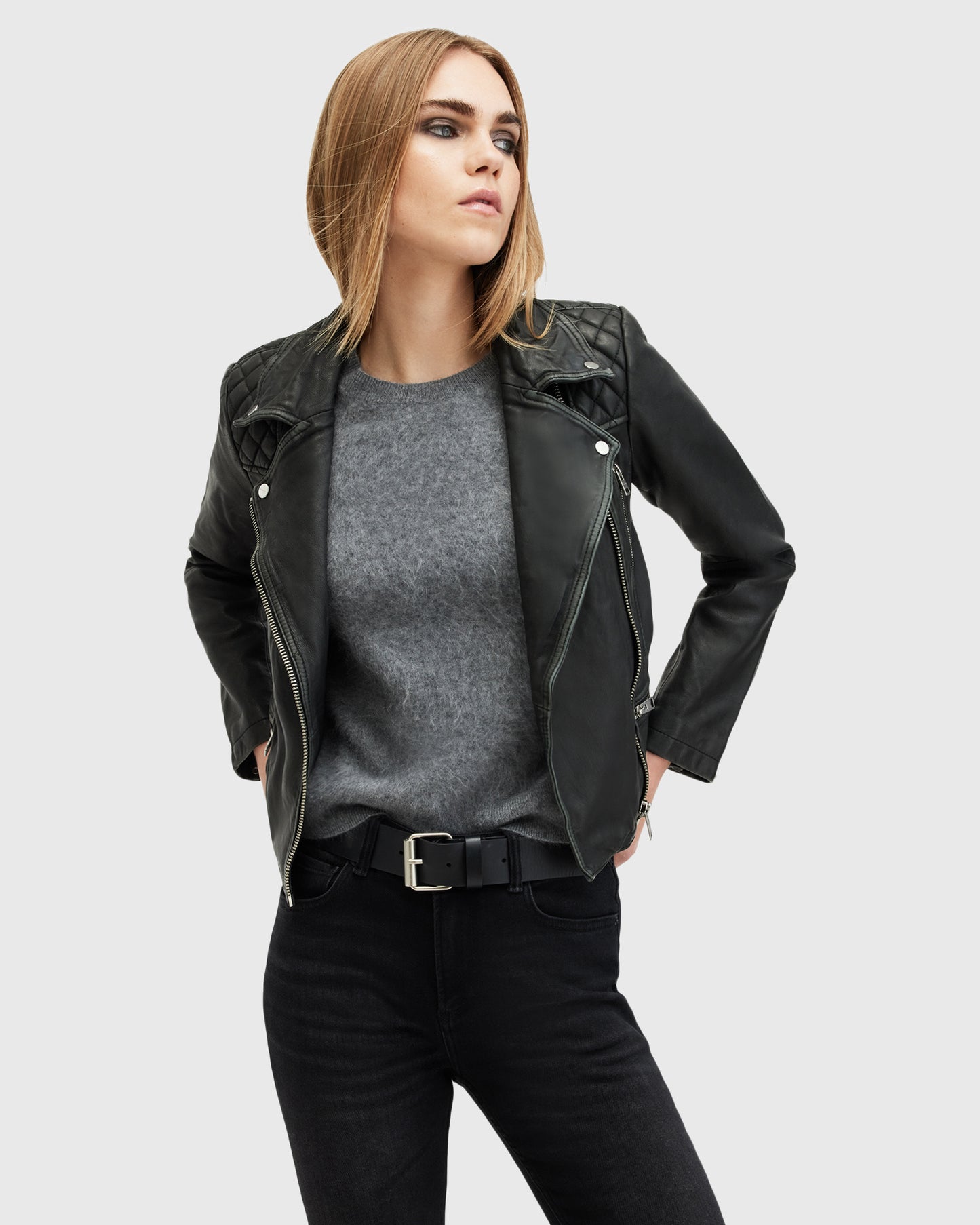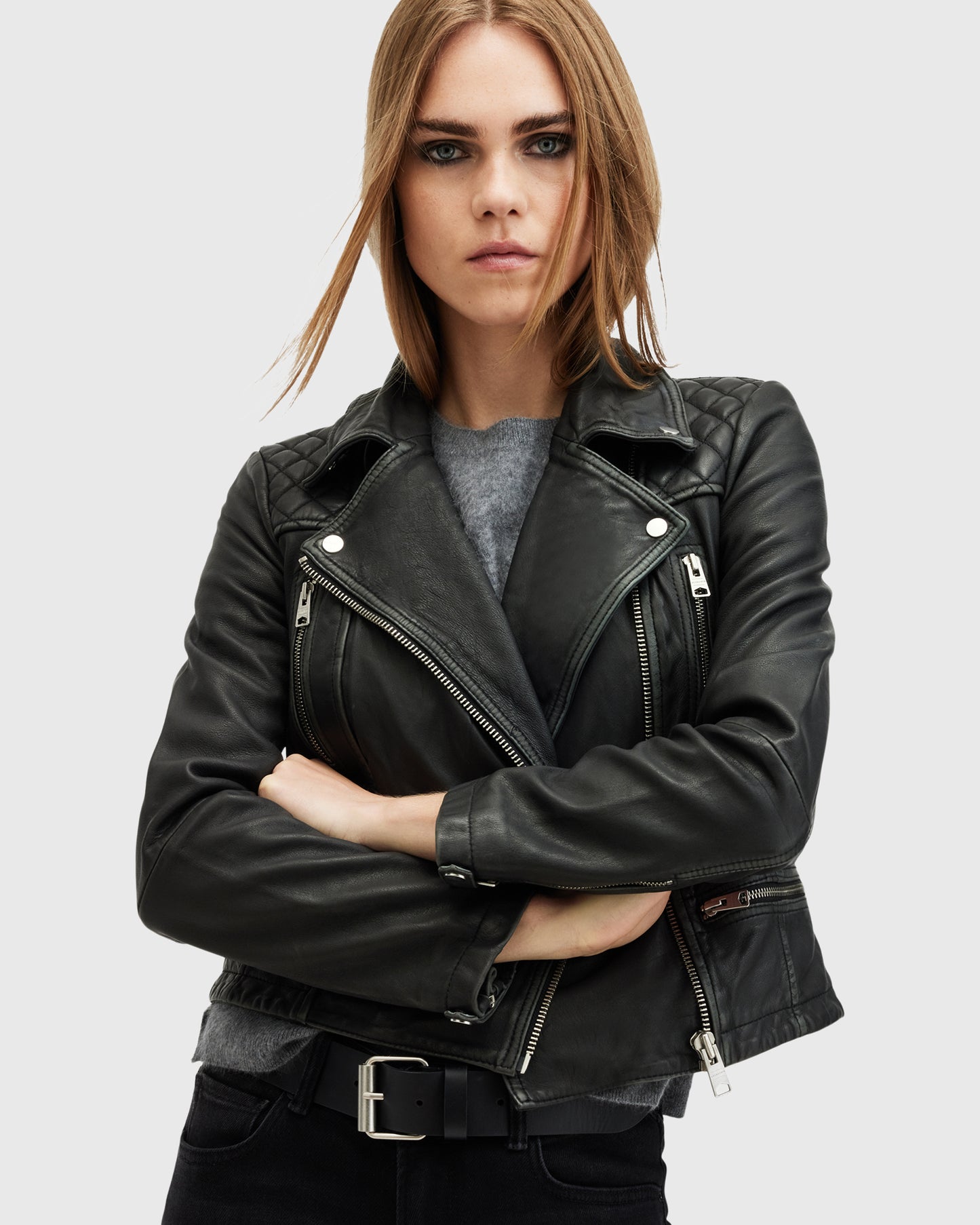 ג'קט עור לנשים מבית המותג אולסיינטס. פריט שהוא טיימלס בדיוק כמו שאנחנו אוהבים! הג'קט בסגנון וינטג' ובגזרת בייקר, עם תיפורי מעויינים בכתפיים, צווארון רחב וסגירת רוכסן בחזית. בשילוב מספר כיסים בסגירת רוכסנים. הג'קט עשוי עור משופשף.
