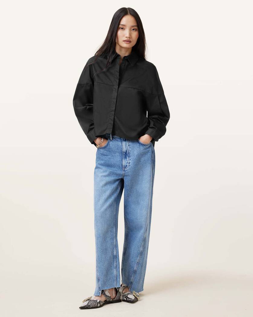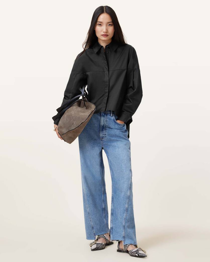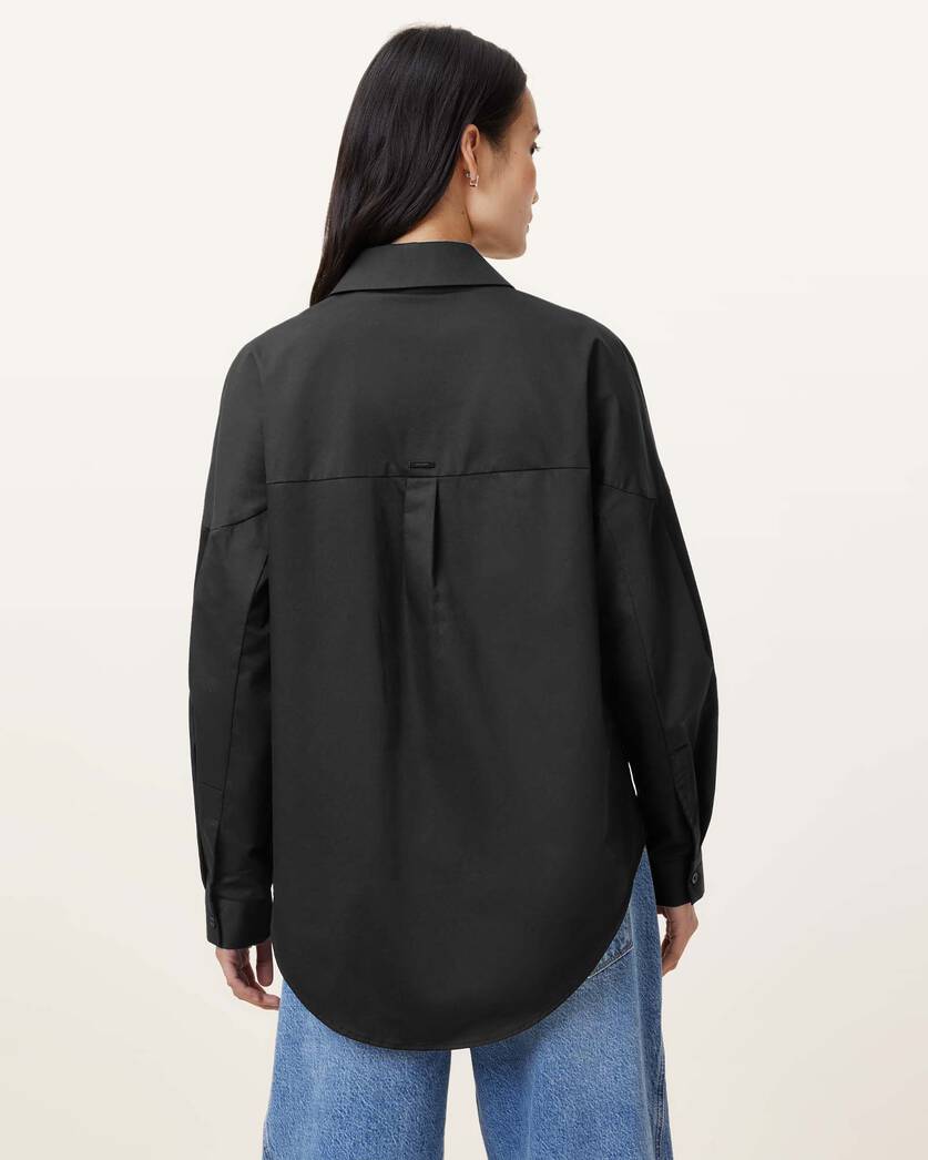 חולצה מכופתרת ארוכה לנשים מבית המותג אולסיינטס. בגזרה משוחררת, עם צווארון קלאסי, כפתורי סגירה לכל האורך ושרוולים ארוכים.