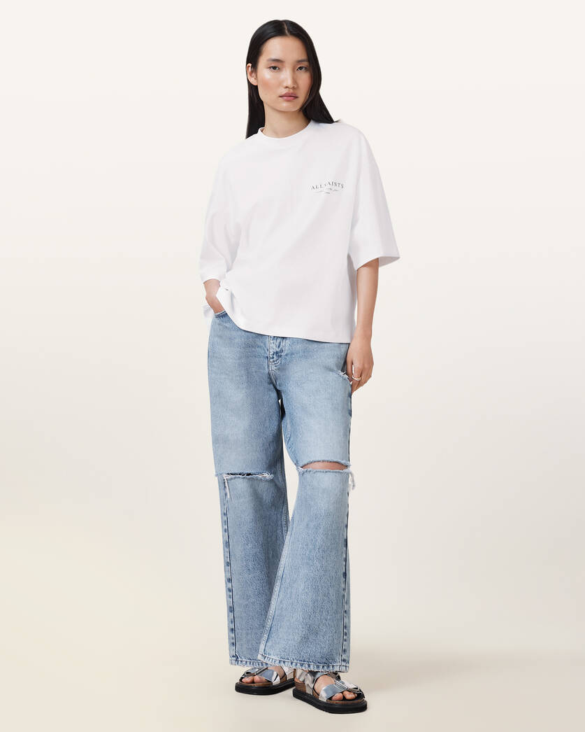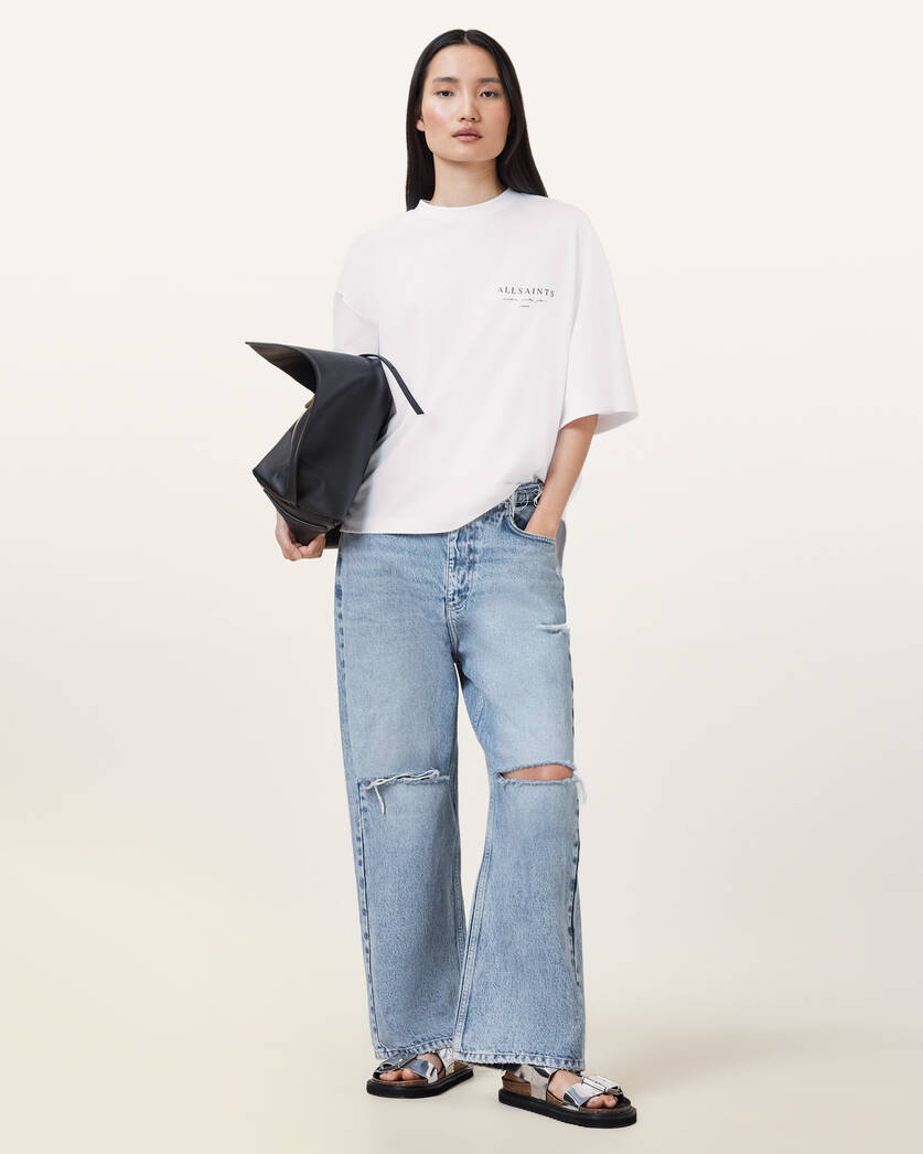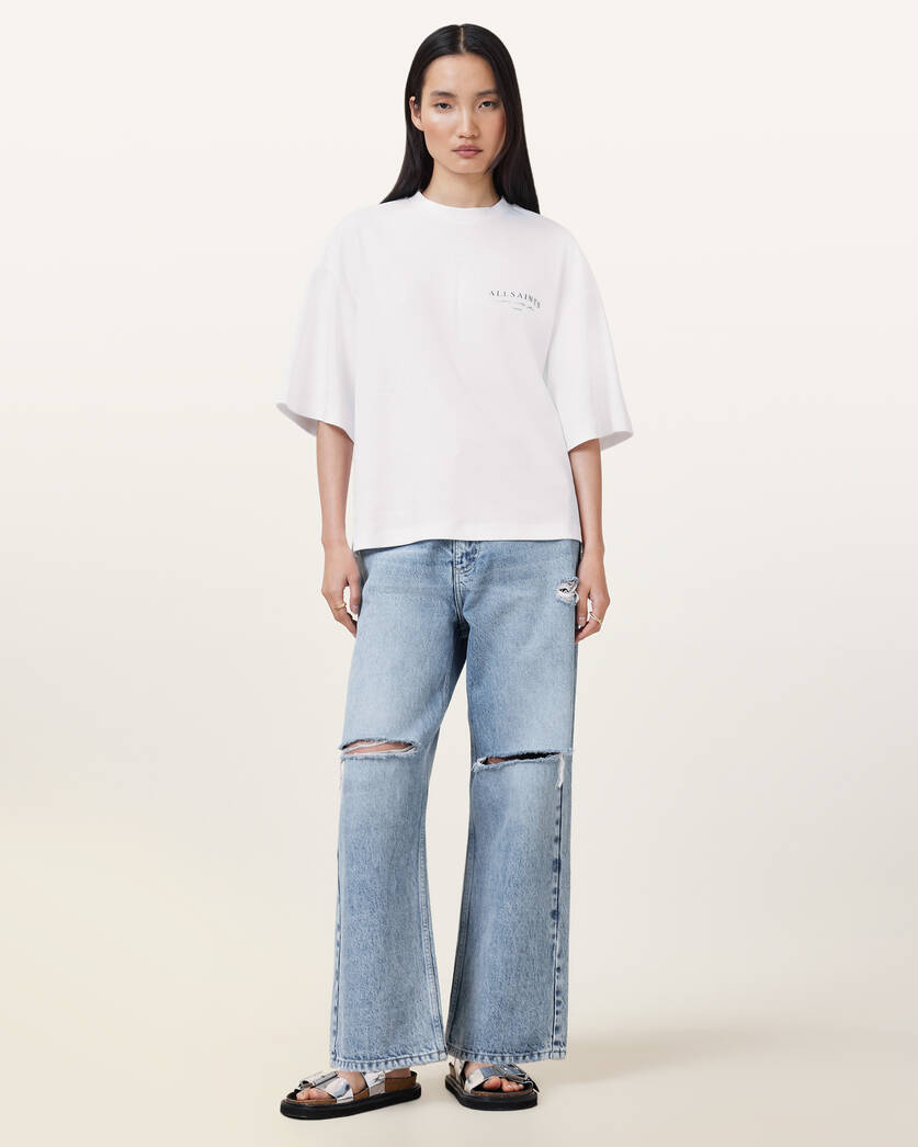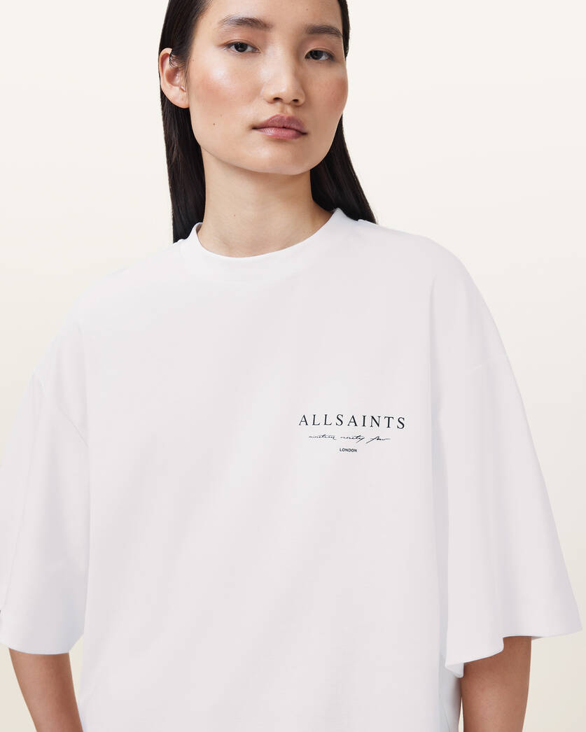 טי שירט קצרה לנשים מבית המותג אולסיינטס. בגזרת אוברסייז, עם מפתח עגול, שרוולים קצרים, בשילוב לוגו המותג בצד החזה ובגב.