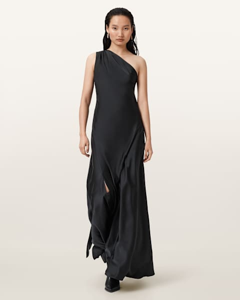 אלגנטית ומלאת נוכחות בעיצוב א-סימטרי עם כתף אחת פתוחה וקשר אחורי עדין.