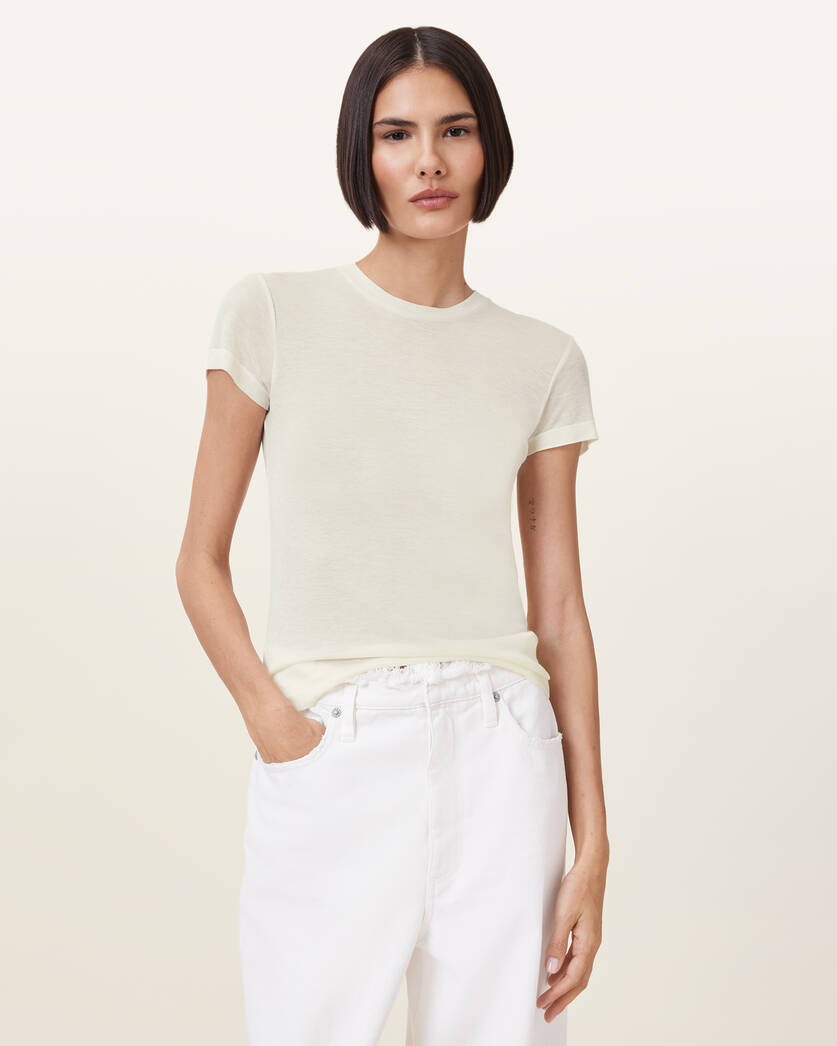 טי שירט קצרה שקפקפה לנשים מבית המותג אולסיינטס. בגזרה צמודה, אך נושמת. עם מפתח עגול ושרוולים קצרים.