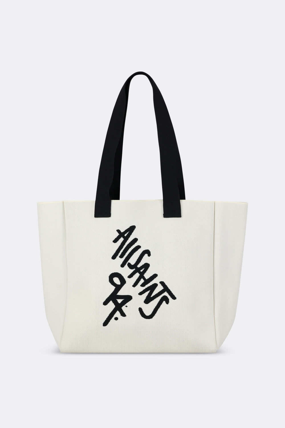 תיק קנבס עם ידיות ארוכות לנשיאה נוחה וגרפיקה בולטת של המותג בחזית בסגנון ייחודי. מתאים לשימוש יומיומי ולאחסון פריטים חיוניים.