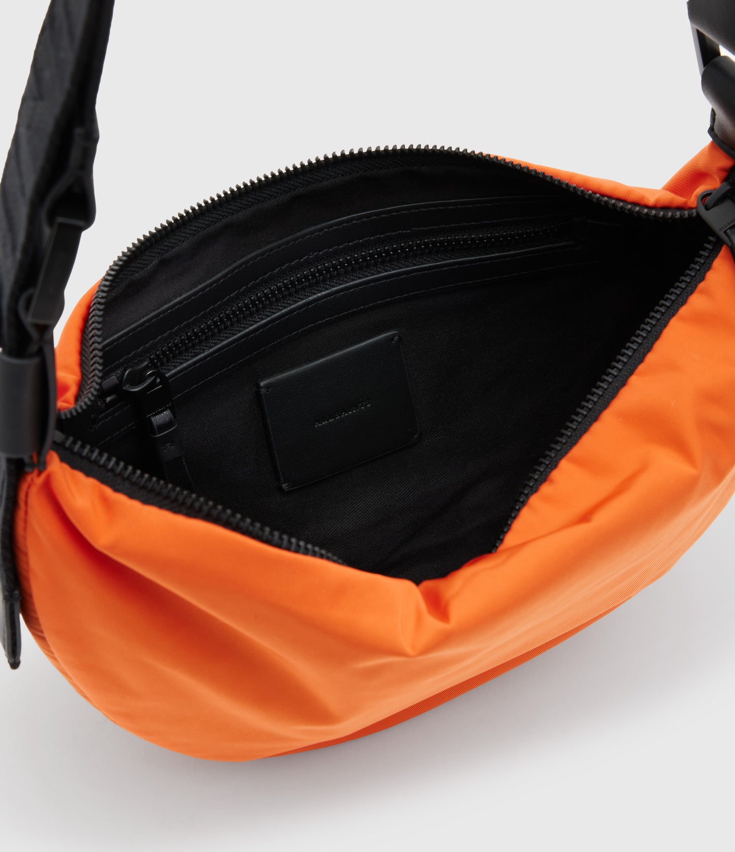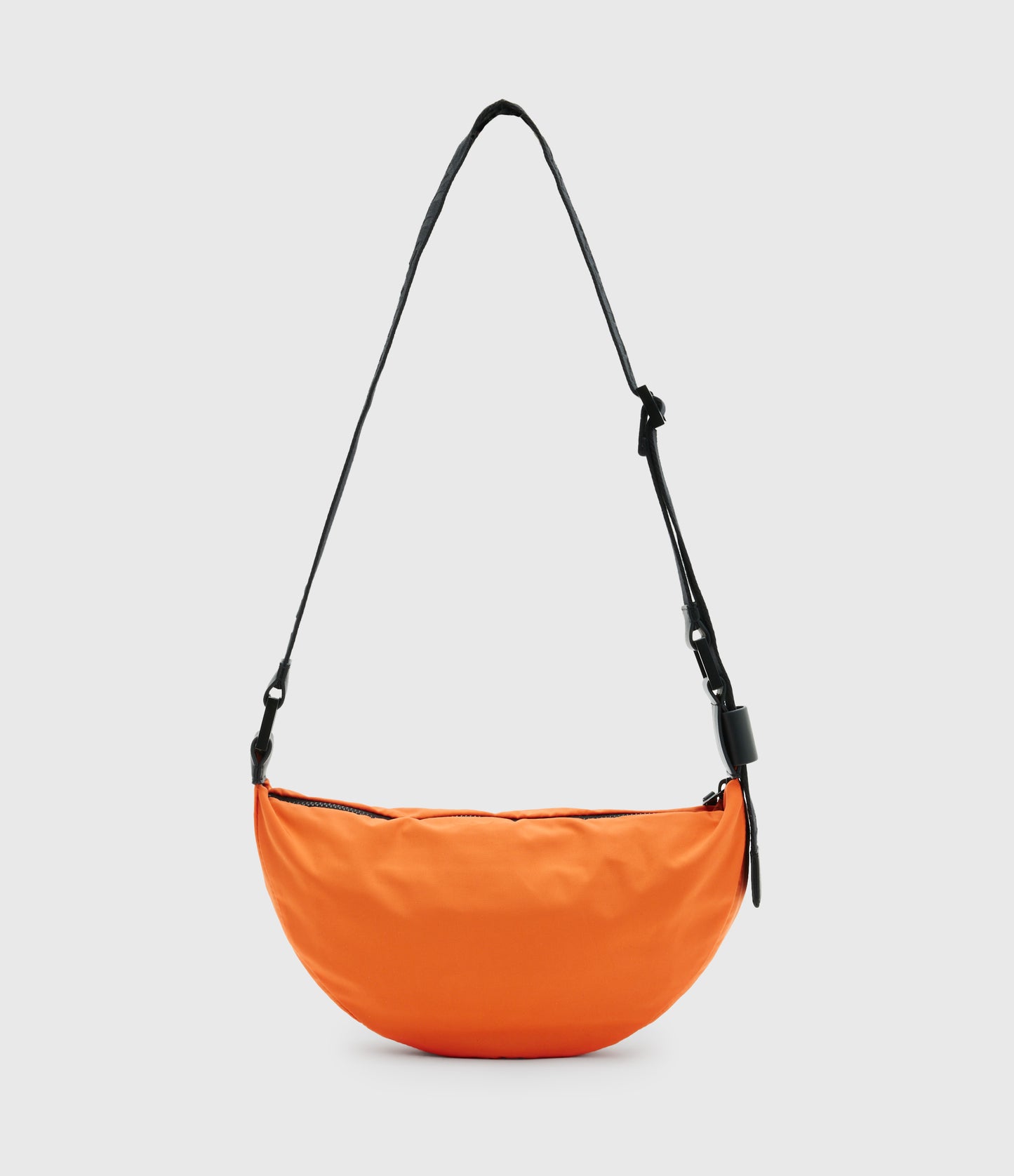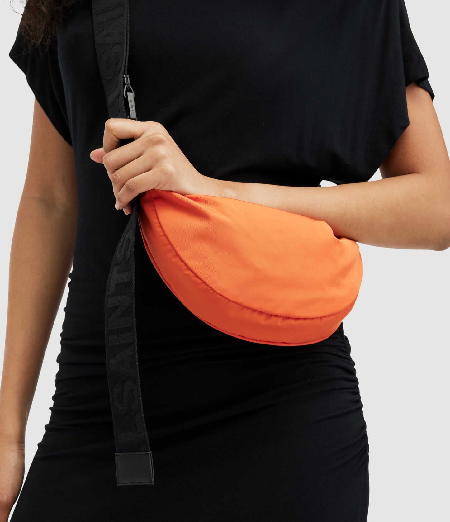 תיק צד לנשים מבית המותג אולסיינטס. בגזרת חצי עיגול עם רצועה עבה ומתכווננת, בסגירת רוכסן ובשילוב שני כיסים פנימיים. בצבע כתום קיצי.