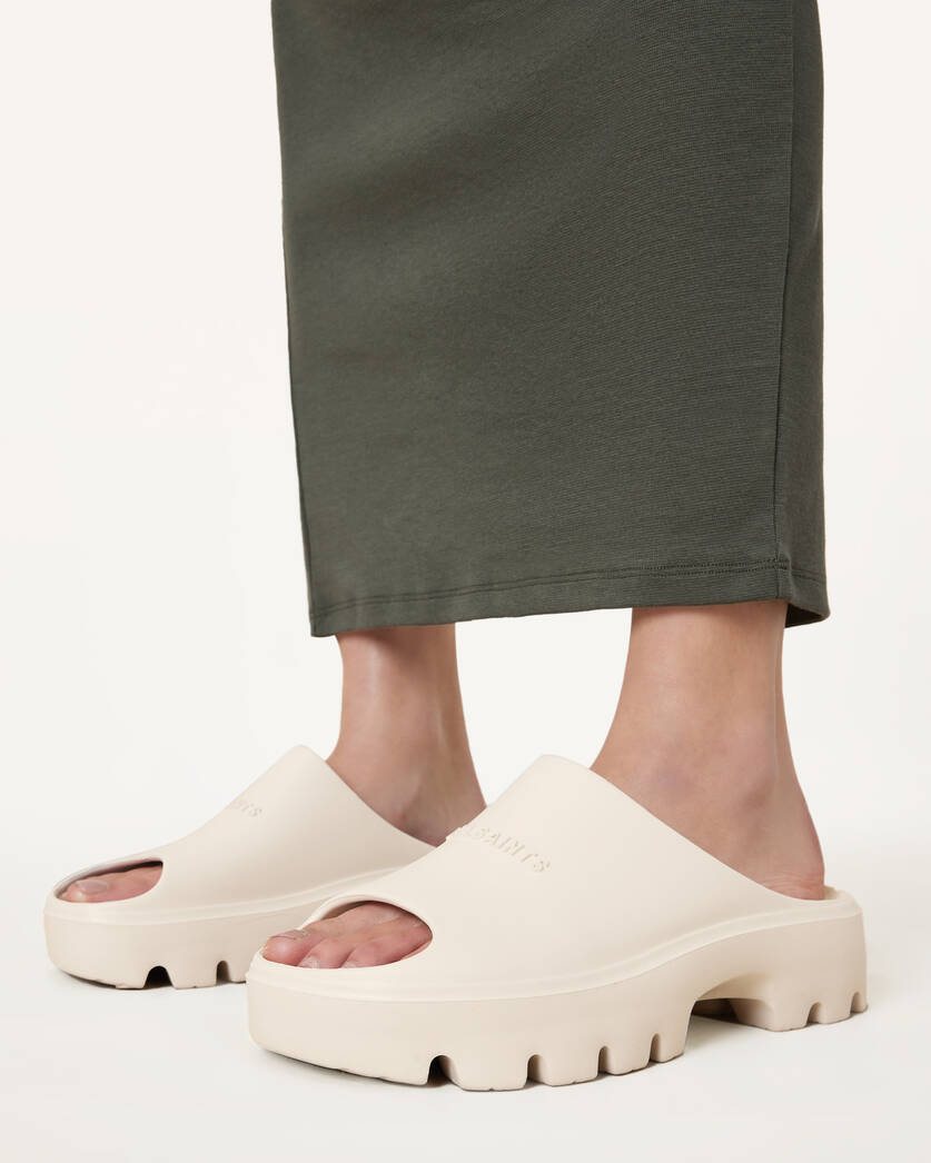 כפכפים לנשים מבית המותג אולסיינטס. סוליה בסיומת מעוגלת עם מעט פלטפורמה, ורצועה רחבה בחלק הקדמי.