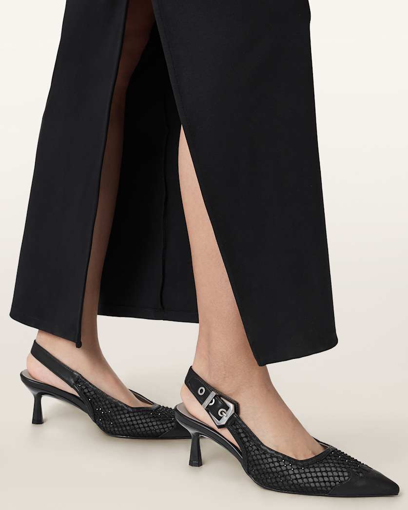 נעלי עקב לנשים מבית המותג אולסיינטס. שלבות אלגנטיות נשית עם טאץ’ מערבי עדין. הרשת המשושה עם הקריסטלים, האבזם הצדדי והגזרה הפתוחה יוצרים מראה מיוחד שקל להתאים גם לערב וגם ליום־יום.