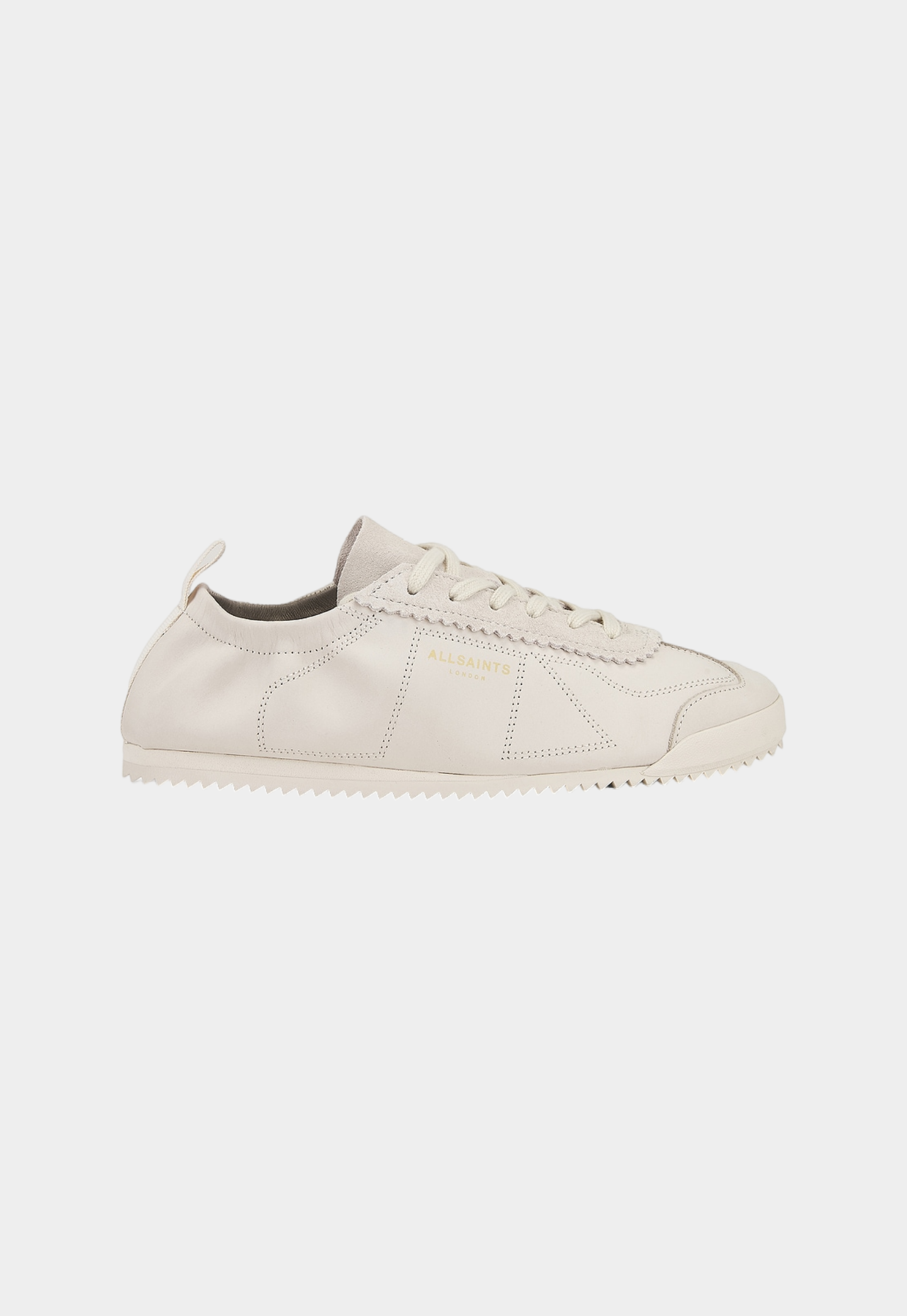 סניקרס עור לנשים מבית המותג אולסיינטס. בגוון לבן-גירי עם נטייה מעט בהירה יותר מהנראה בתמונה. שילוב מינימליסטי של עור עם טרימס זמש וסוליית גומי, לוגו המותג מודפס בצד, וגזרה נמוכה עם לולאת אחיזה מאחור לנעילה קלה.