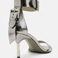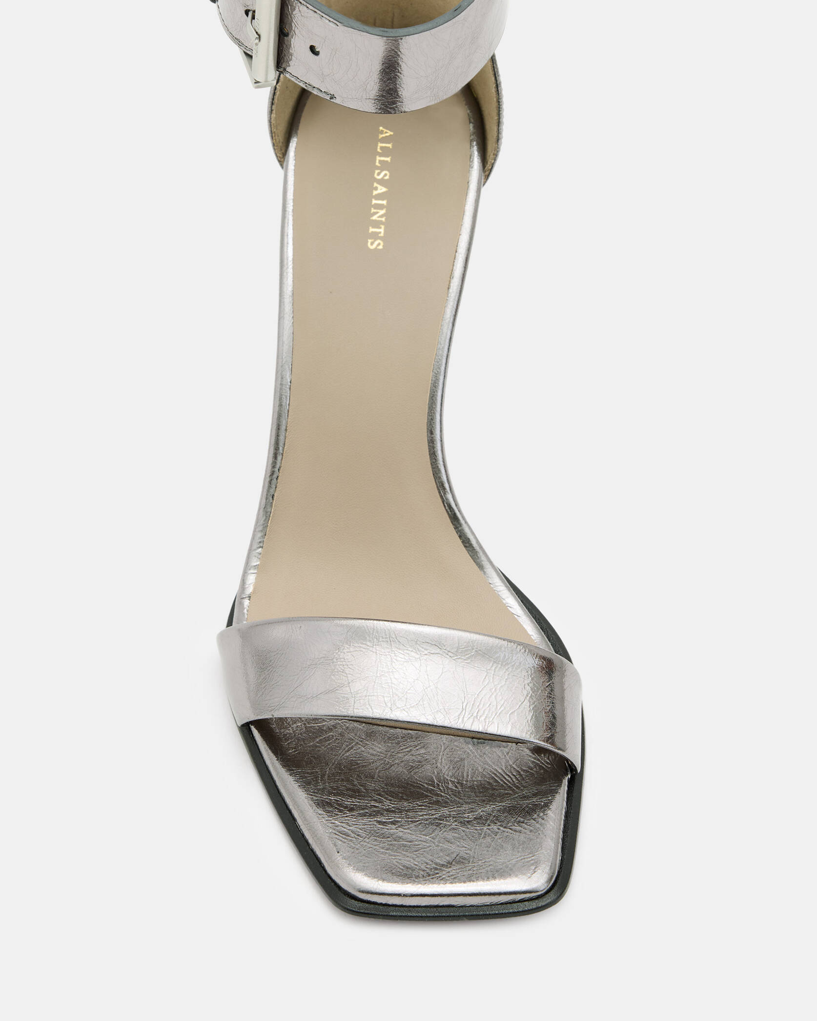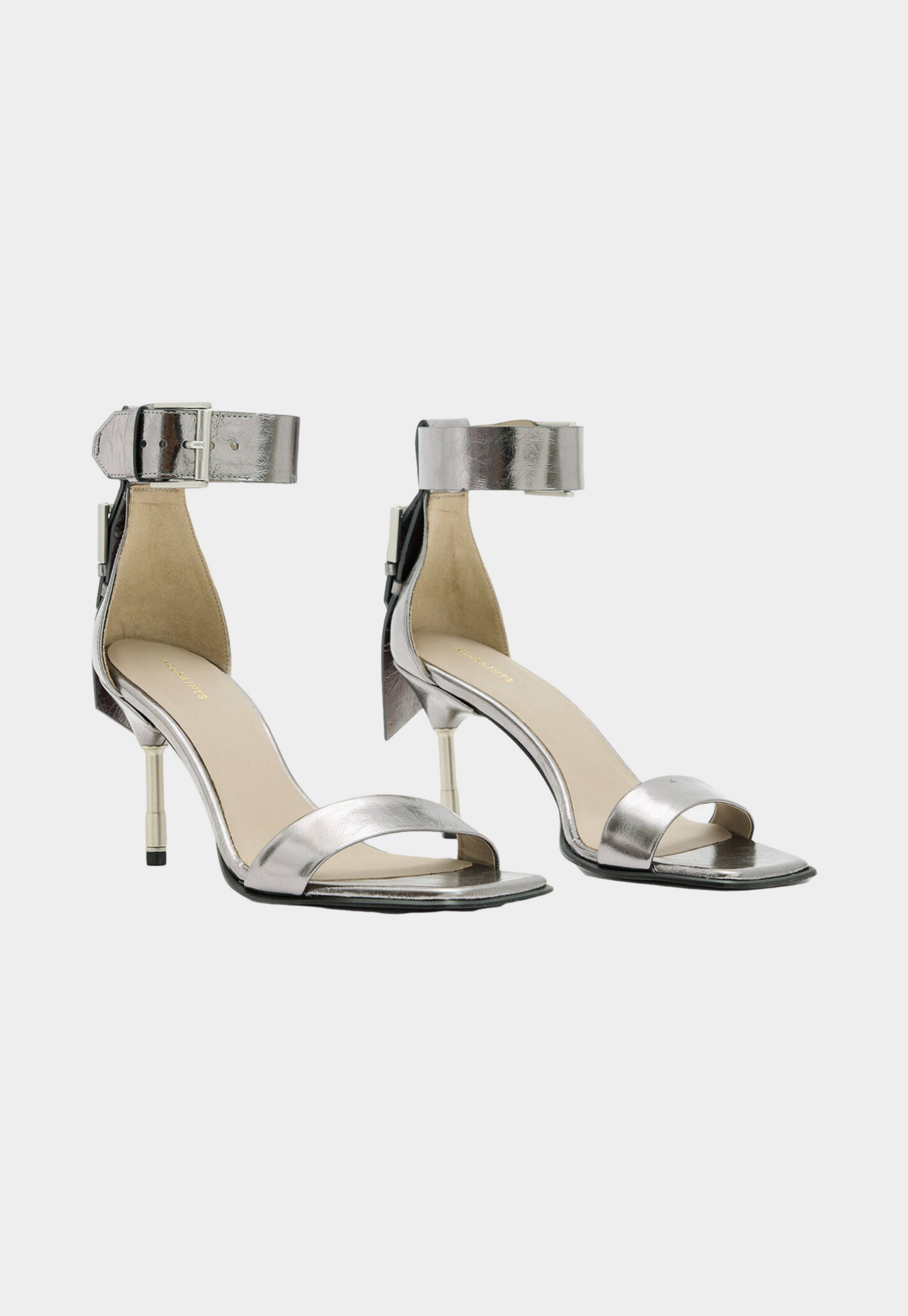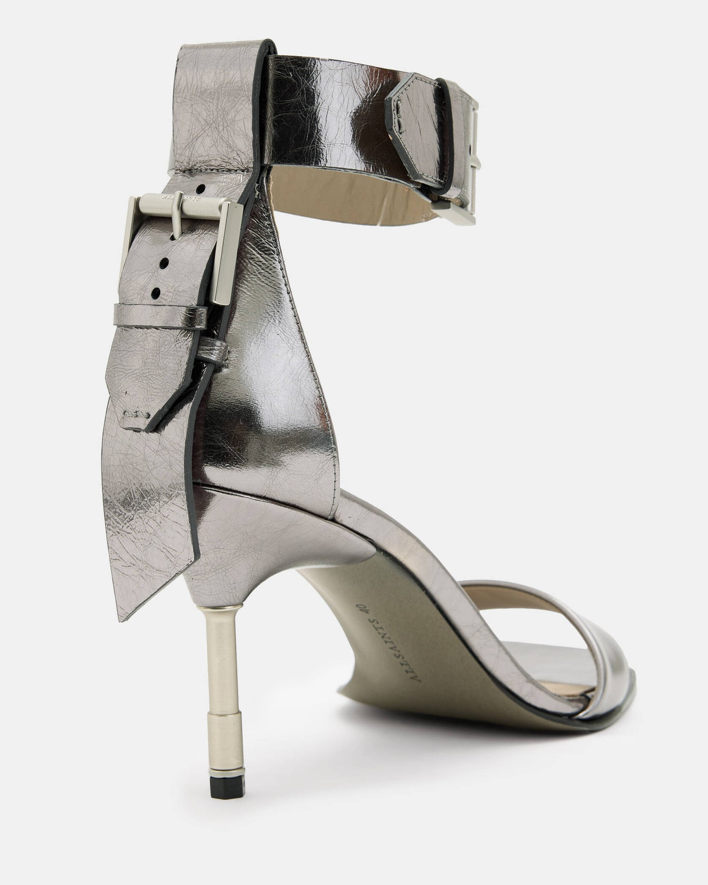 נעלי עקב מטאליים לנשים מבית המותג אולסיינטס. בגזרת שפיץ, עם עקב דק וגבוה.
