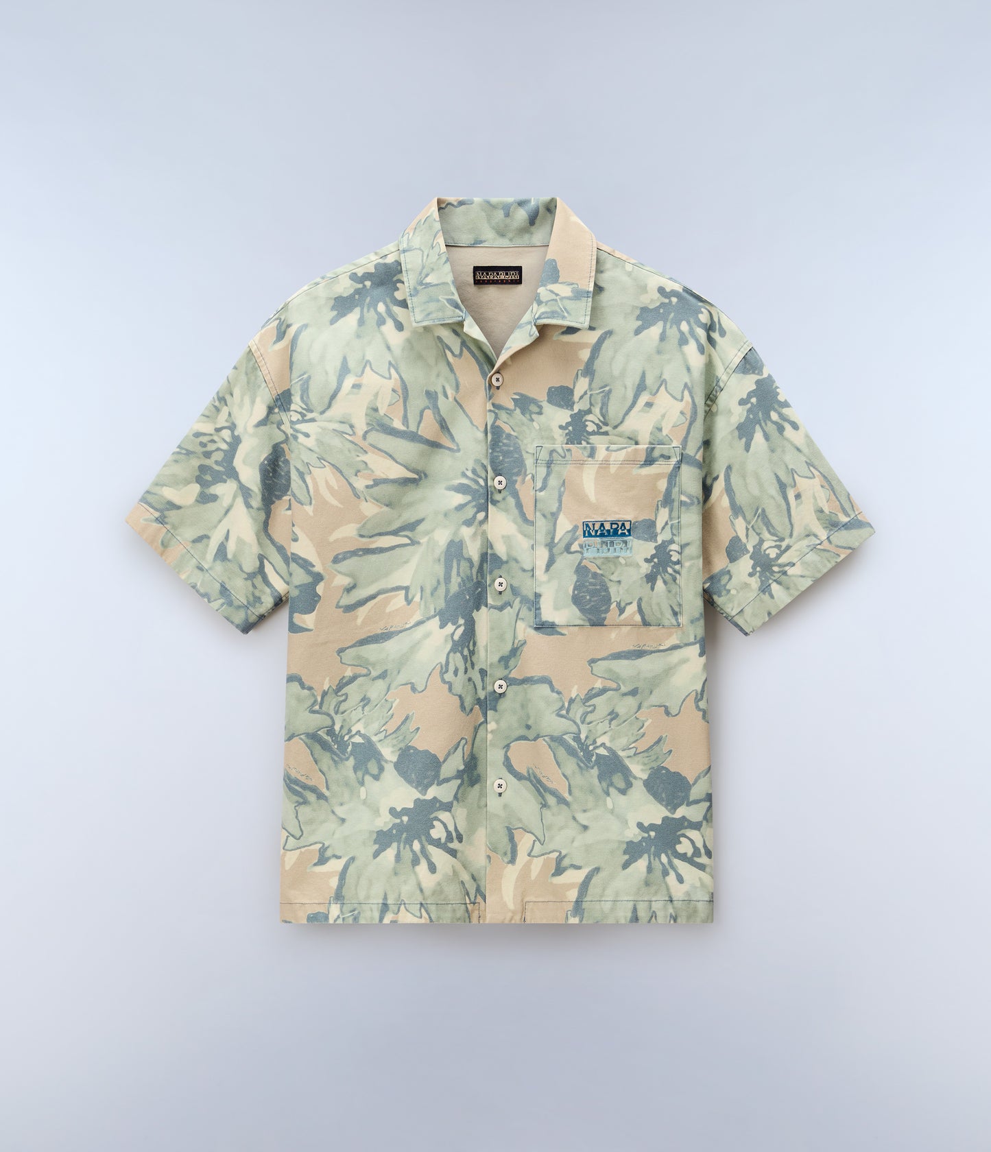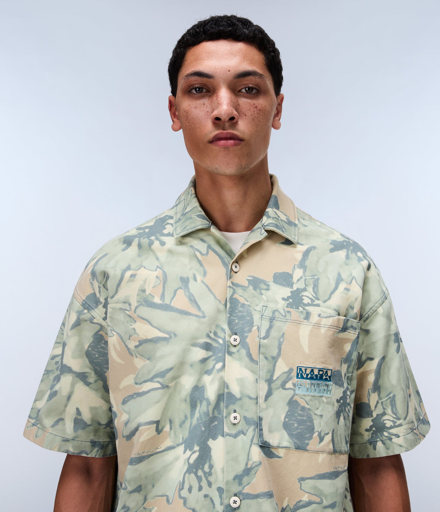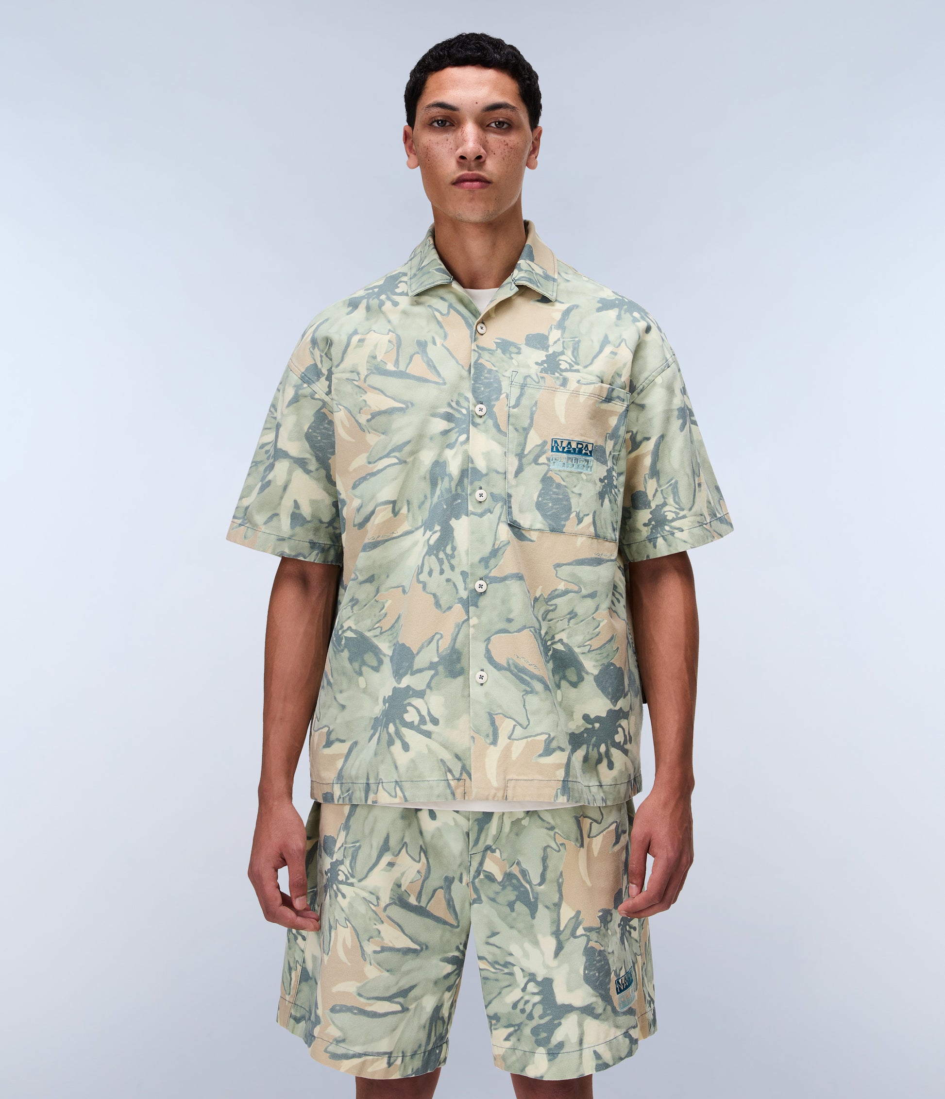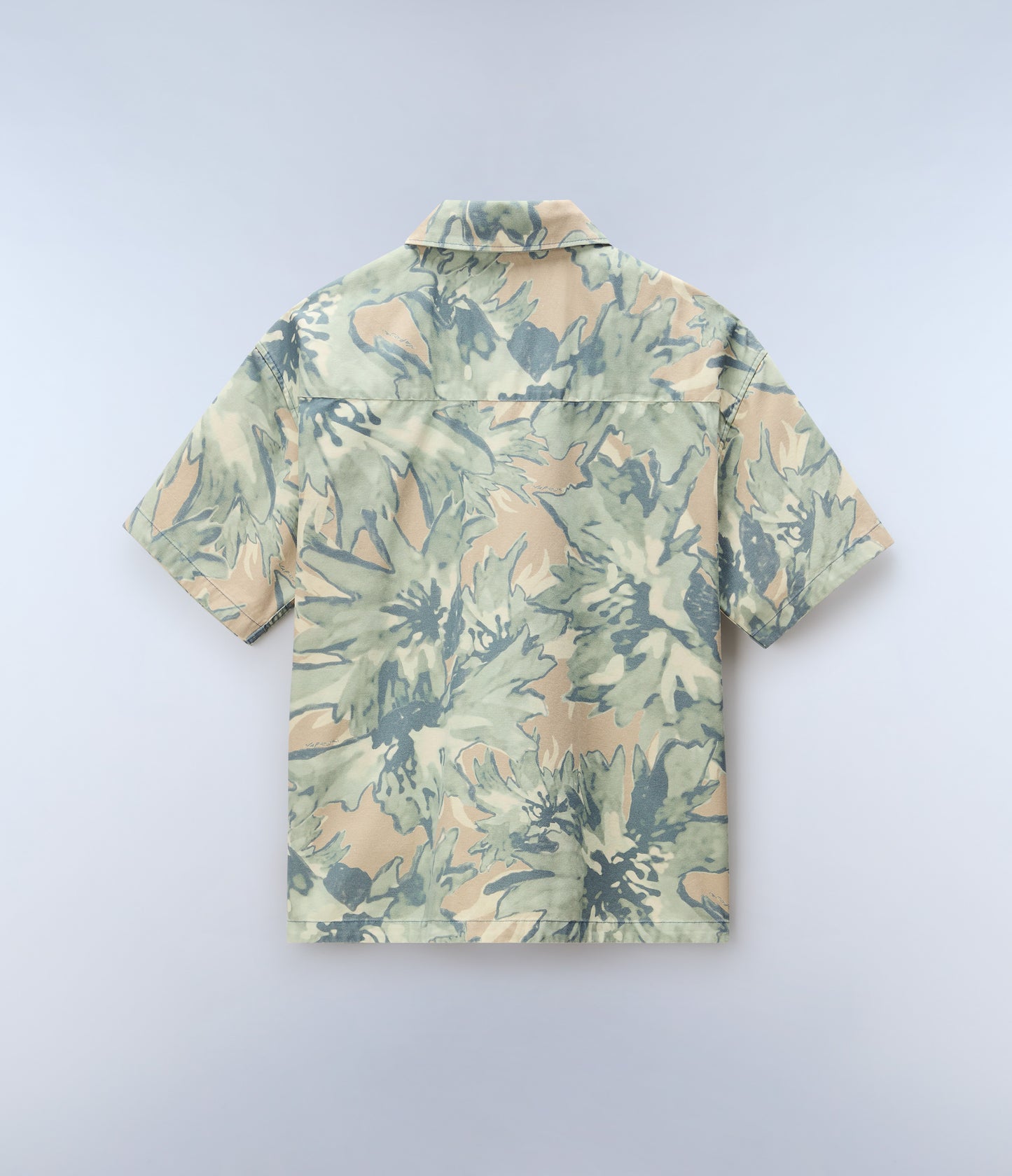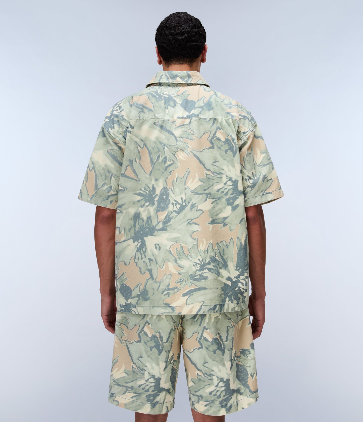 חולצה מכופתרת קצרה לגברים מבית המותג נאפפירי. בגזרה משוחררת, עם צווארון קלאסי, כפתורי סגירה לכל האורך, שרוולים קצרים, כיס בחזה והדפס פרחוני אול אובר. בשילוב לוגו המותג בצד החזה.