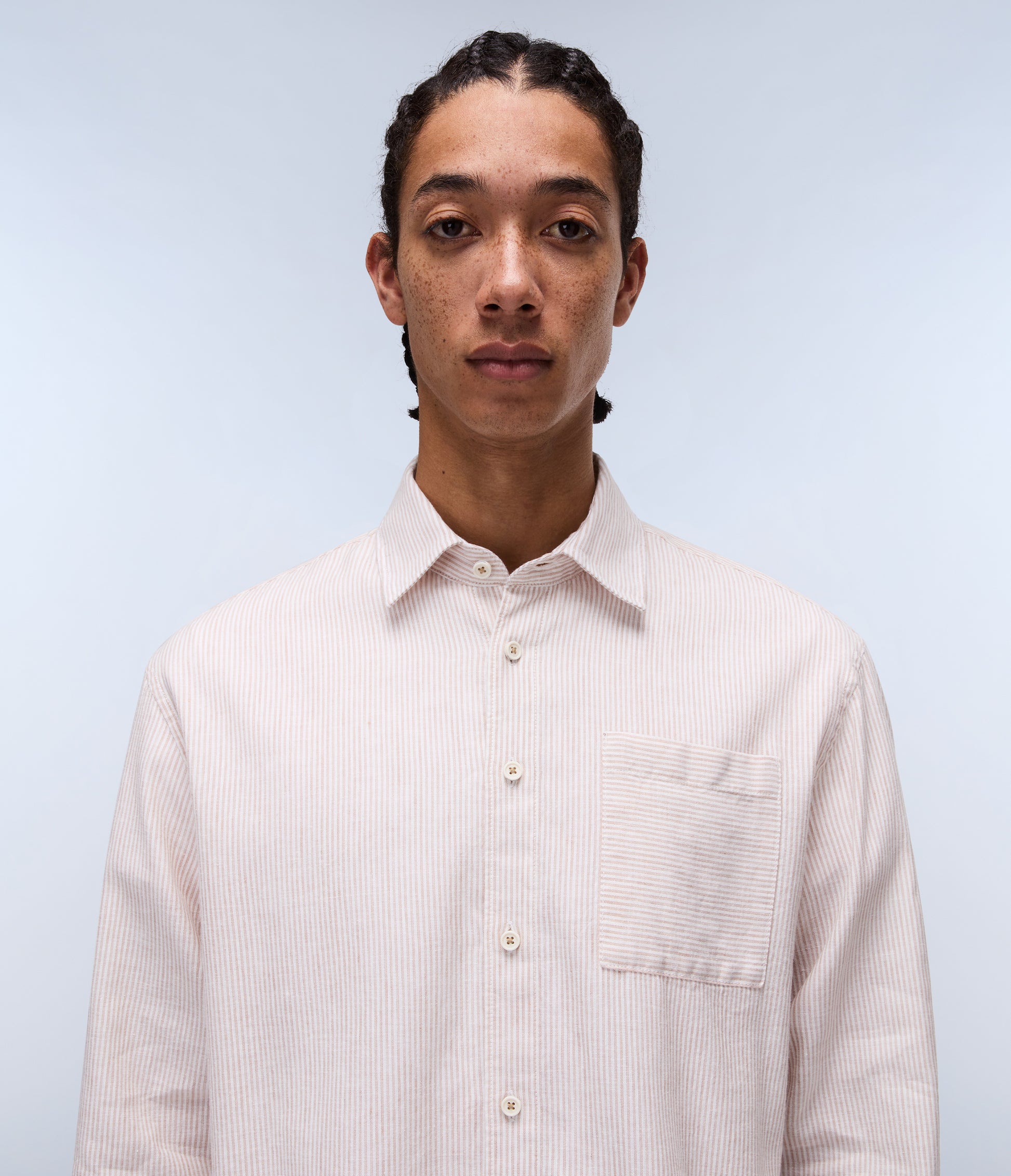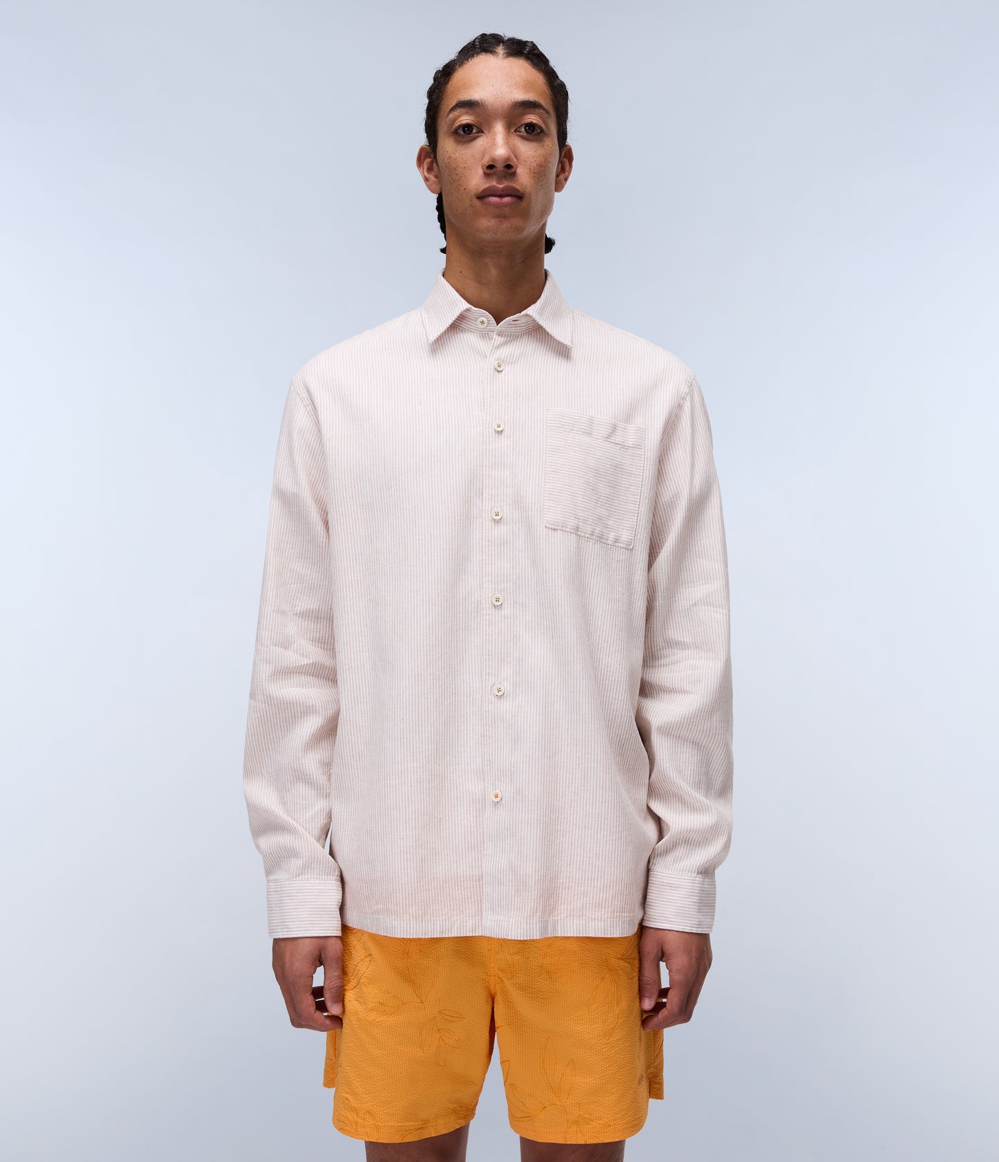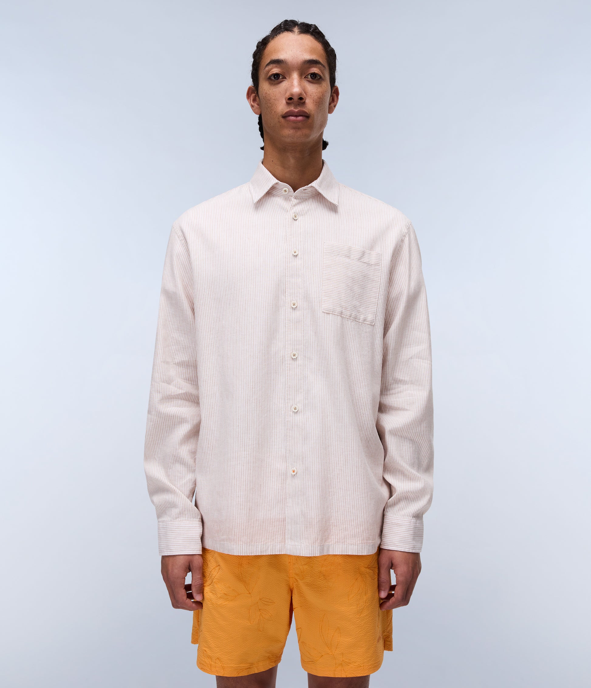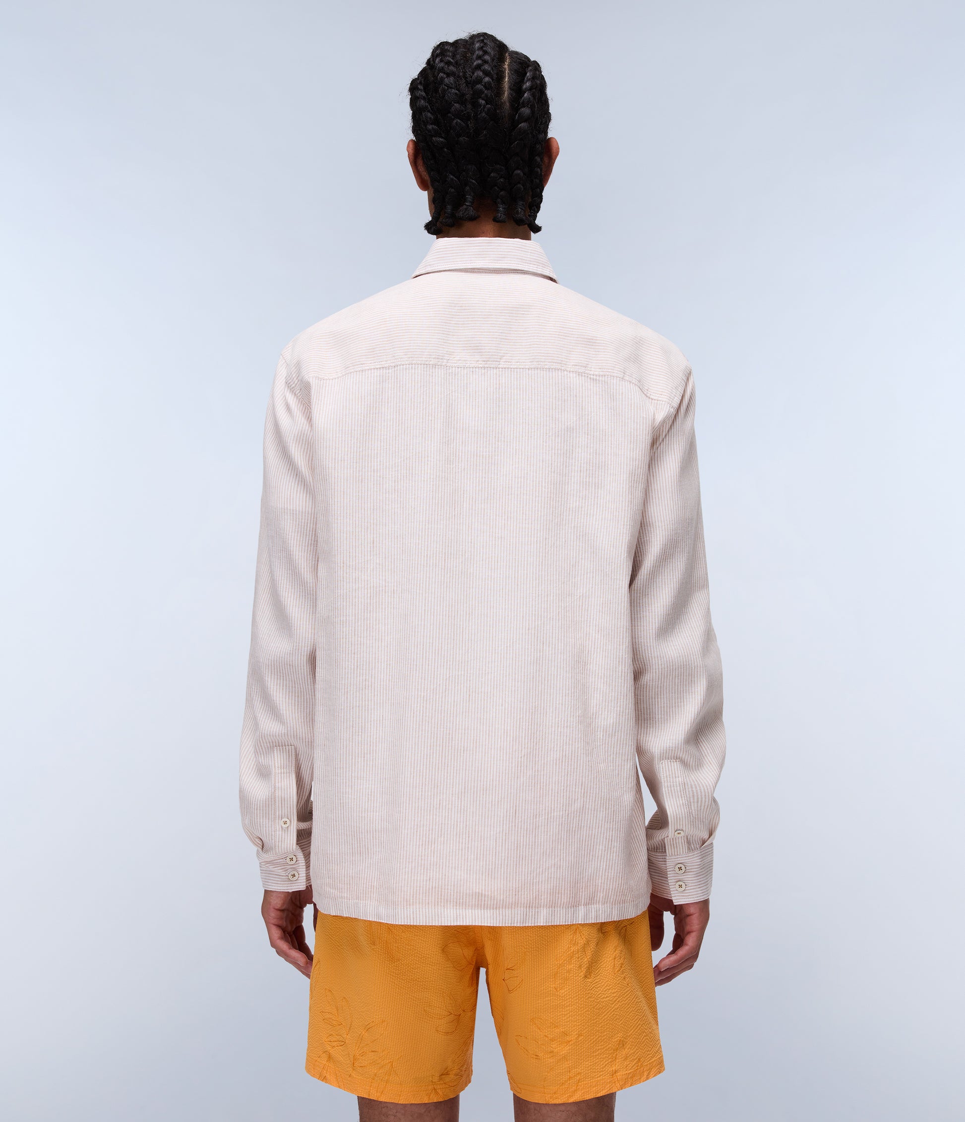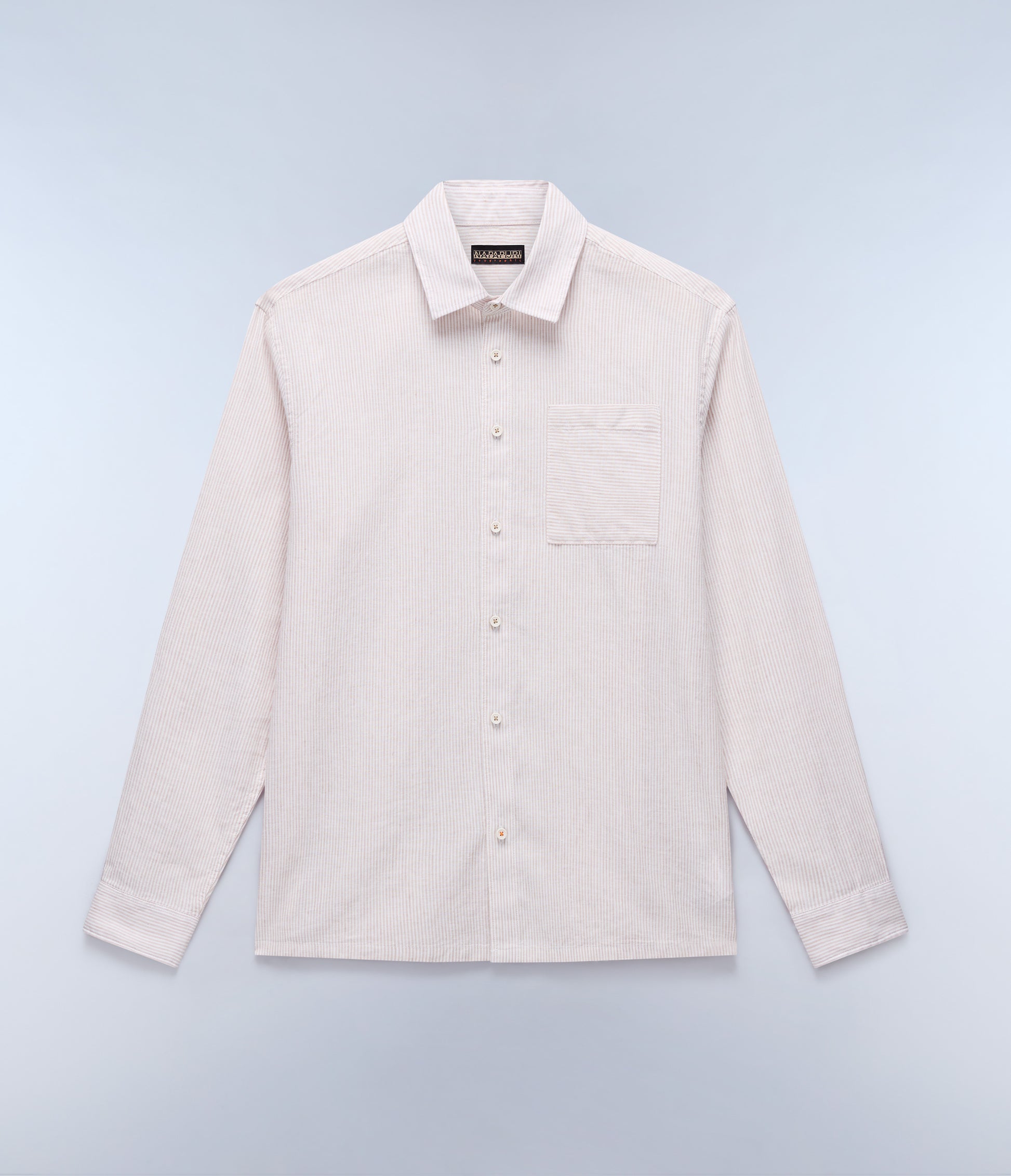 חולצת פסים מכופתרת לגברים מבית המותג נאפפירי. בגזרה קלאסית, עם כפתורי סגירה לכל האורך, צווארון קלאסי, שרוולים ארוכים וכיס בחזה.