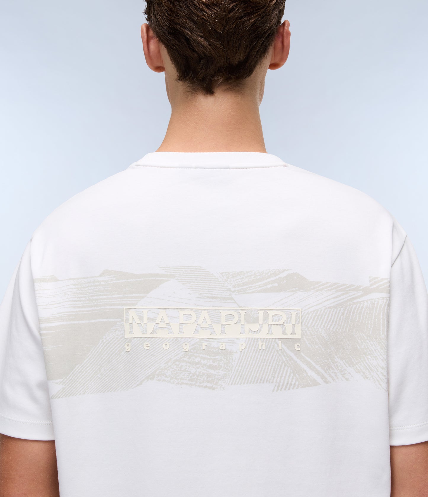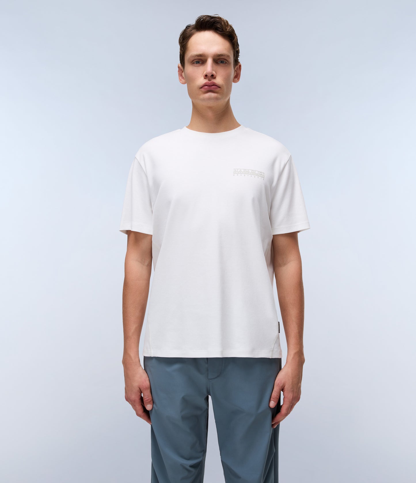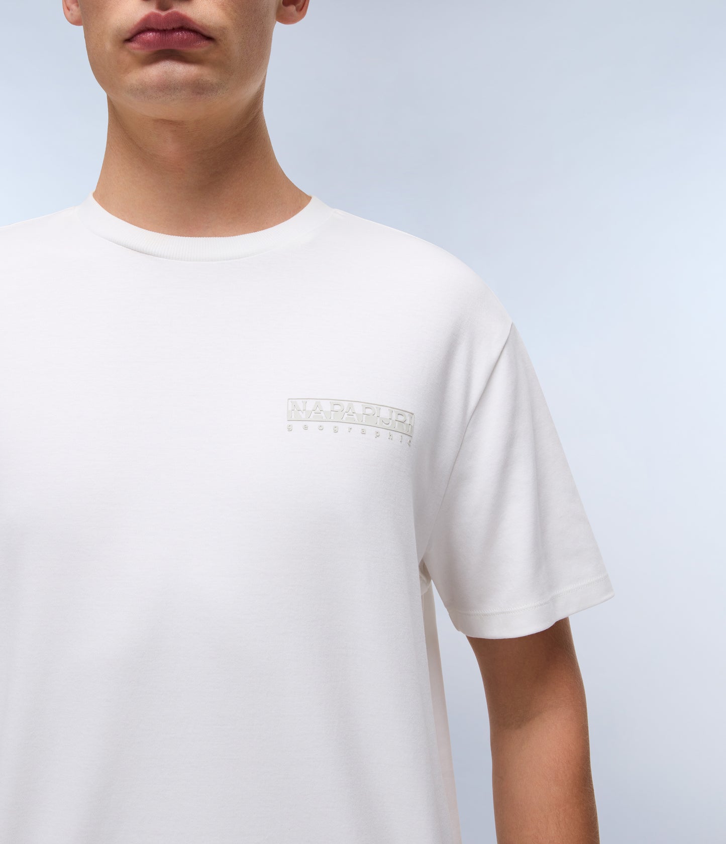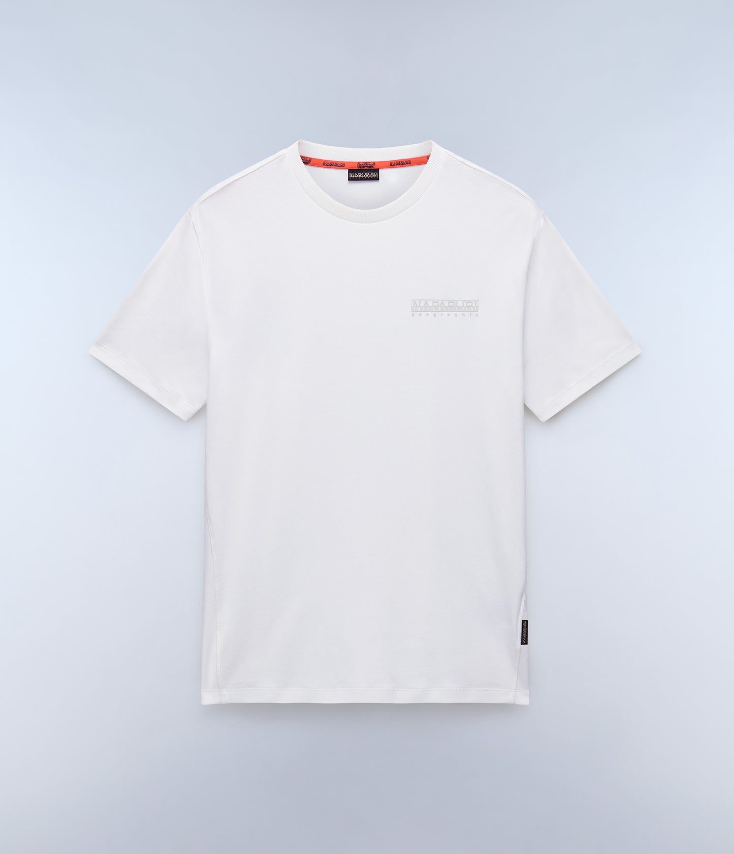 טי שירט קצרה לגברים מבית המותג נאפפירי. גזרה משוחררת עם מפתח עגול ושרוולים קצרים. הדפס לוגו המותג בצד החזה ובגב.