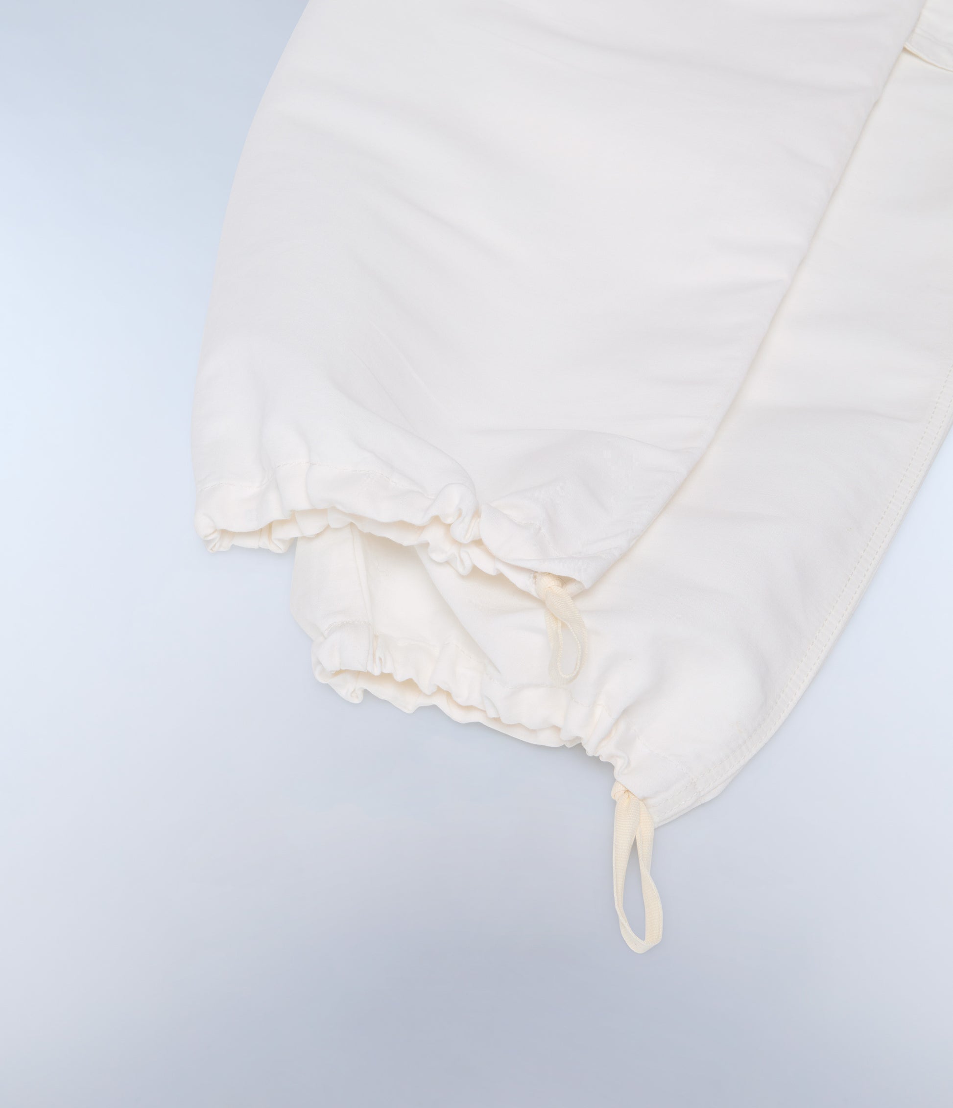 בגזרה מתרחבת, עם רצועת קשירה, שני כיסים קדמיים ואחוריים ורצועת גומי בסיומת המכנסיים.