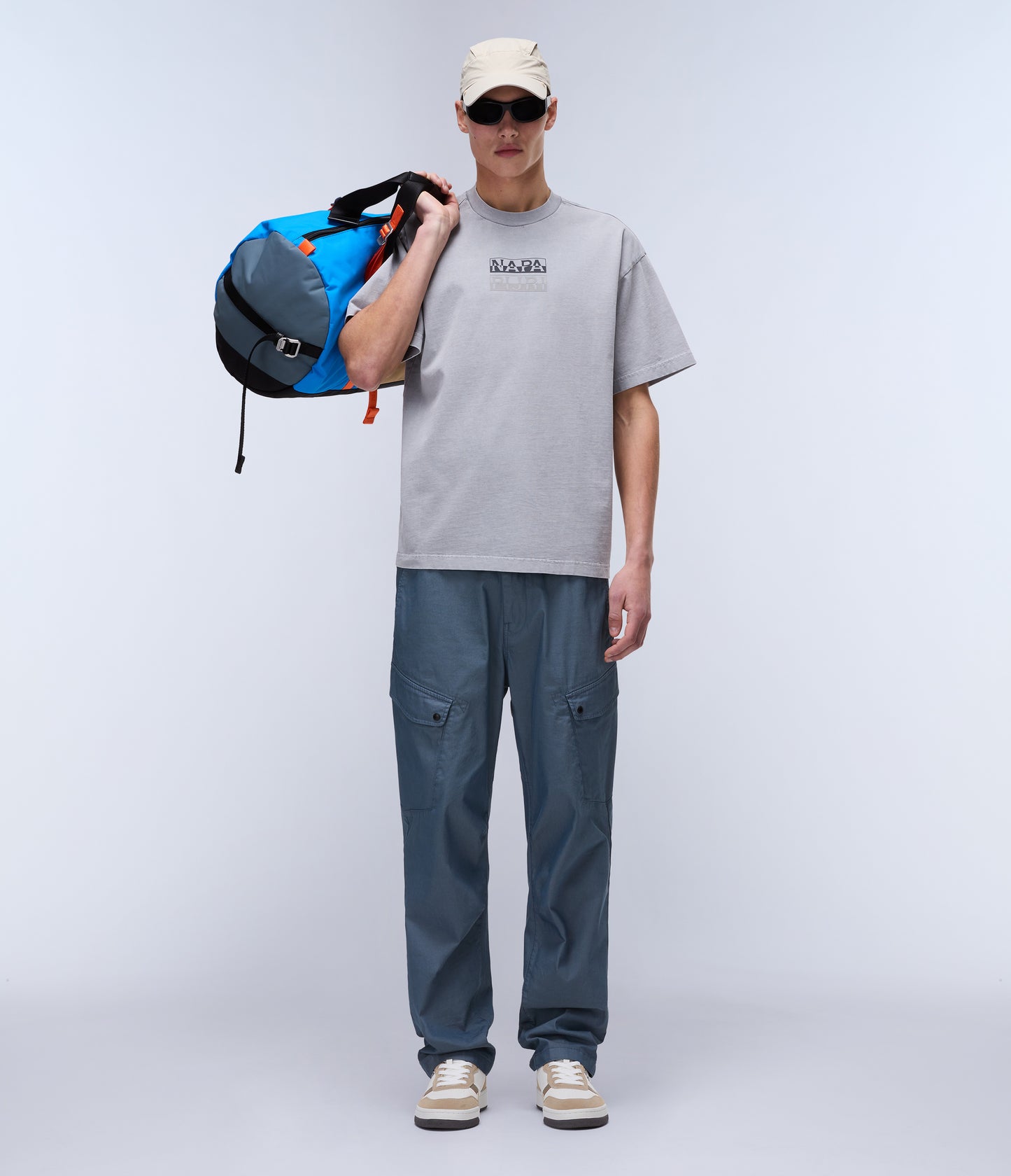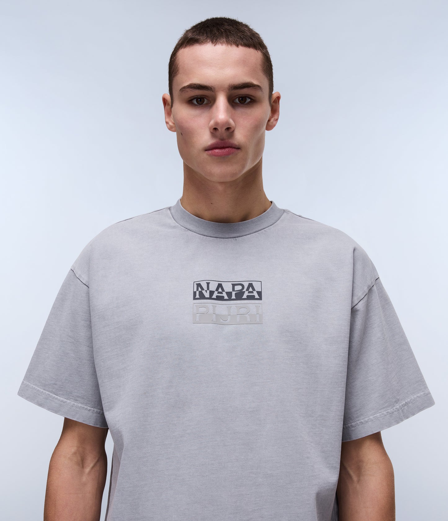 טי שירט קצרה לגברים מבית המותג נאפפירי. גזרה משוחררת עם מפתח עגול ושרוולים קצרים. הדפס לוגו המותג בחזית. החולצה עשויה מ-100% כותנה