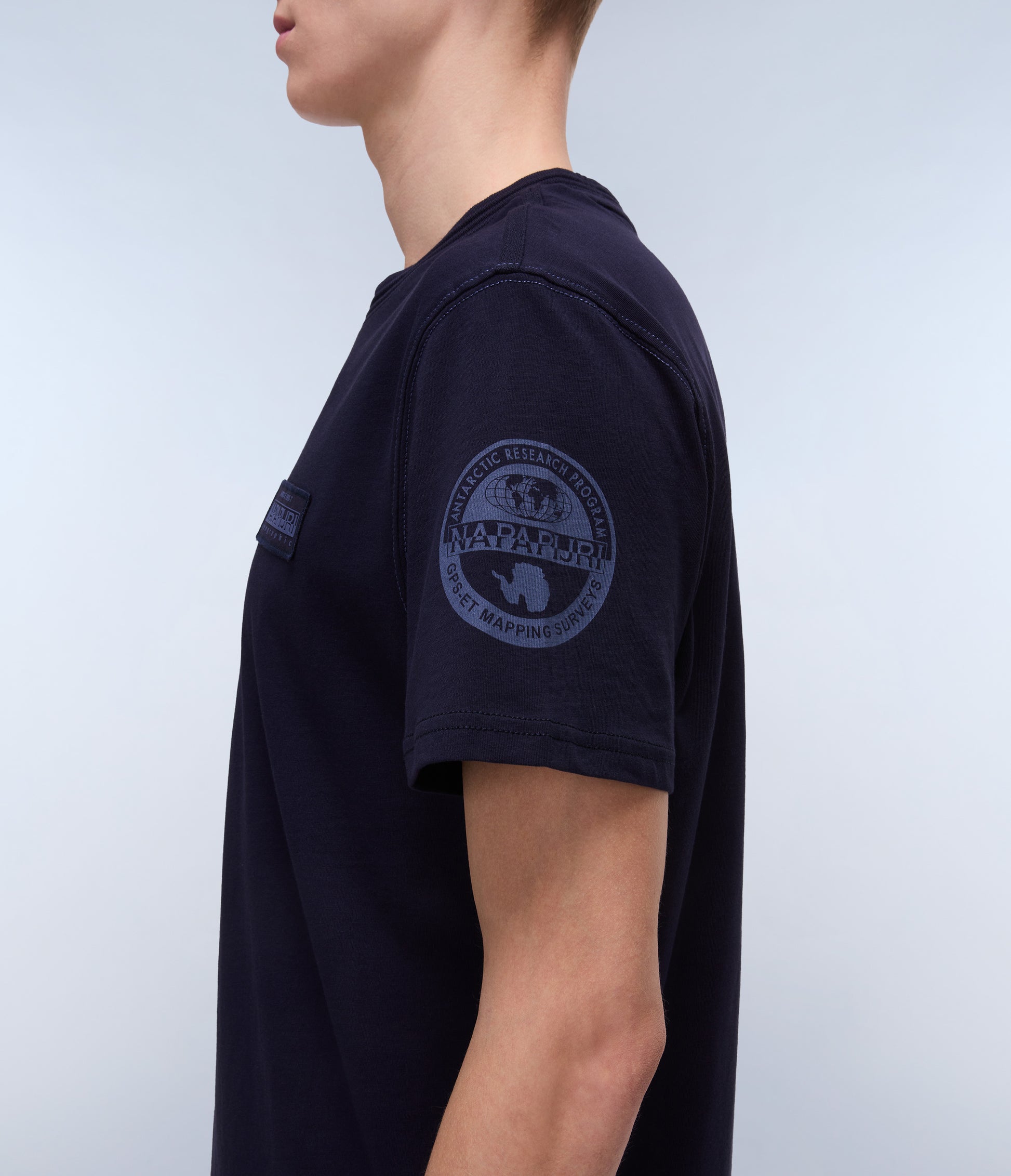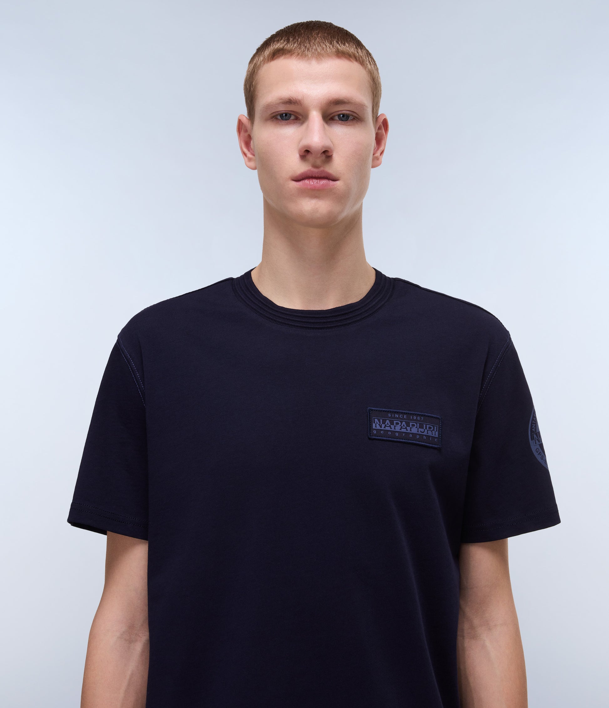 טי שירט קצרה לגברים מבית המותג נאפפירי. בגזרה קלאסית, עם מפתח עגול, שרוולים קצרים, בשילוב לוגו המותג בצד החזה ובכתף.