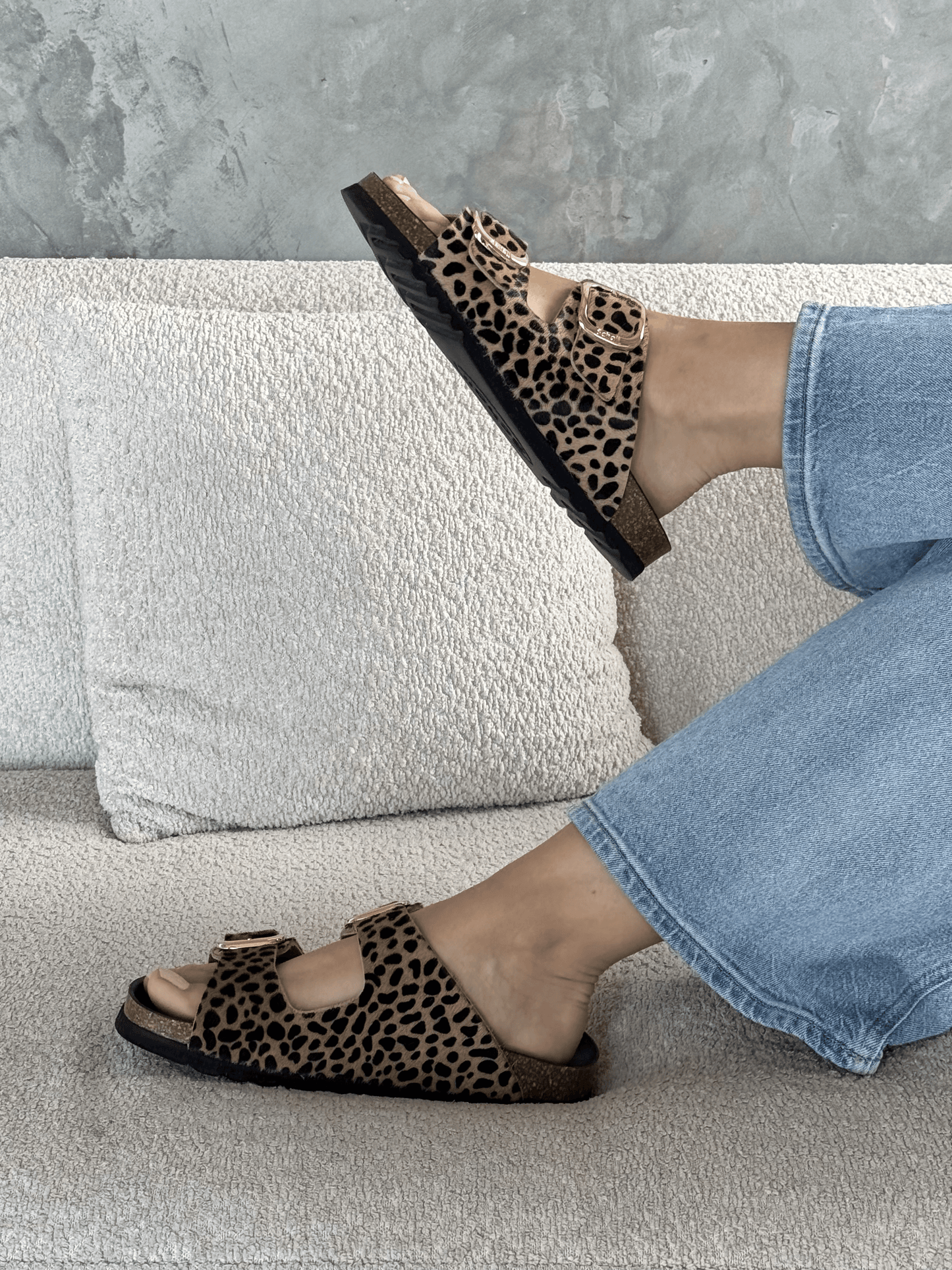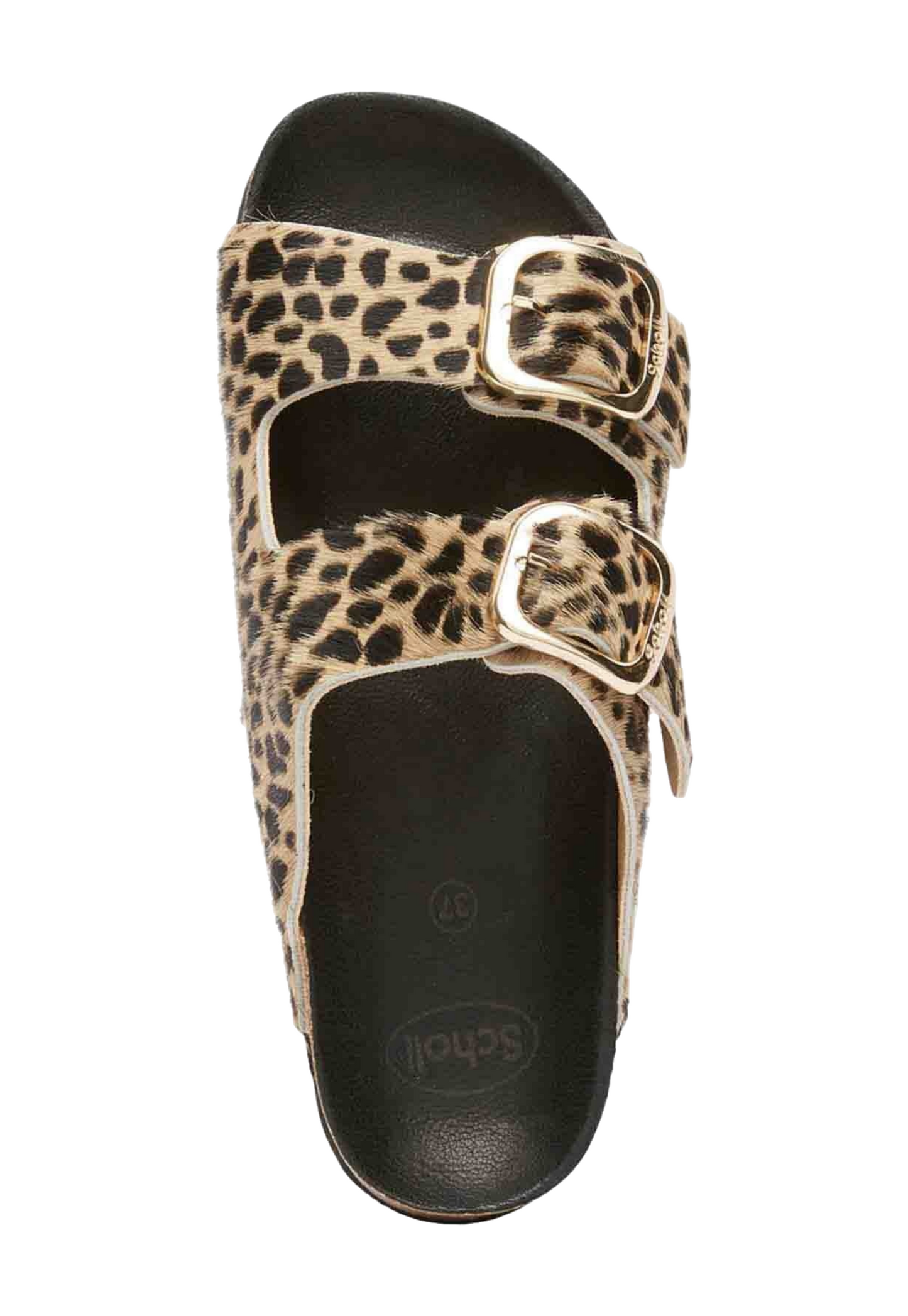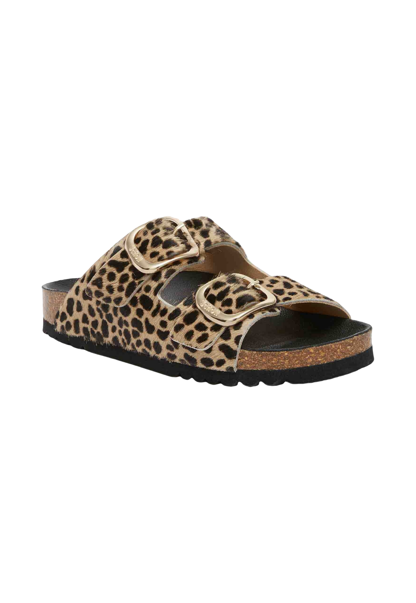 כפכפים לנשים מבית המותג שול. בגזרה קלאסית עם שתי רצועות רחבות בשילוב אבזם, עם סוליה משוננת. בהדפס מנומר