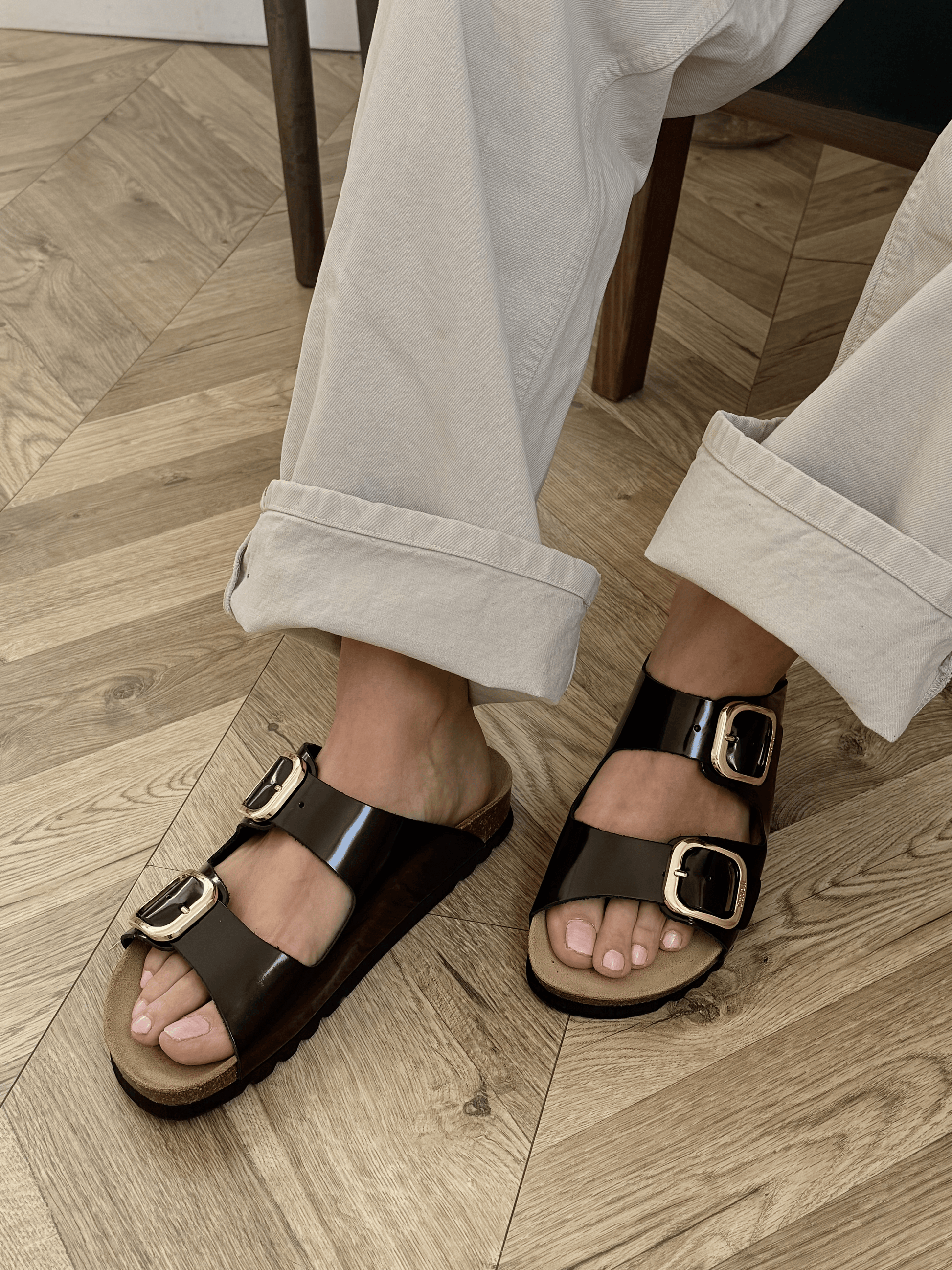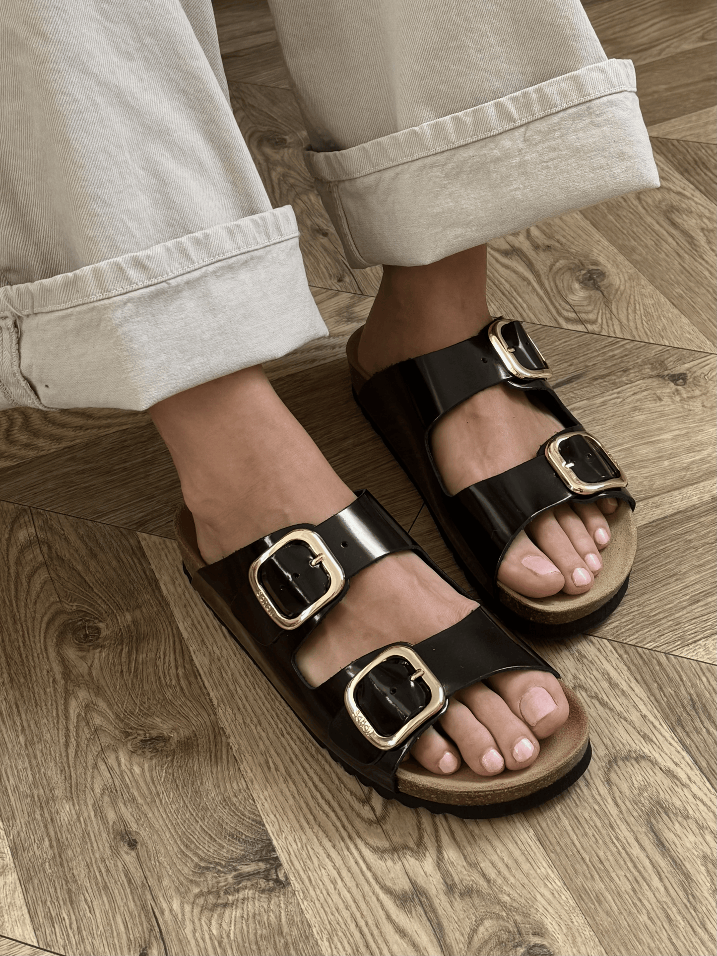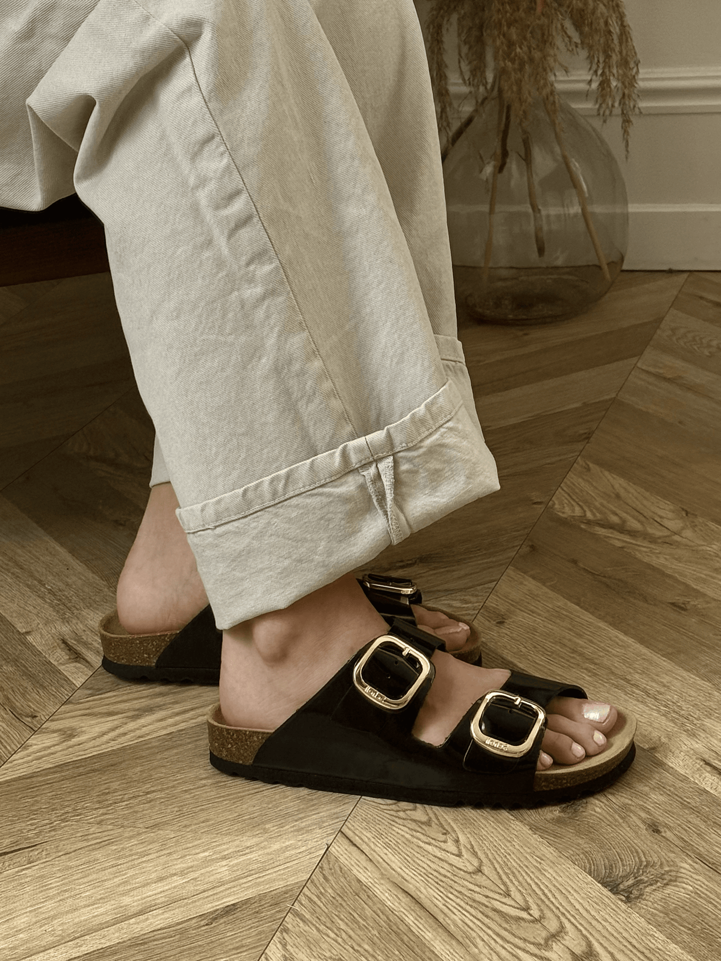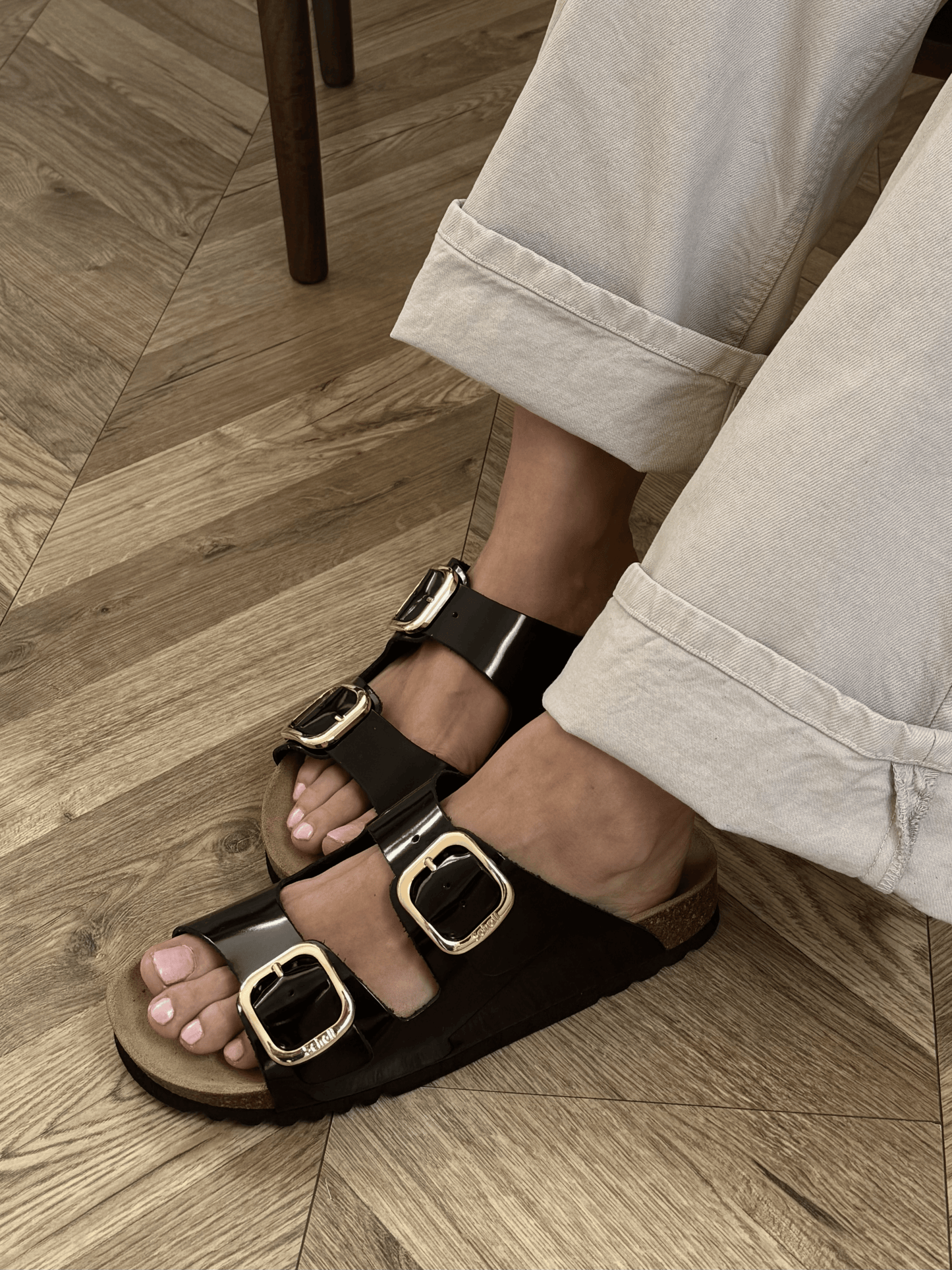 כפכפים לנשים מבית המותג שול. בגזרה קלאסית עם שתי רצועות רחבות בשילוב אבזם, עם סוליה משוננת.