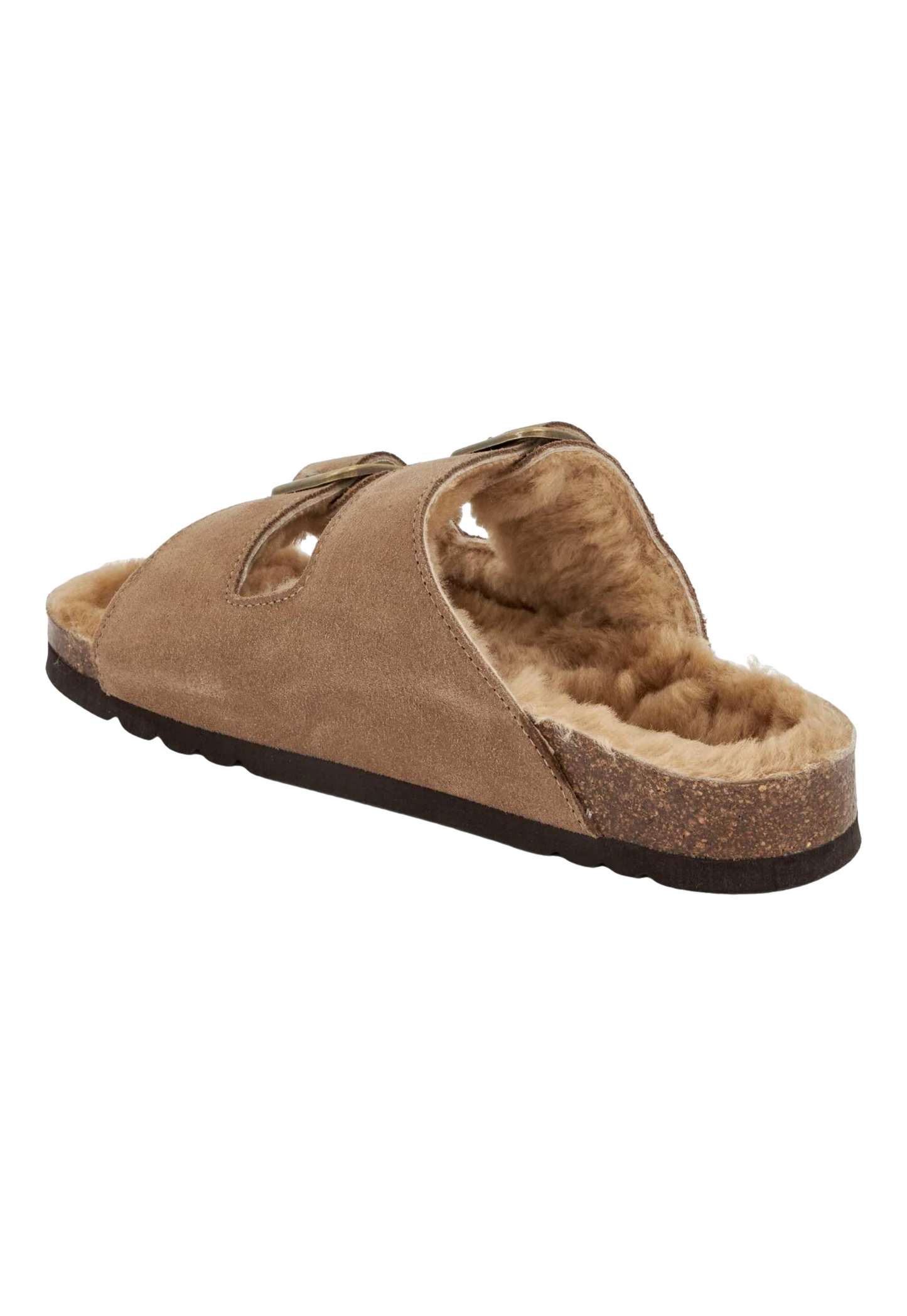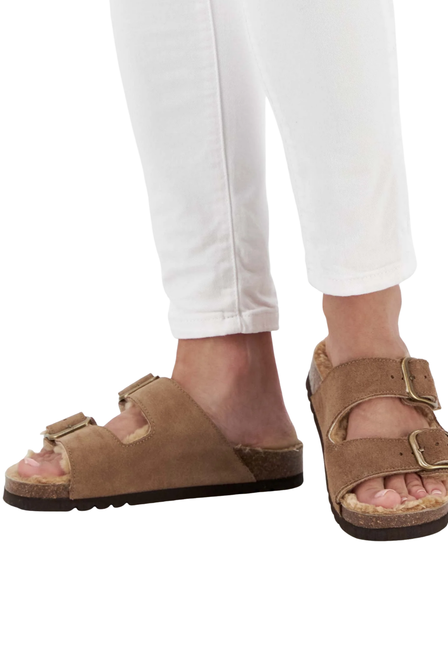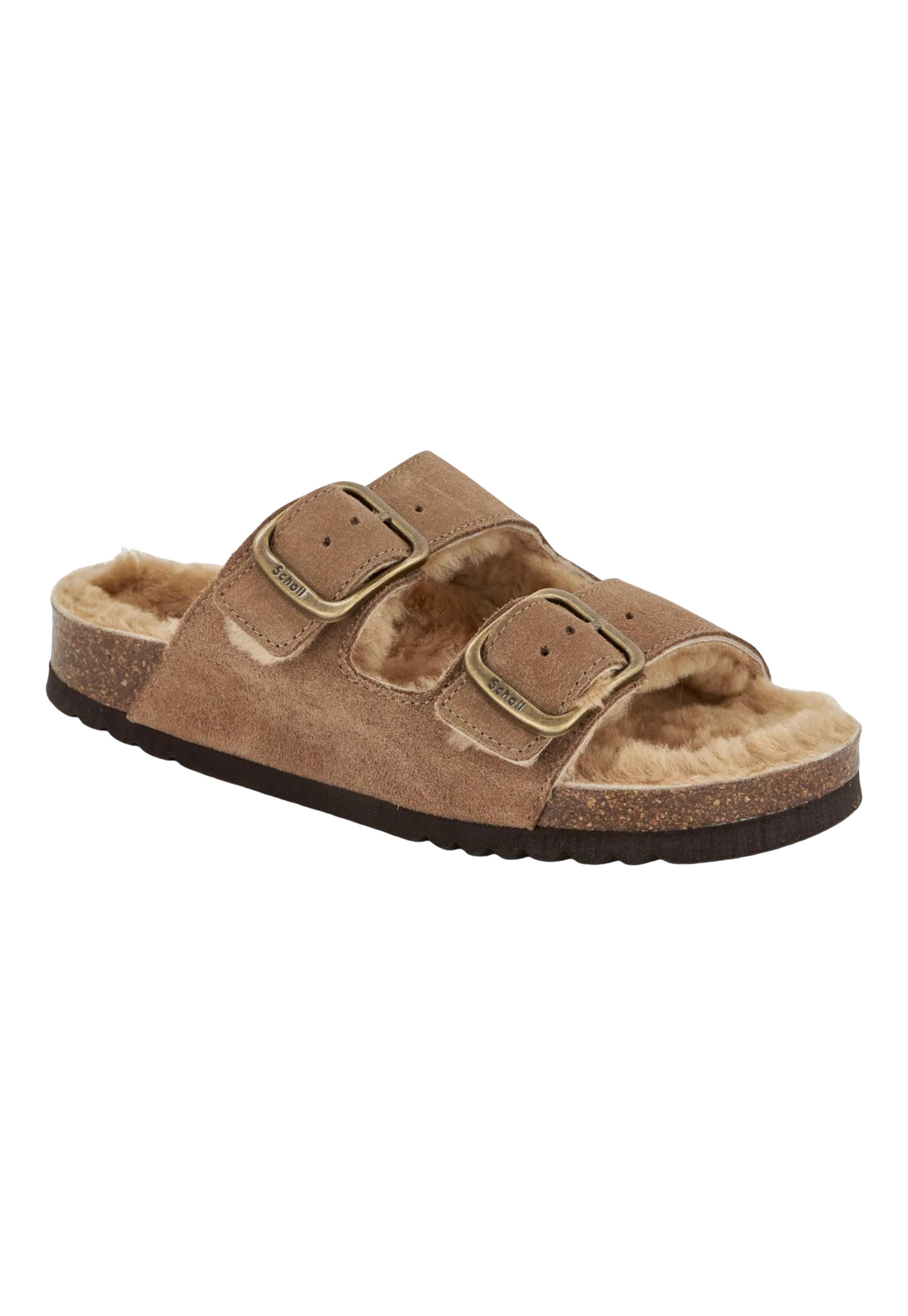 כפכפים לנשים מבית המותג שול. בגזרת שתי רצועות מתכווננות בסגנון קלאסי מזמש, בשילוב פרווה בחלק הפנימי.