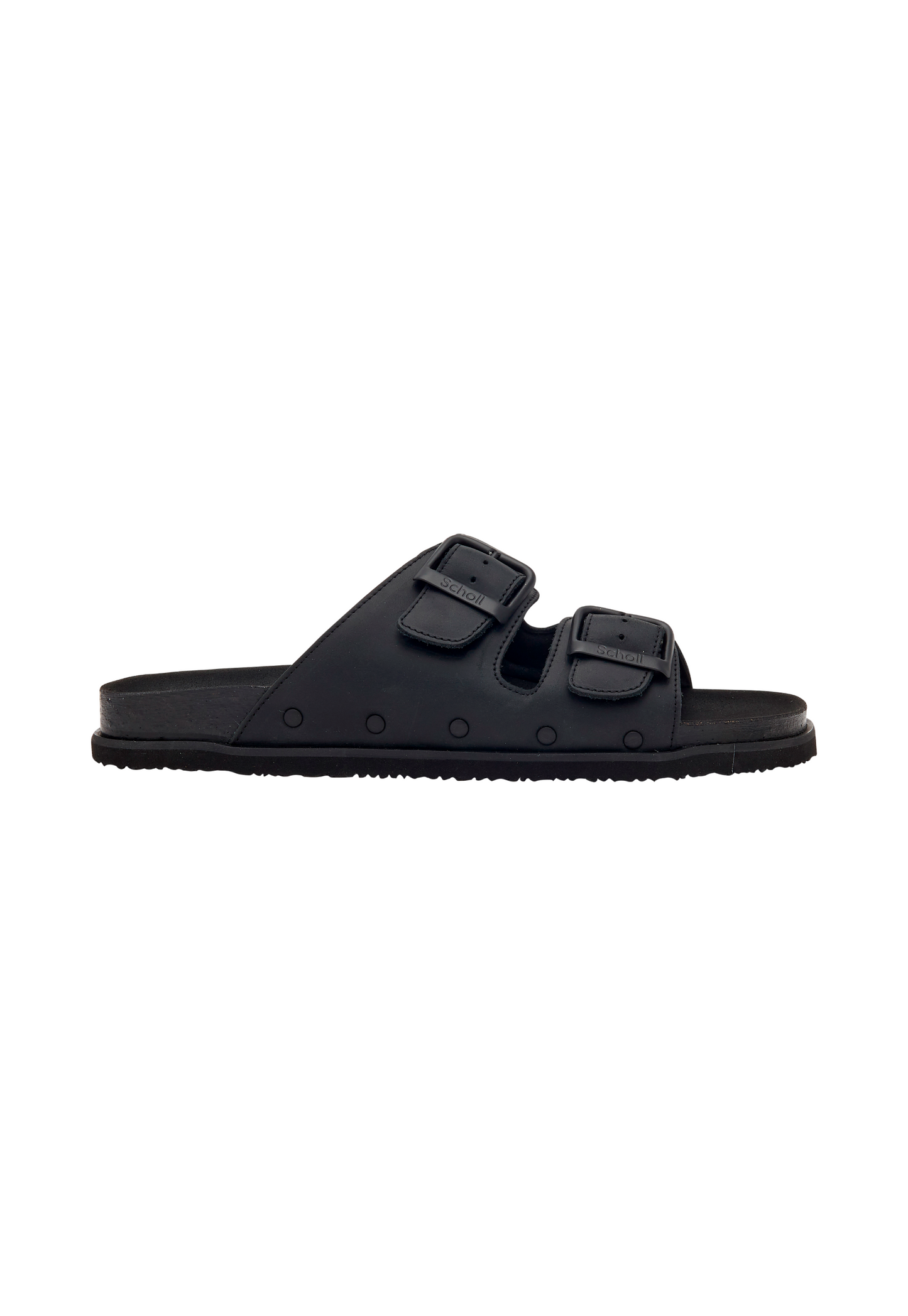 כפכפים לגברים מבית המותג שול. בגזרה קלאסית עם שתי רצועות עור בשילוב אבזמים שחורים, עם סוליה שטוחה.