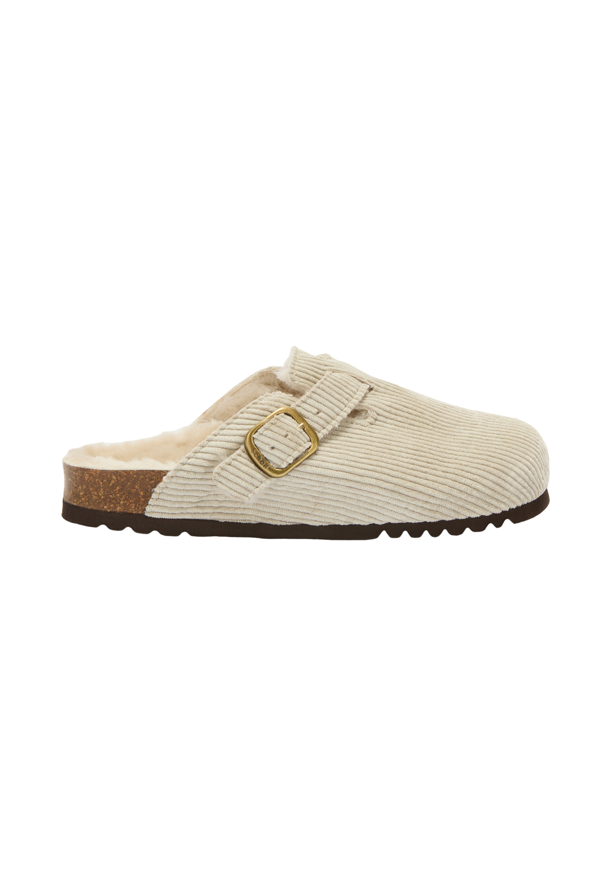בגזרת קלוגס, החלק העליון עשוי קורדרוי, עם פרווה פנימית מחממת, בשילוב רצועה עם אבזם זהב.