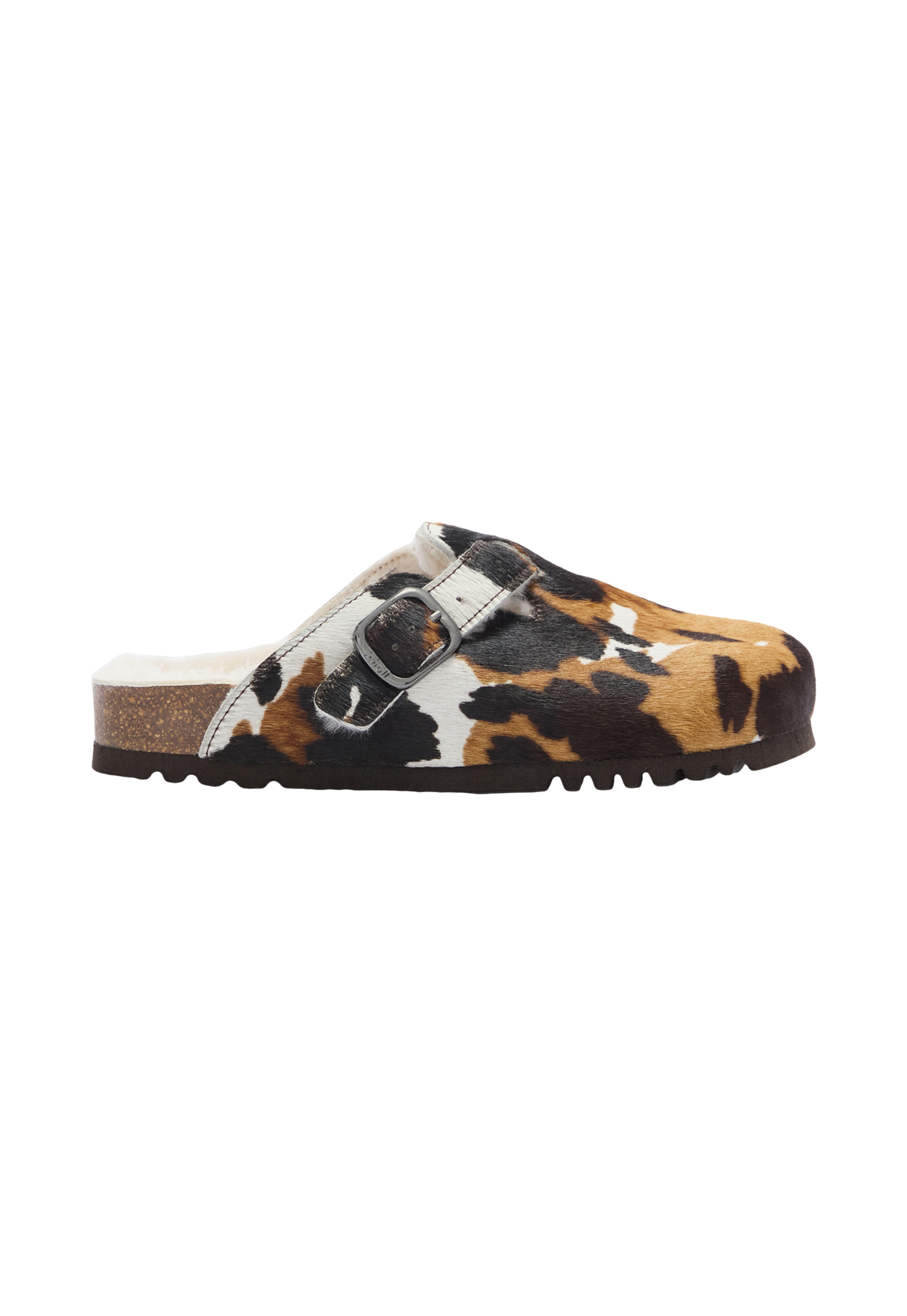 בשילוב פרווה פנימית נעימה ועור חיצוני בהדפס פרה. בשילוב האבזם האייקוני של המותג.