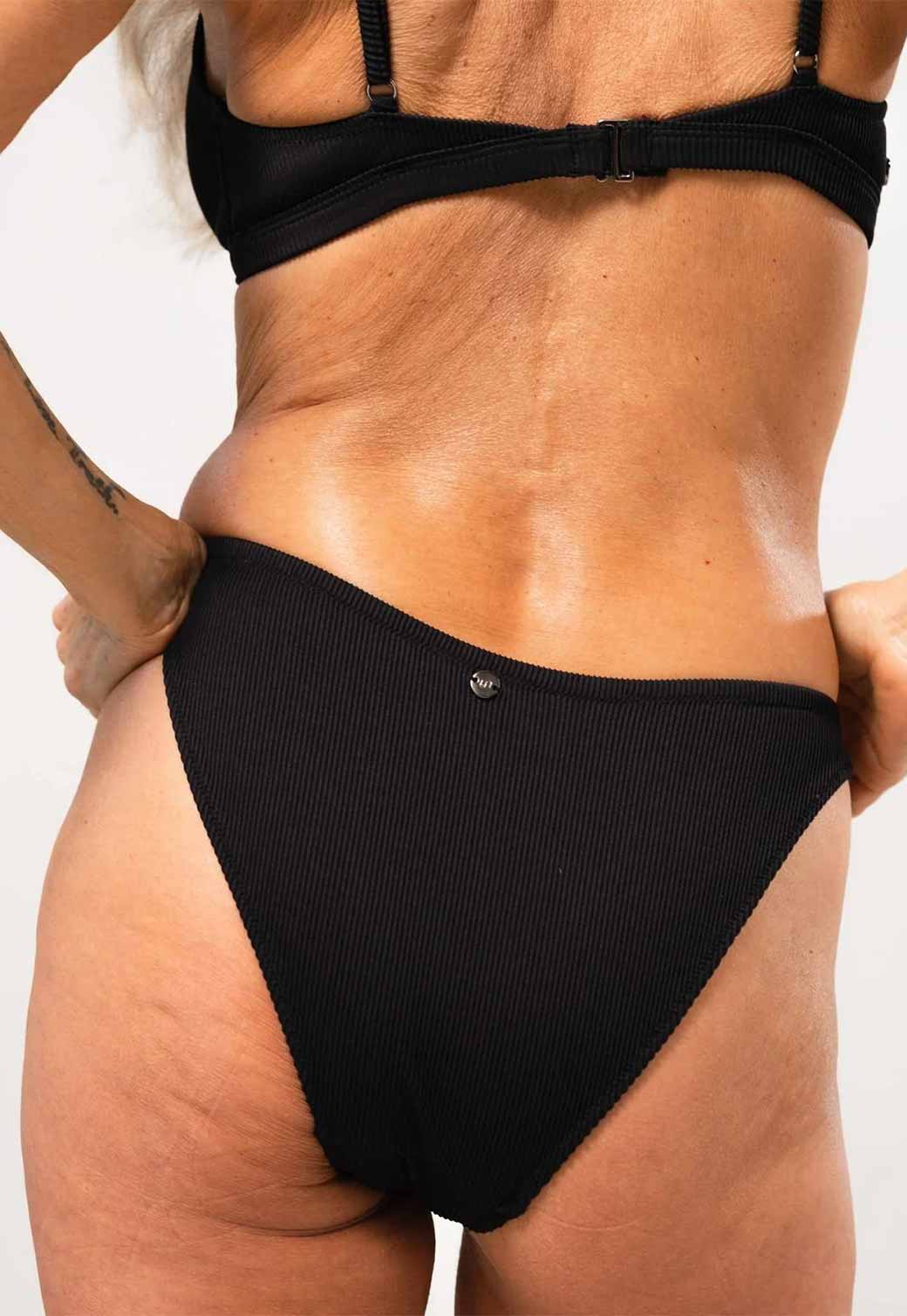 תחתוני בגד ים לנשים מבית המותג אנדרסטייטמנט. בגזרת מידי עם חיתוך גבוה לרגליים, וכיסוי אחורי מלא. בטקסטורת ריב.