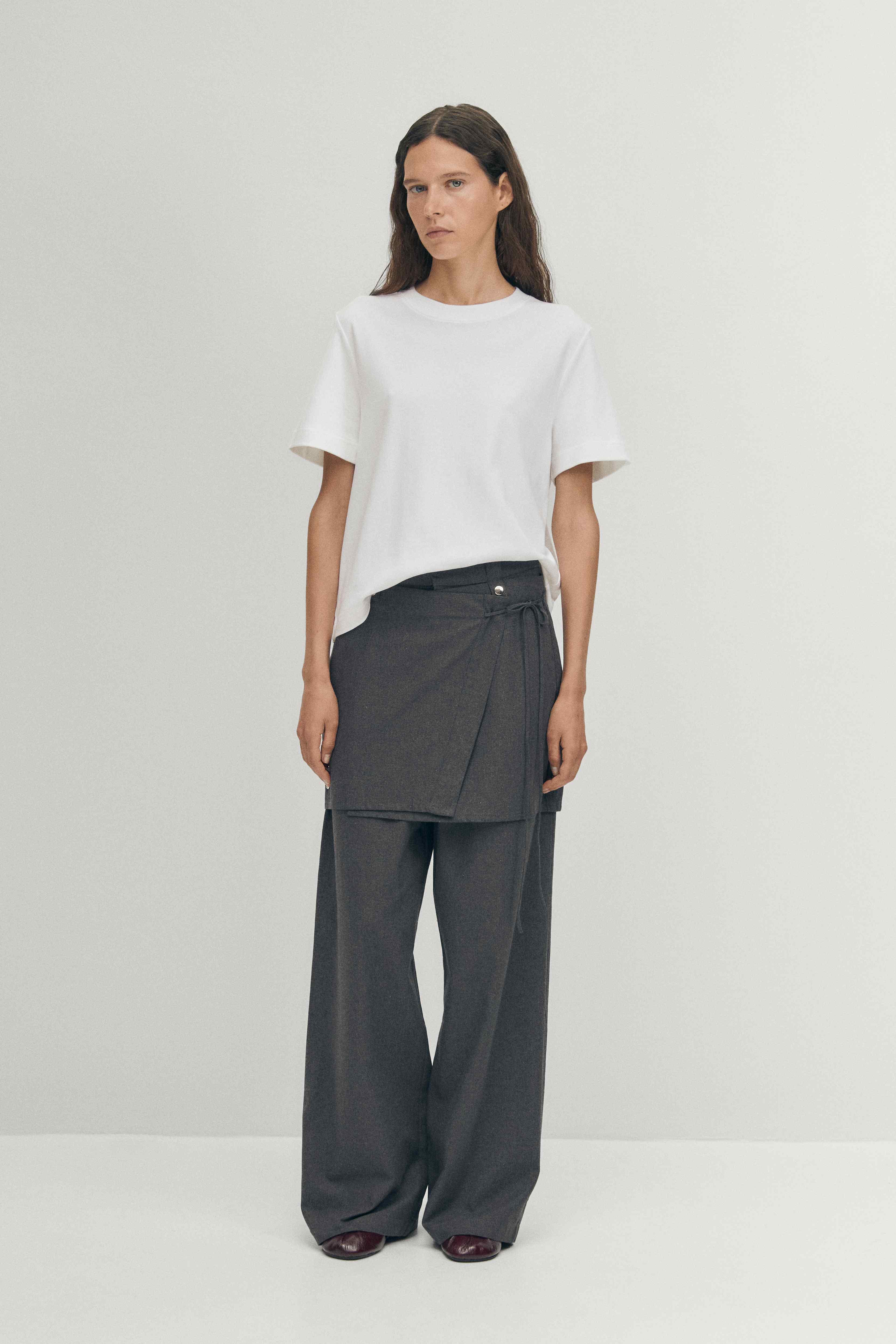 בגזרה ארוכה ורחבה המדגישה קווים אלגנטיים ותחושת זרימה טבעית.